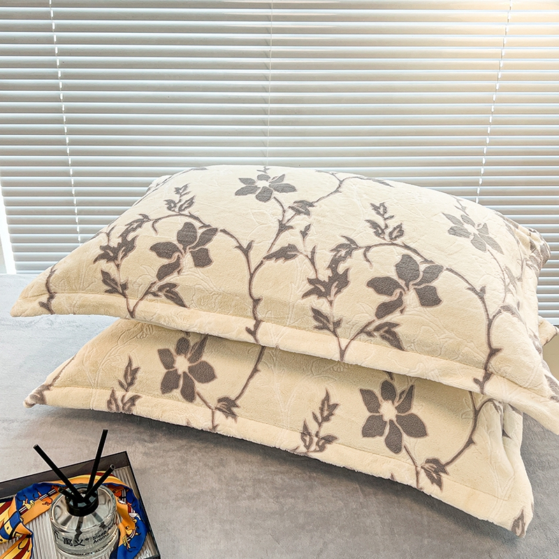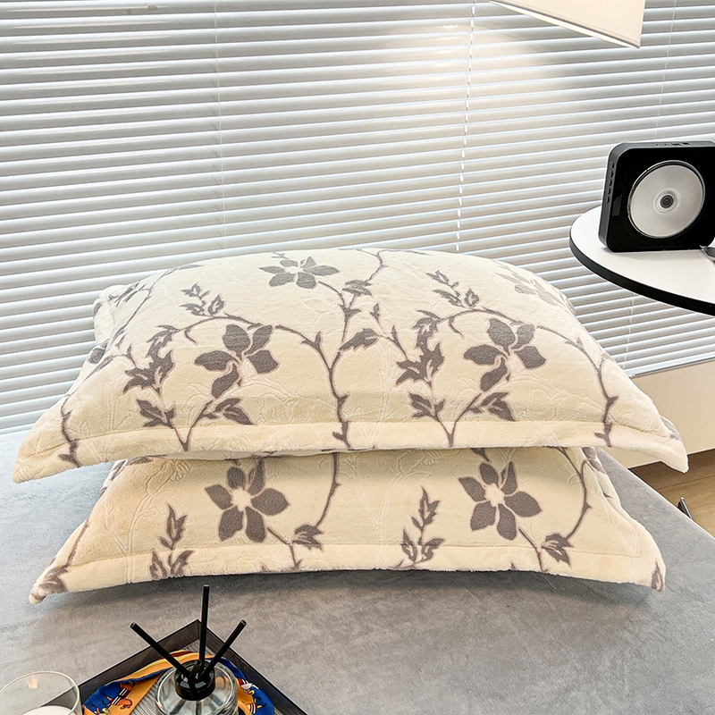 商品名称:慕尚 2025新款高克重保暖双色雕花绒枕套单件 藤蔓-米灰