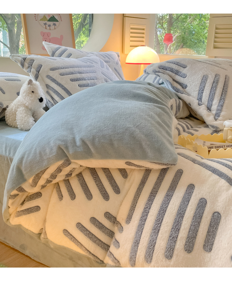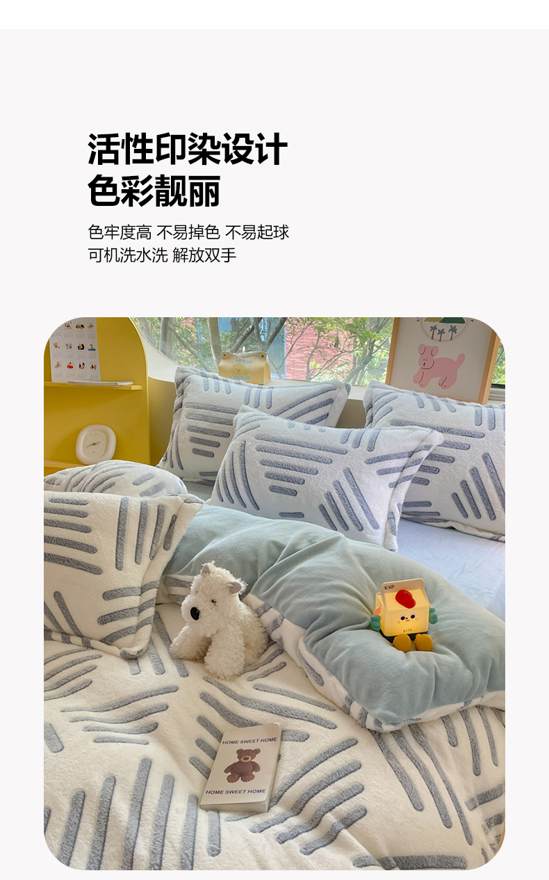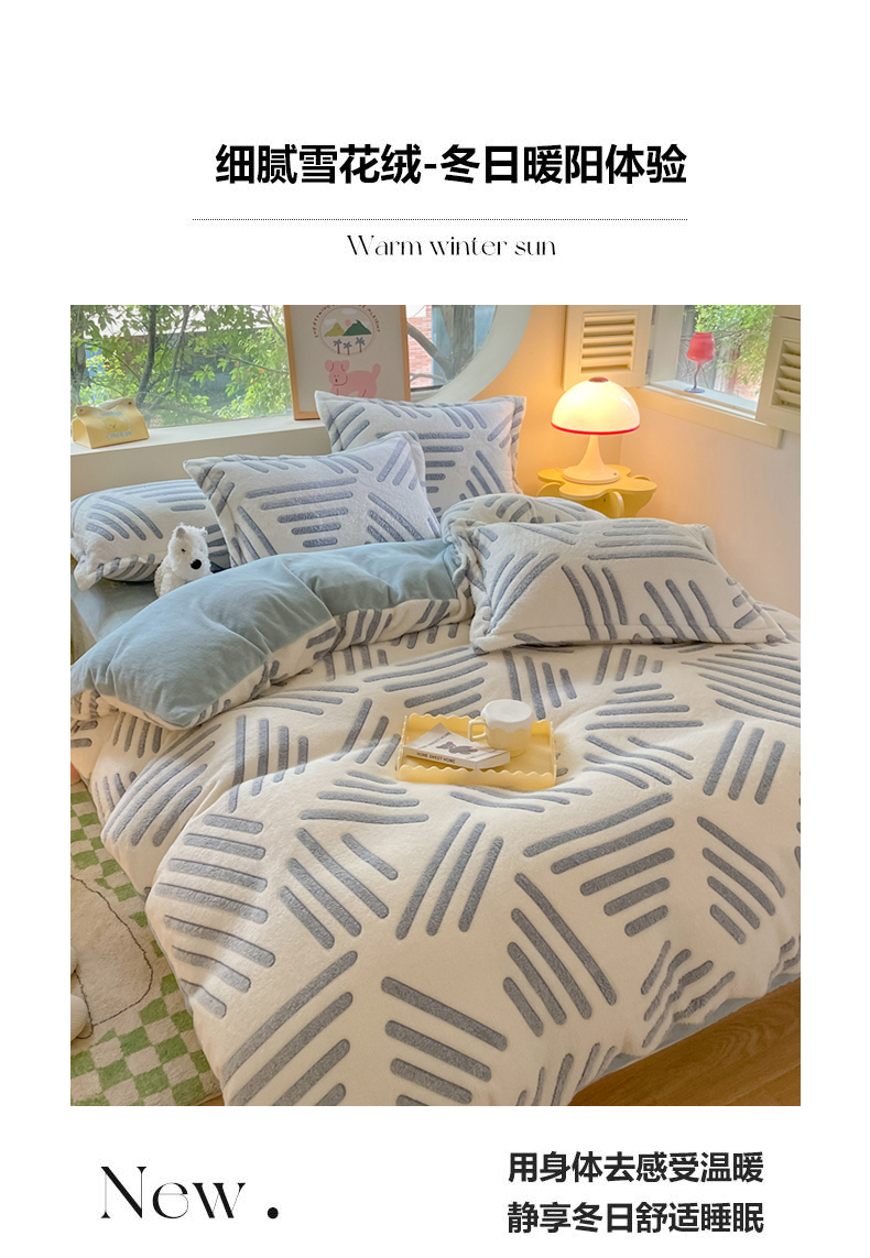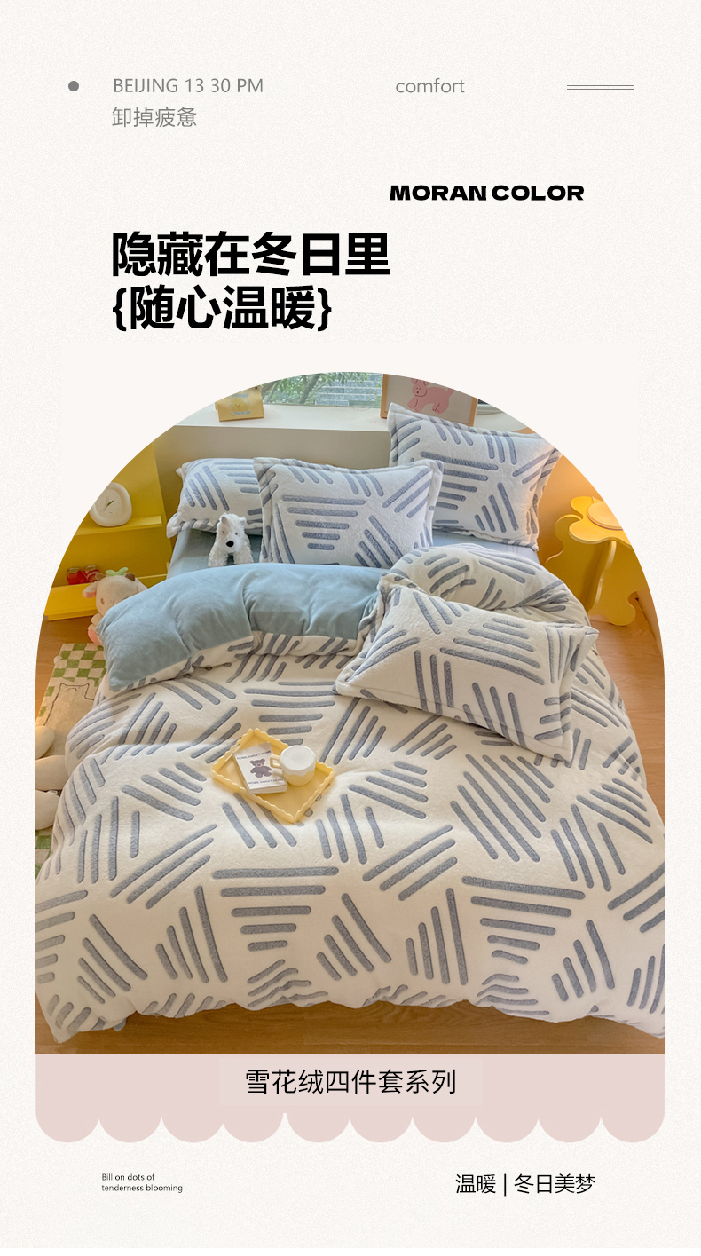 当前位置: 91家纺网 > 商品网购 > 床品套件 > 四件套 > 牛奶绒四件套 > 慕尚 2025新款高克重印花雪花绒四件套 素蓝