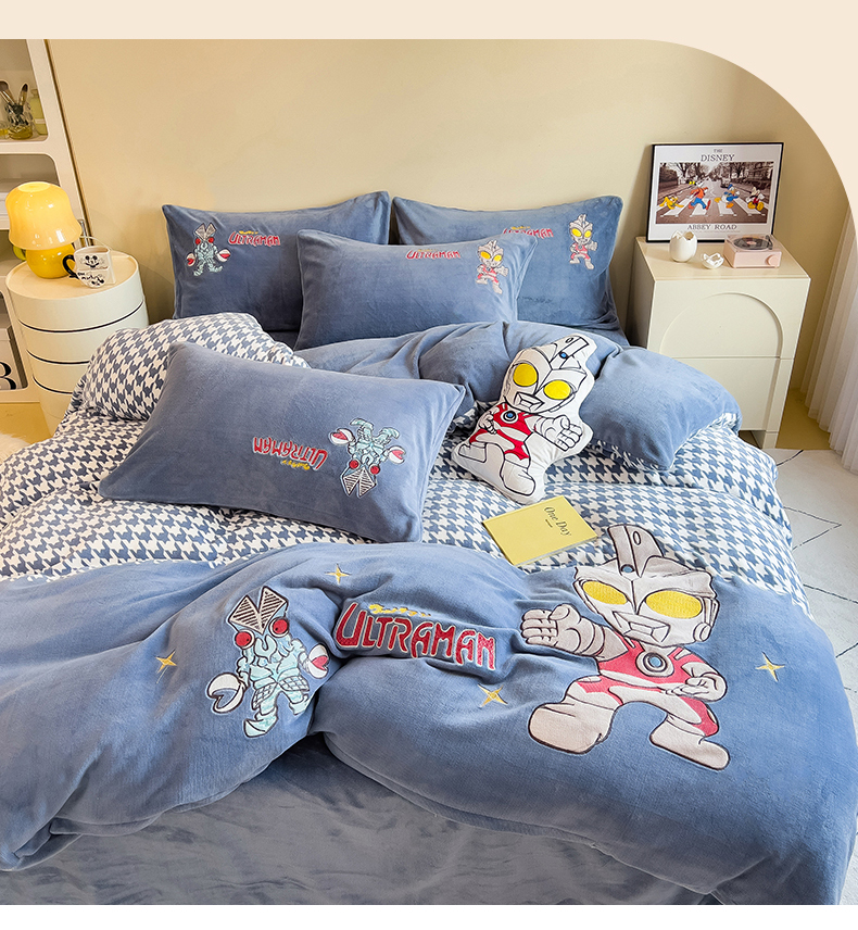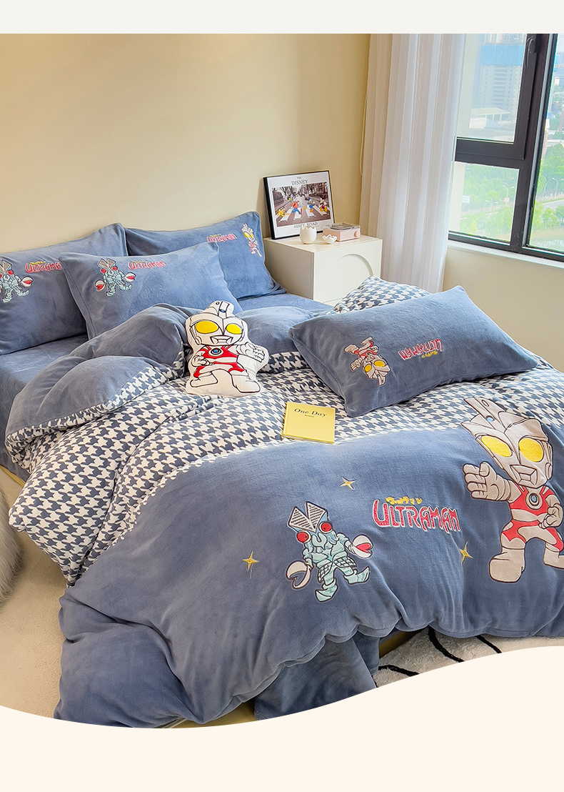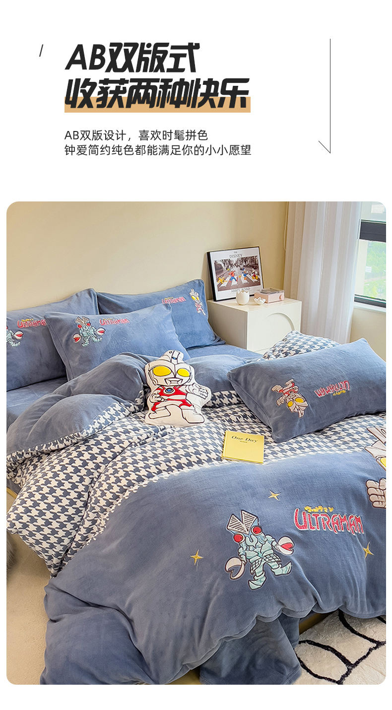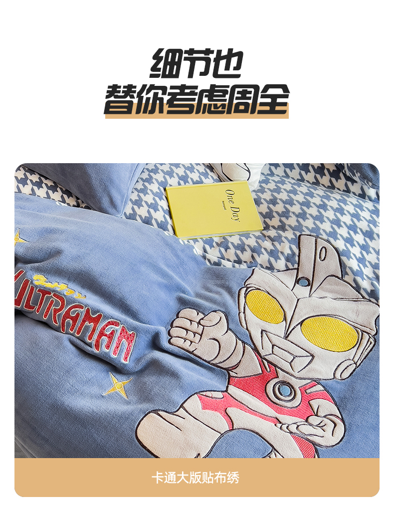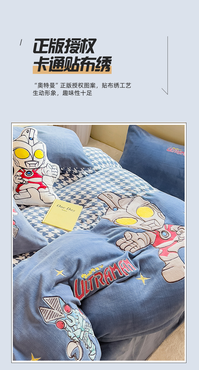 当前位置: 91家纺网 > 商品网购 > 床品套件 > 四件套 > 牛奶绒四件套 > 兄弟坊 2025爆款海绵宝宝奥特曼牛奶绒贴布绣四件套 奥特曼打怪兽