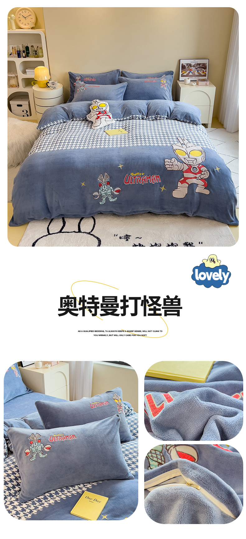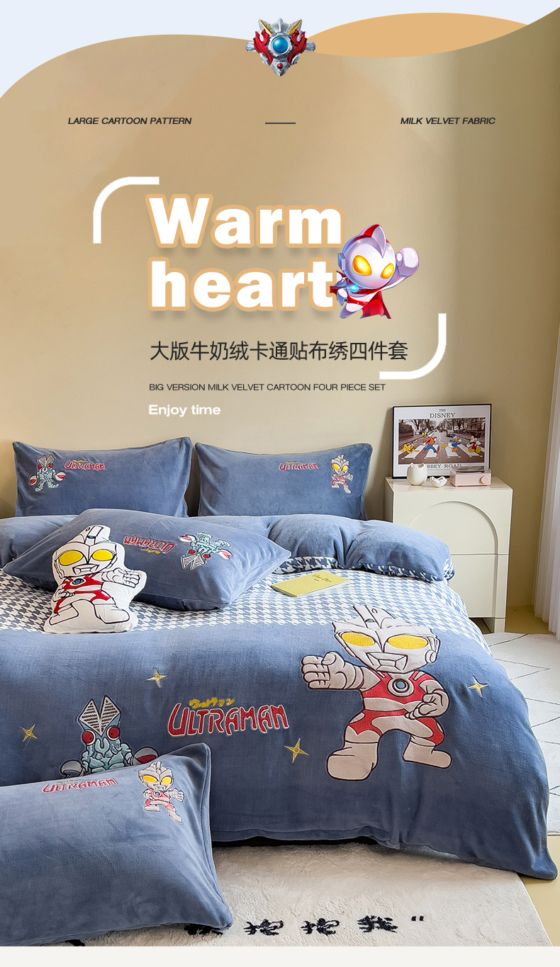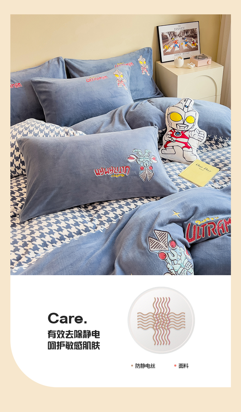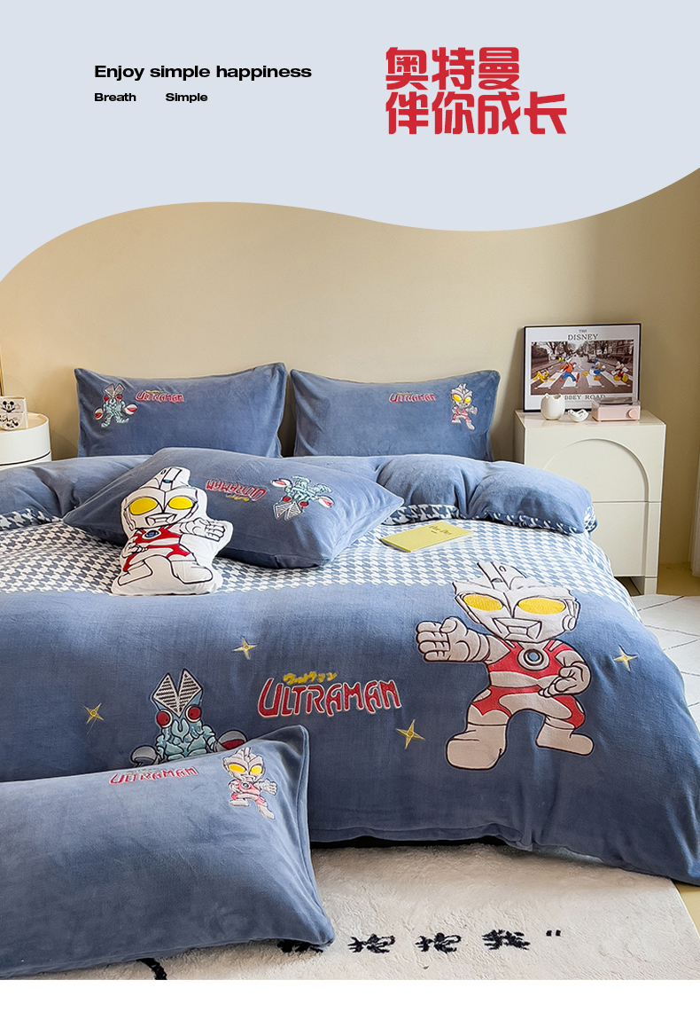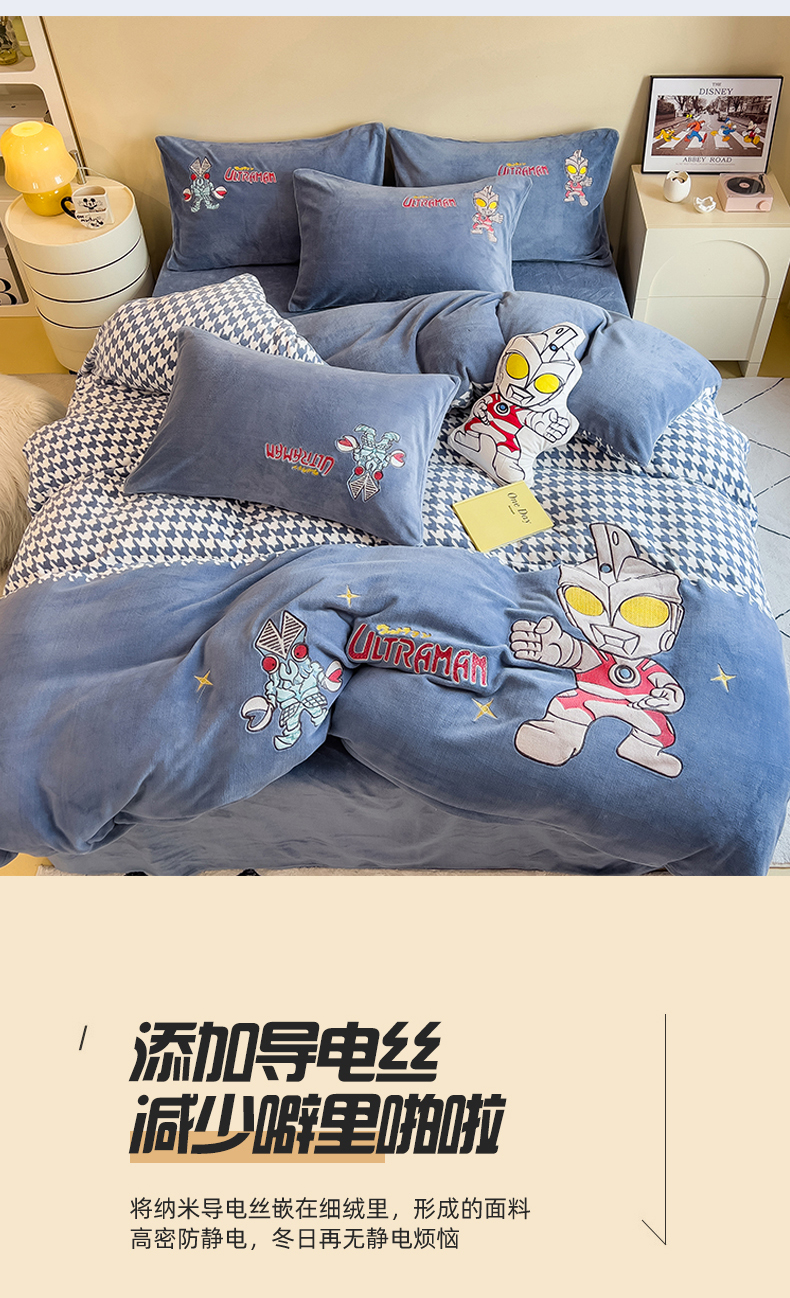 当前位置: 91家纺网 > 商品网购 > 床品套件 > 四件套 > 牛奶绒四件套 > 兄弟坊 2025爆款海绵宝宝奥特曼牛奶绒贴布绣四件套 奥特曼打怪兽