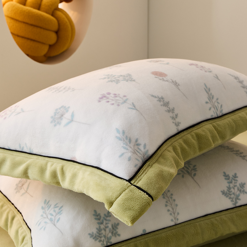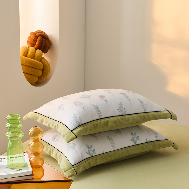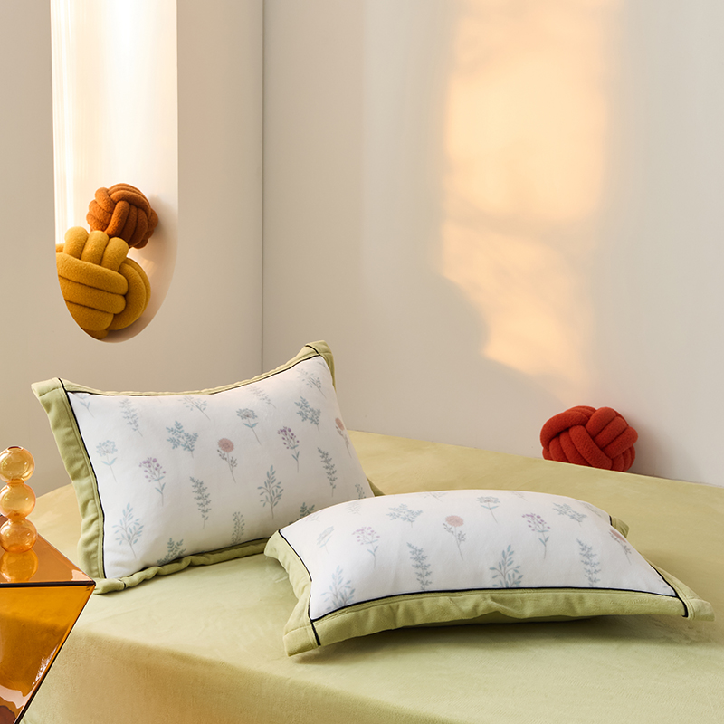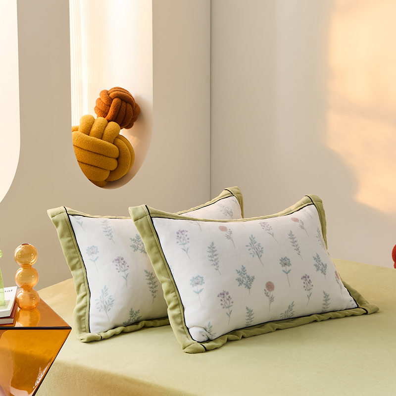 LADYCOCO可可家居 单枕套-2024新款牛奶绒数码印花单品系列 清新花团+果绿
