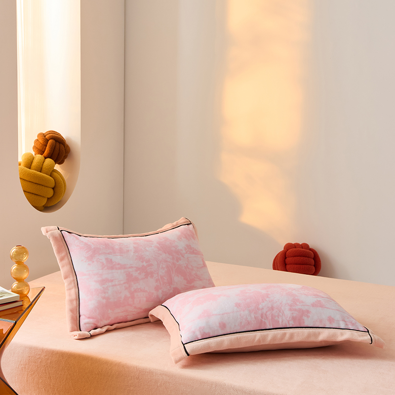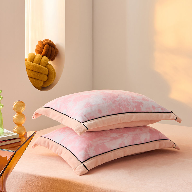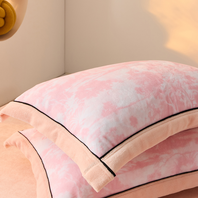 LADYCOCO可可家居 单枕套-2024新款牛奶绒数码印花单品系列 雾里看花浅粉+玉粉