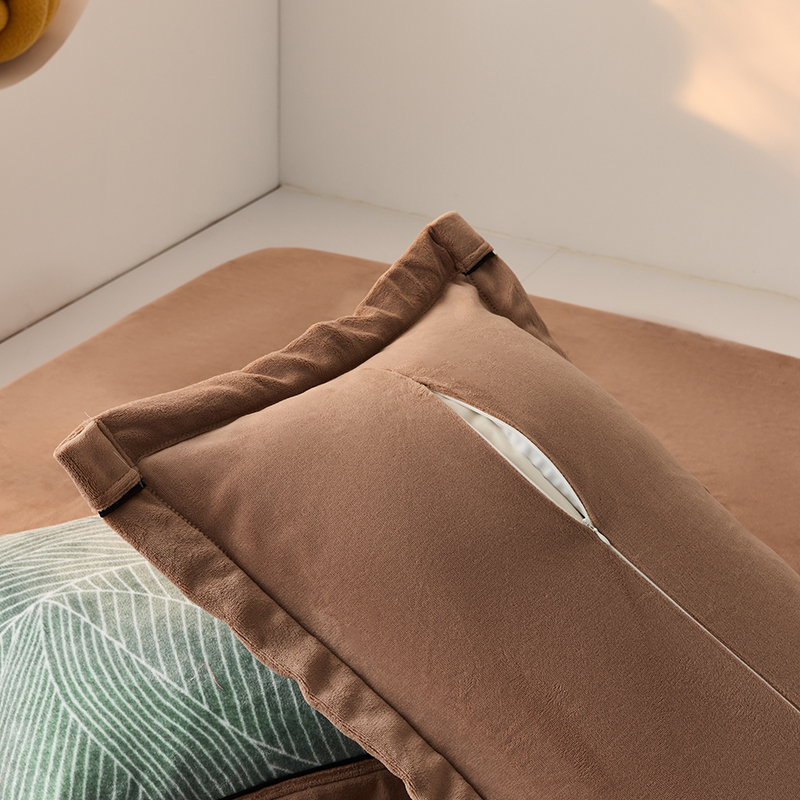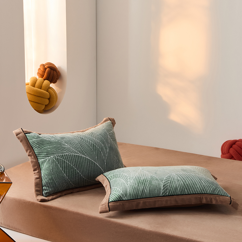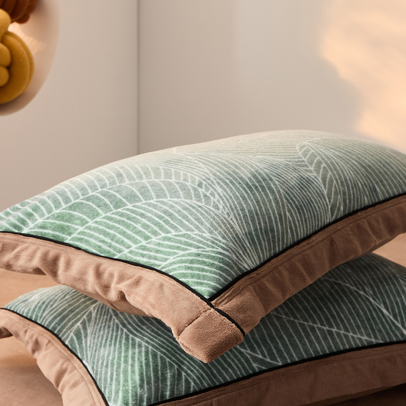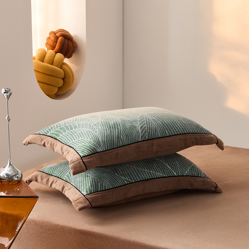LADYCOCO可可家居 单枕套-2024新款牛奶绒数码印花单品系列 叶子绿色+深咖