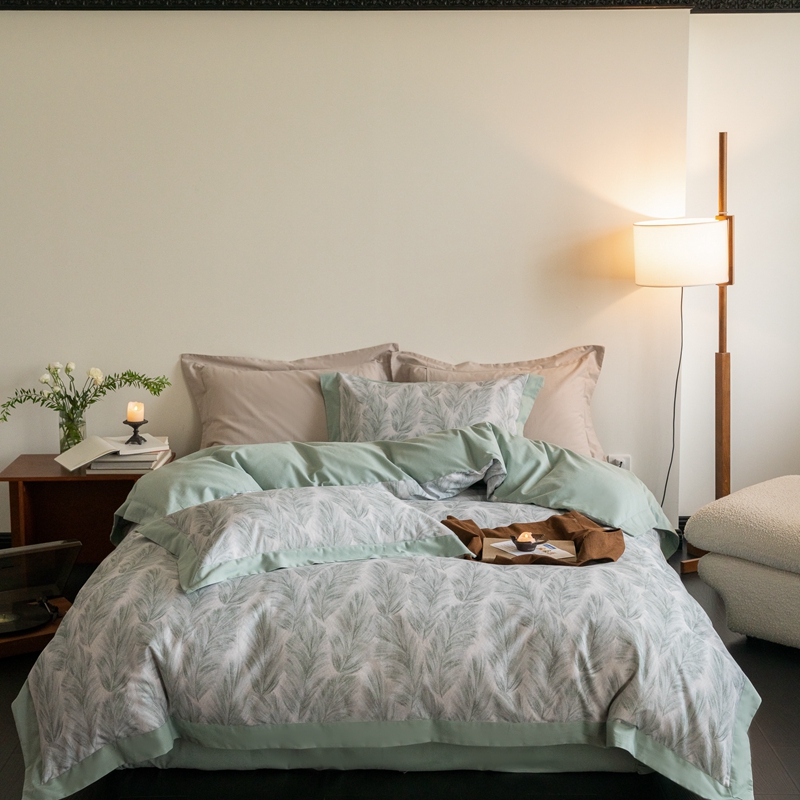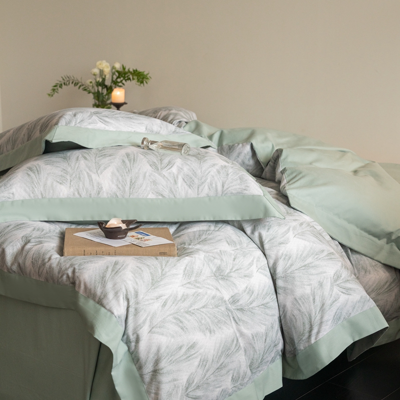 商品名称:窝米 2024新款全棉磨毛工艺拼角款四件套系列 羽裳绿