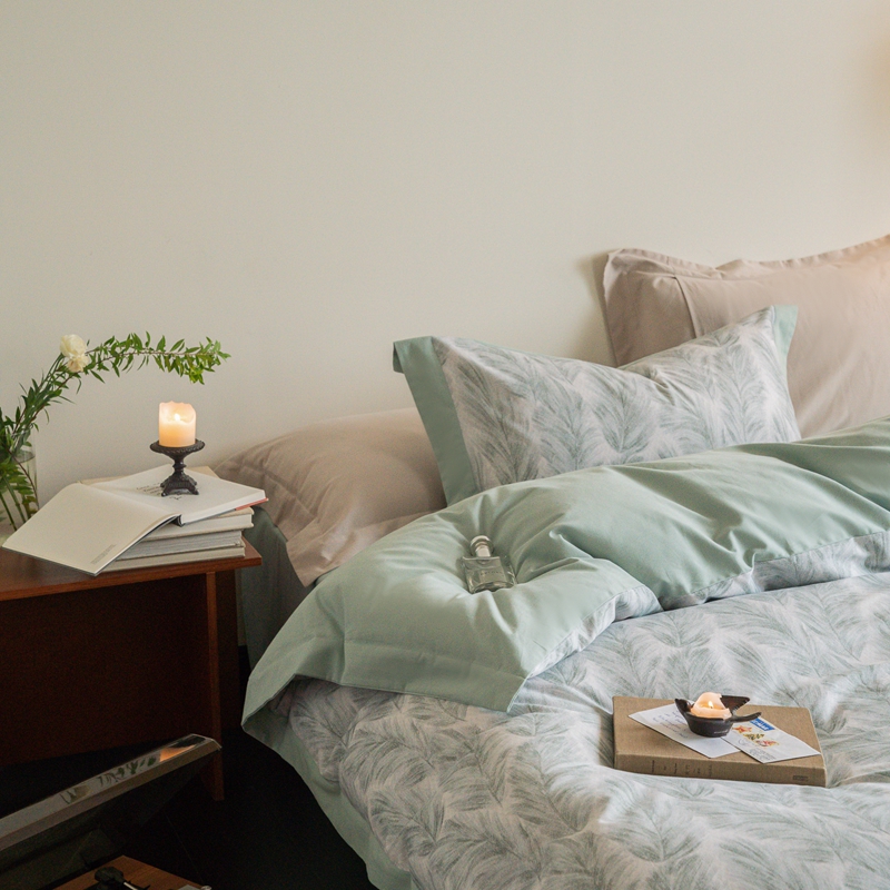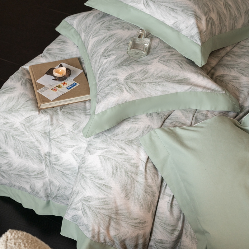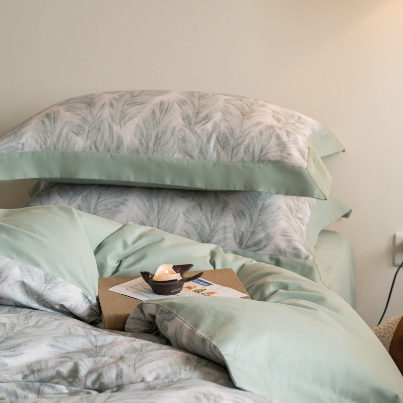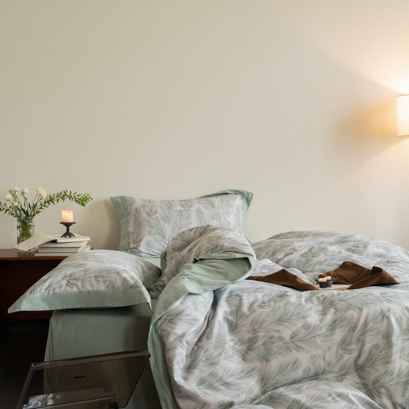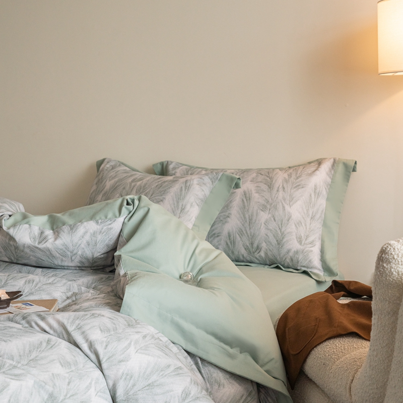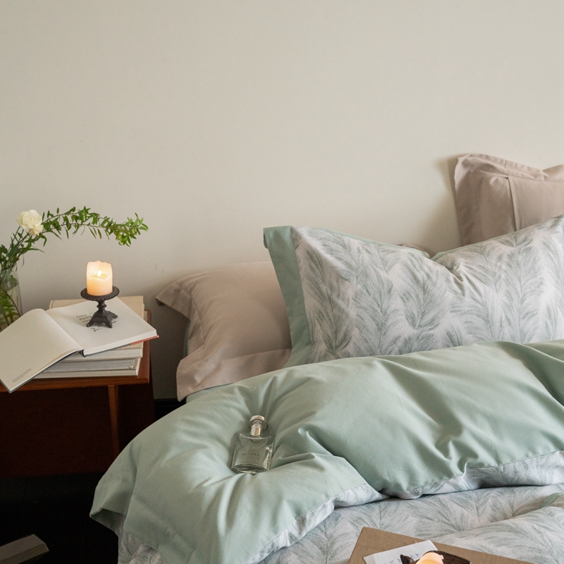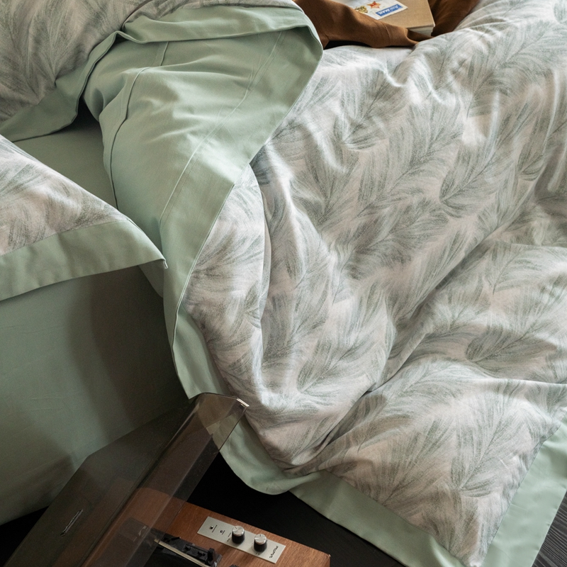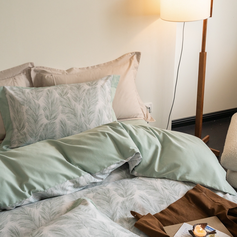 窝米 2024新款全棉磨毛工艺拼角款四件套系列 羽裳绿