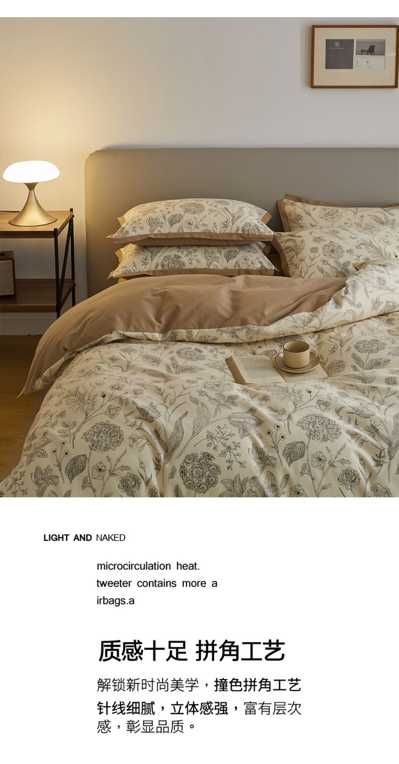 商品名称:千朵森 2024新款高定新疆长绒棉全棉印花拼角磨毛四件套 风格二 爱意浓