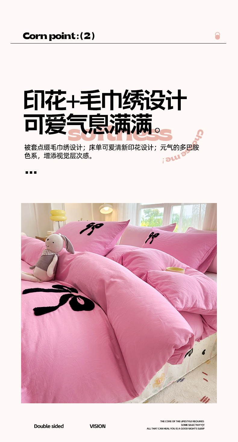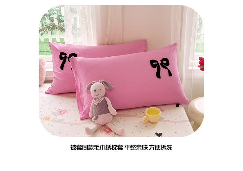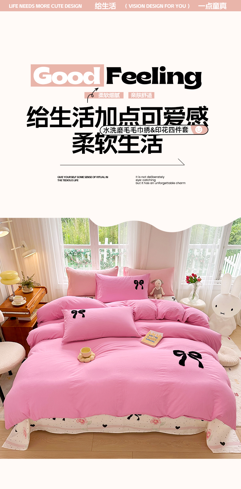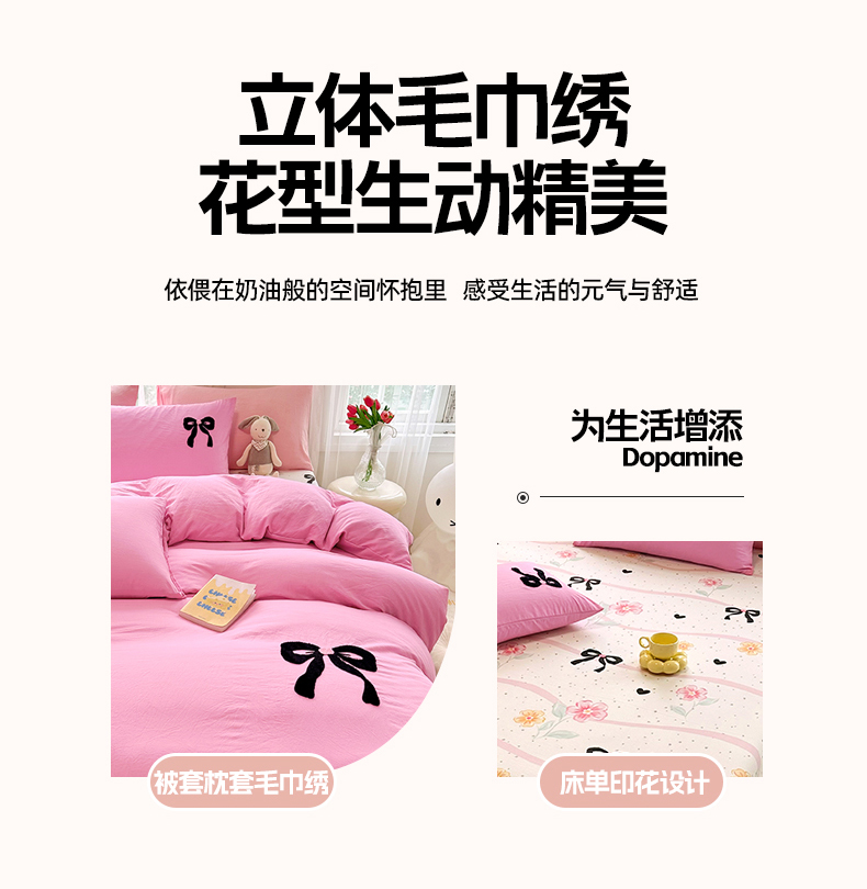艾米家居 2025新款水洗磨毛毛巾绣印花四件套 蝴蝶结