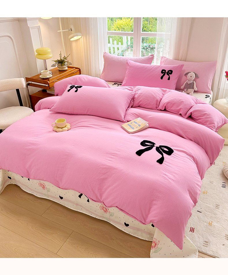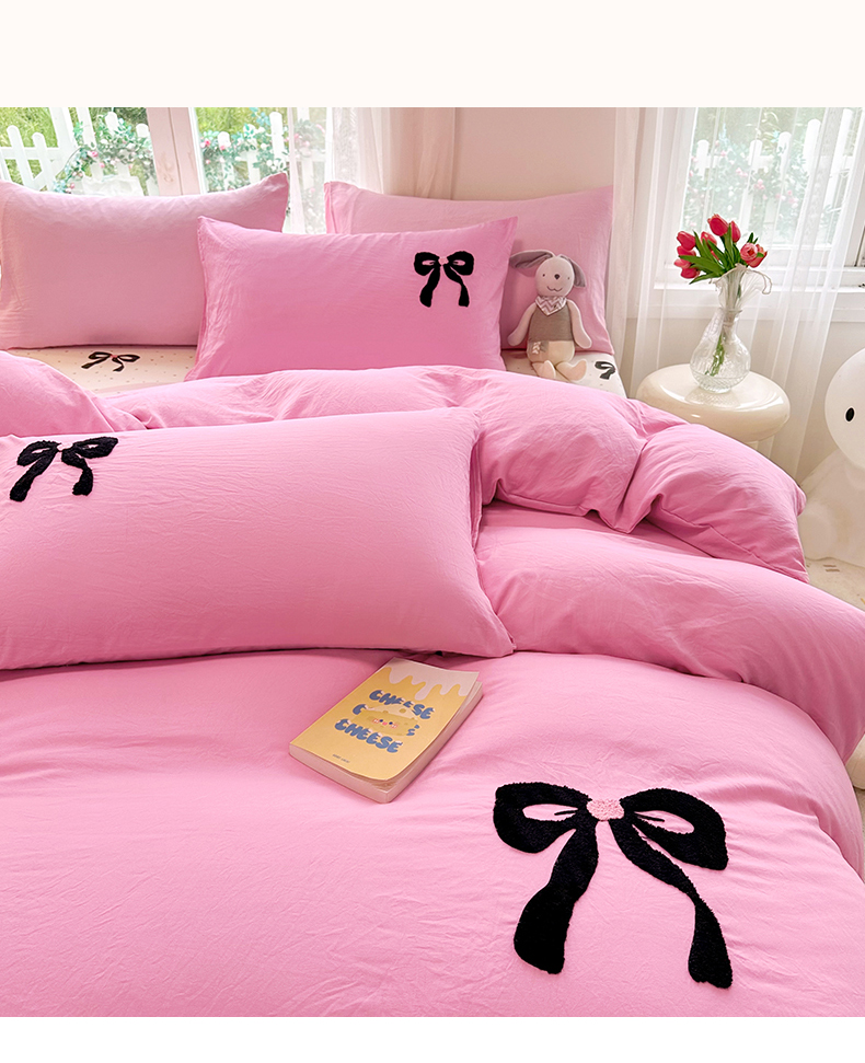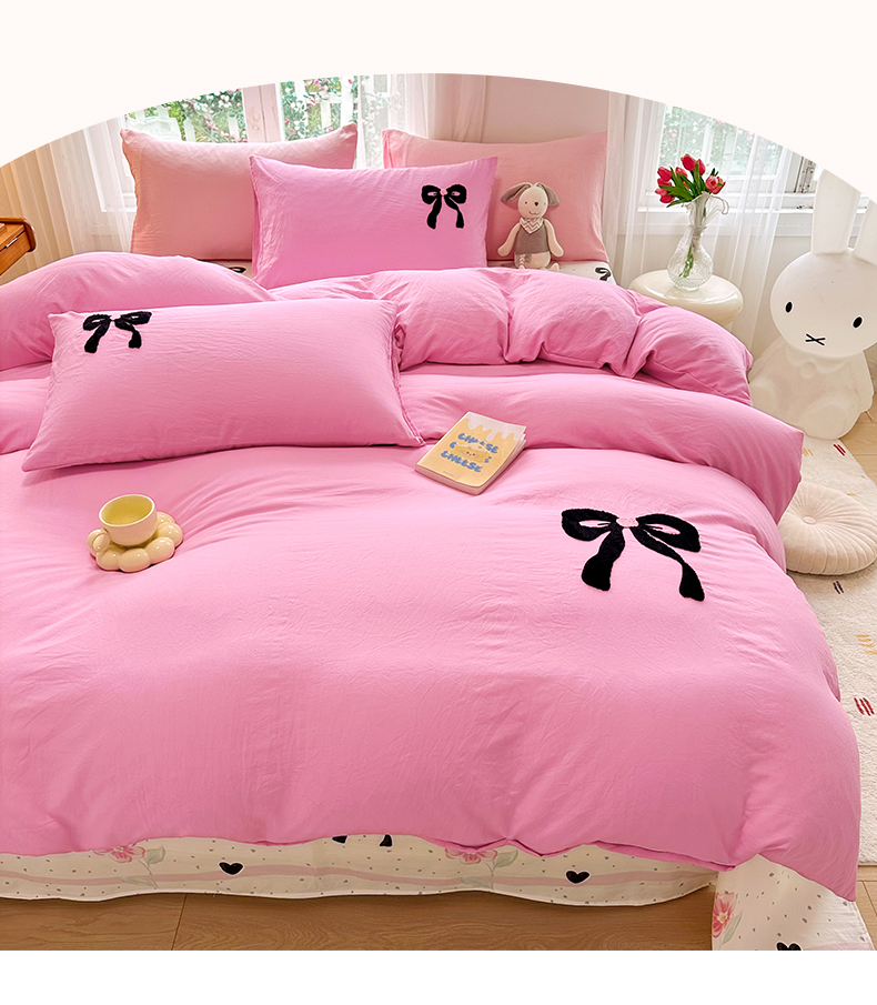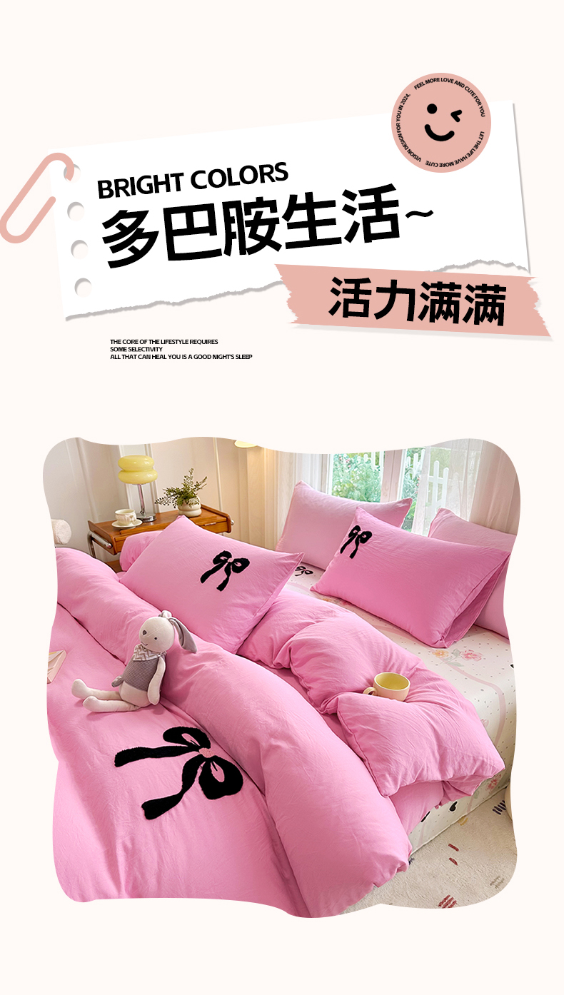 艾米家居 2025新款水洗磨毛毛巾绣印花四件套 蝴蝶结