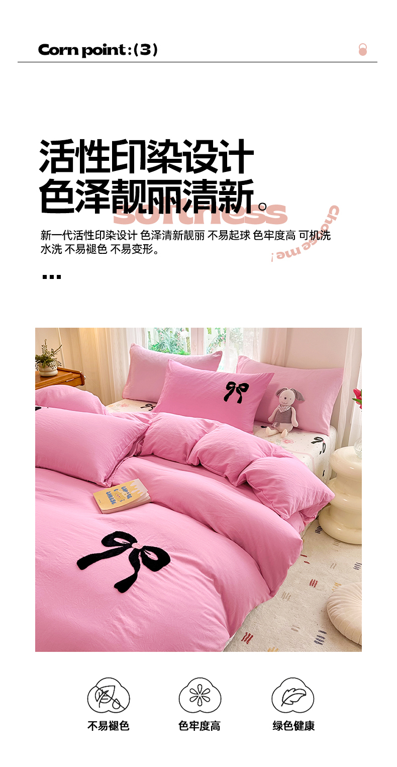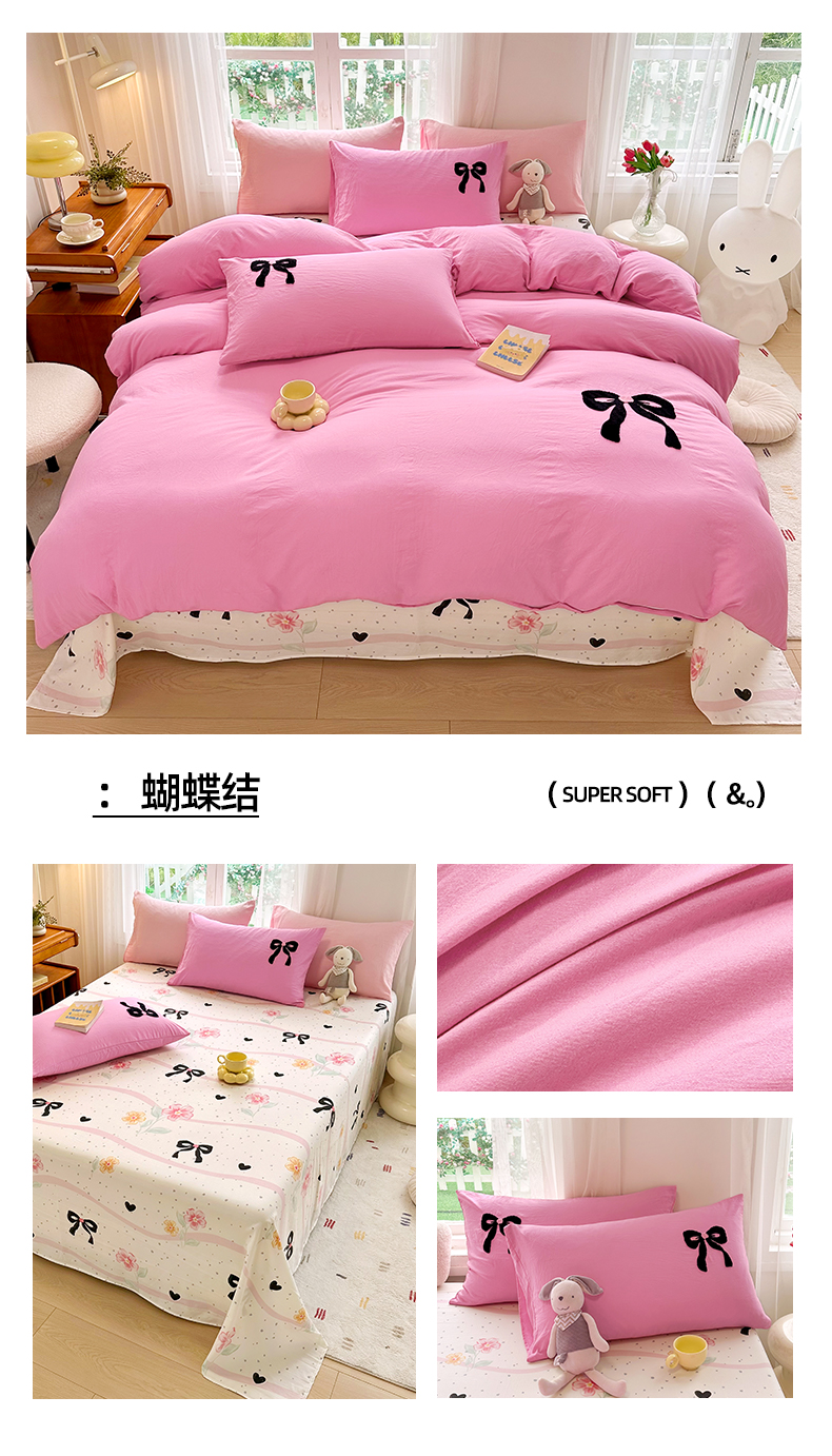 商品名称:艾米家居 2025新款水洗磨毛毛巾绣印花四件套 蝴蝶结