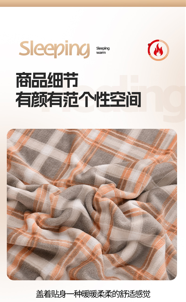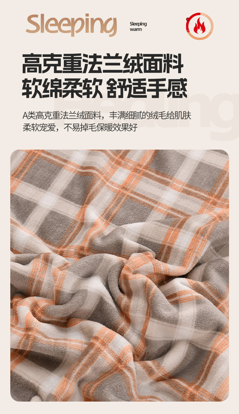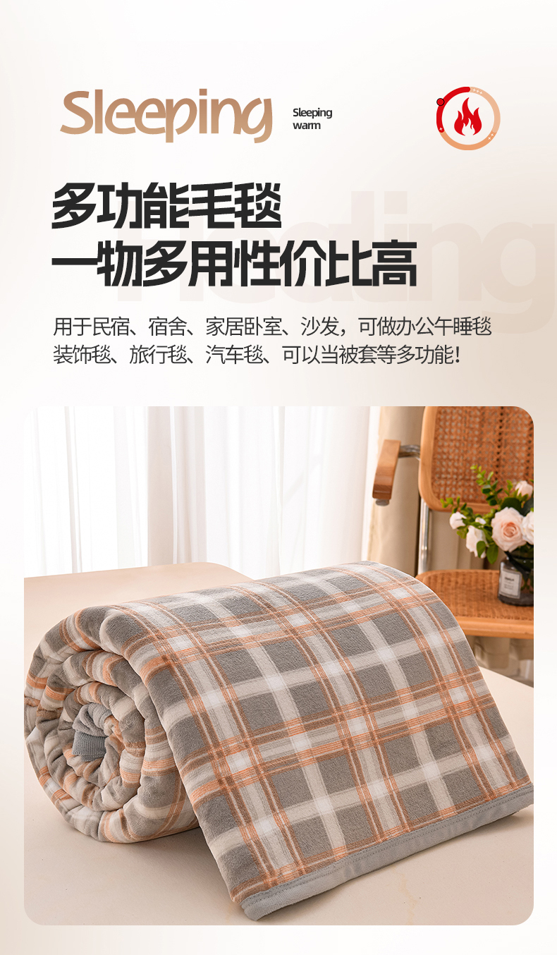商品名称:仟人梦 2024新款A类高克重保暖法兰绒多功能保暖毛毯 时尚咖