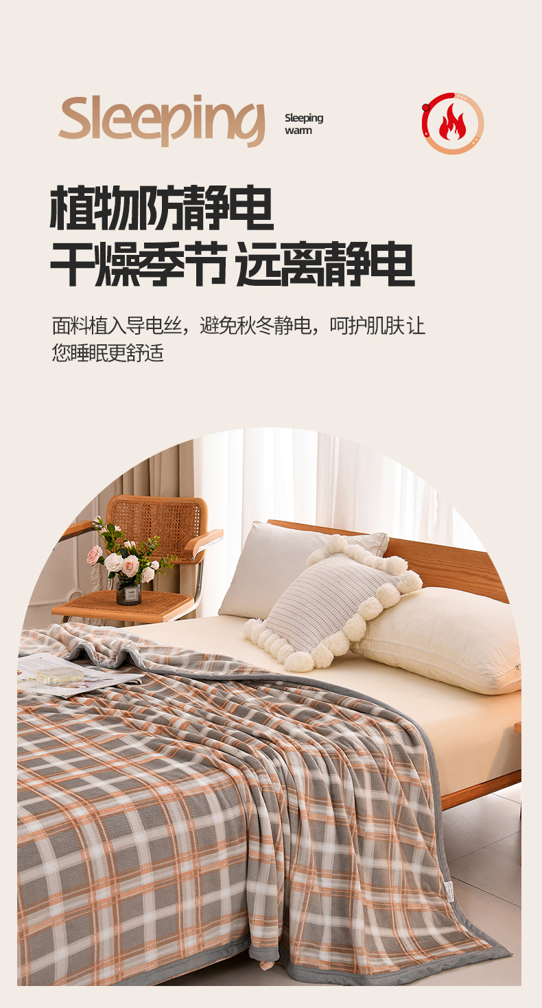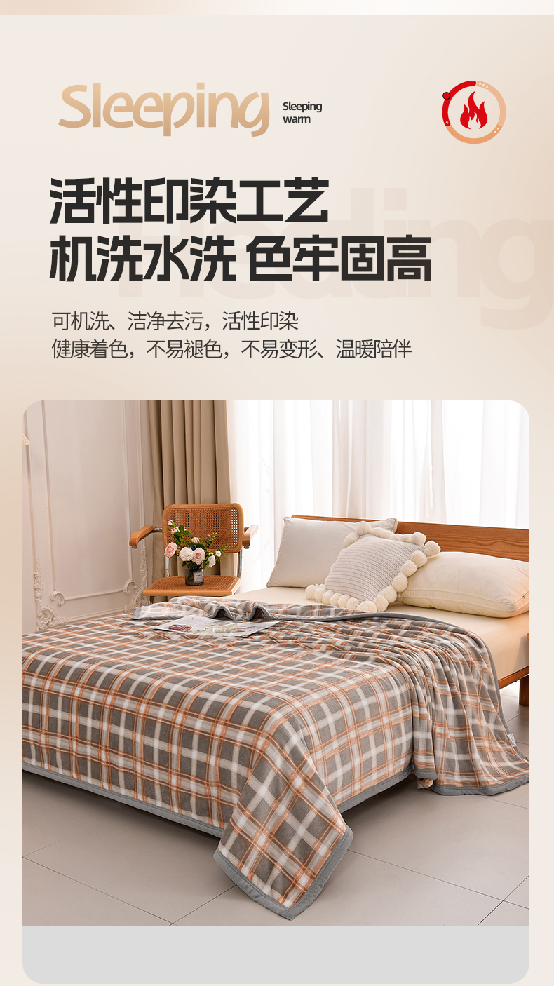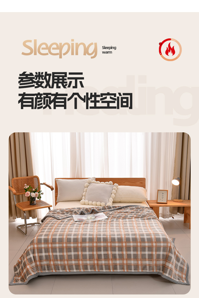 商品名称:仟人梦 2024新款A类高克重保暖法兰绒多功能保暖毛毯 时尚咖