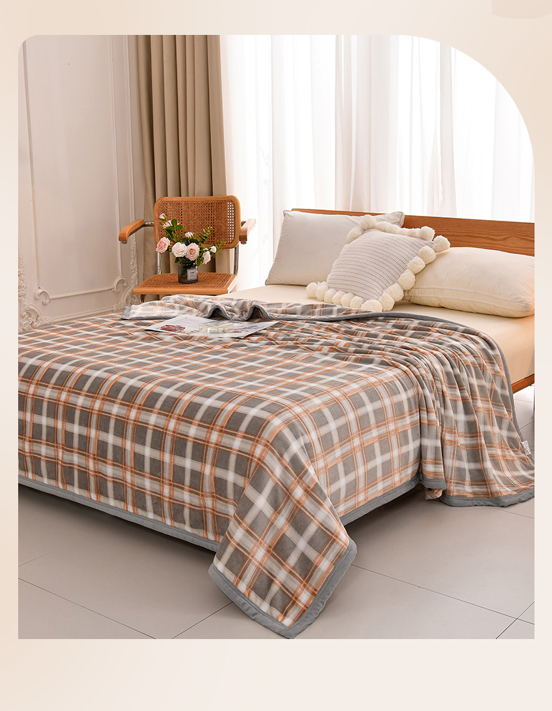 仟人梦 2024新款A类高克重保暖法兰绒多功能保暖毛毯 时尚咖