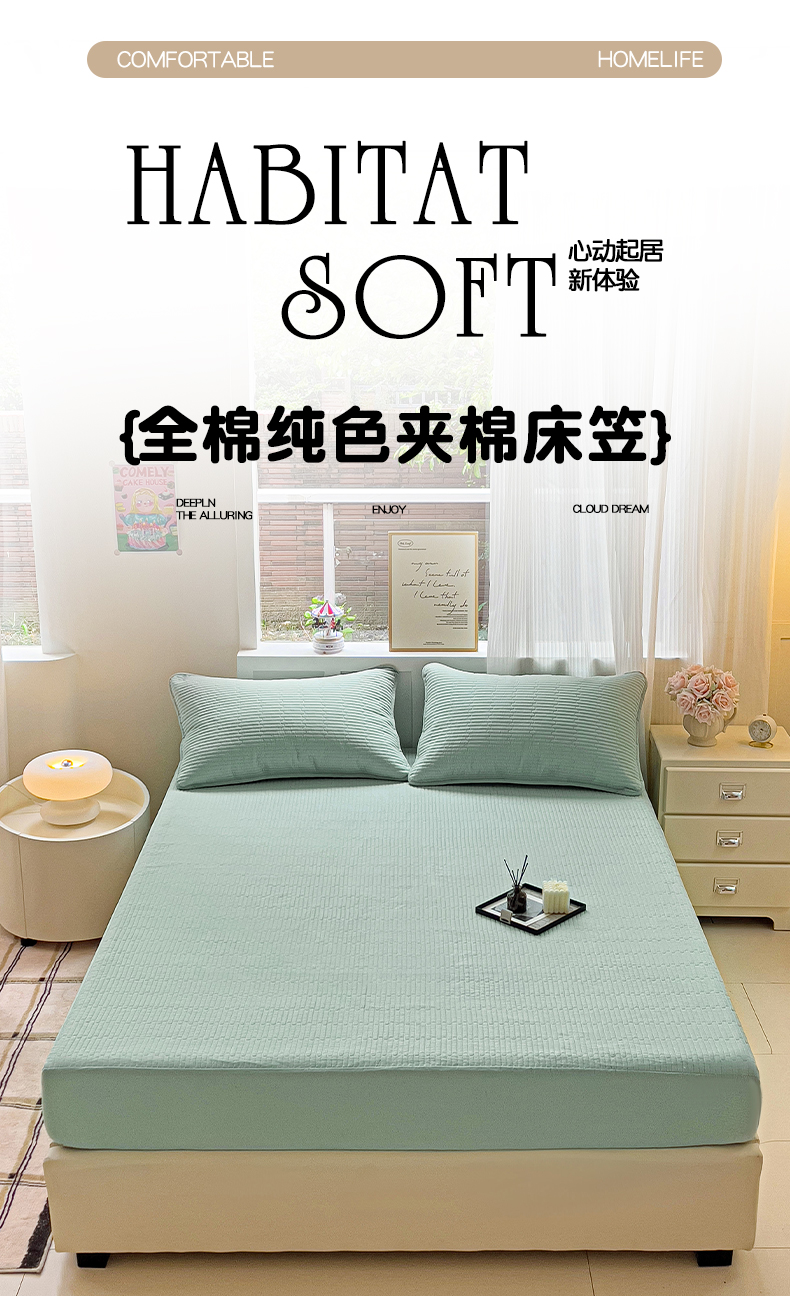 • 91家纺网 家纺一手货源 找家纺 漫时光 2025新款40支全棉纯色夹棉床笠款 露草