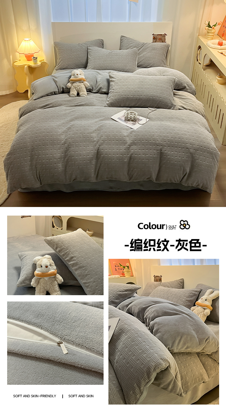 商品名称:如一 2024新款3D精雕高克重牛奶绒被套 编织纹-灰色