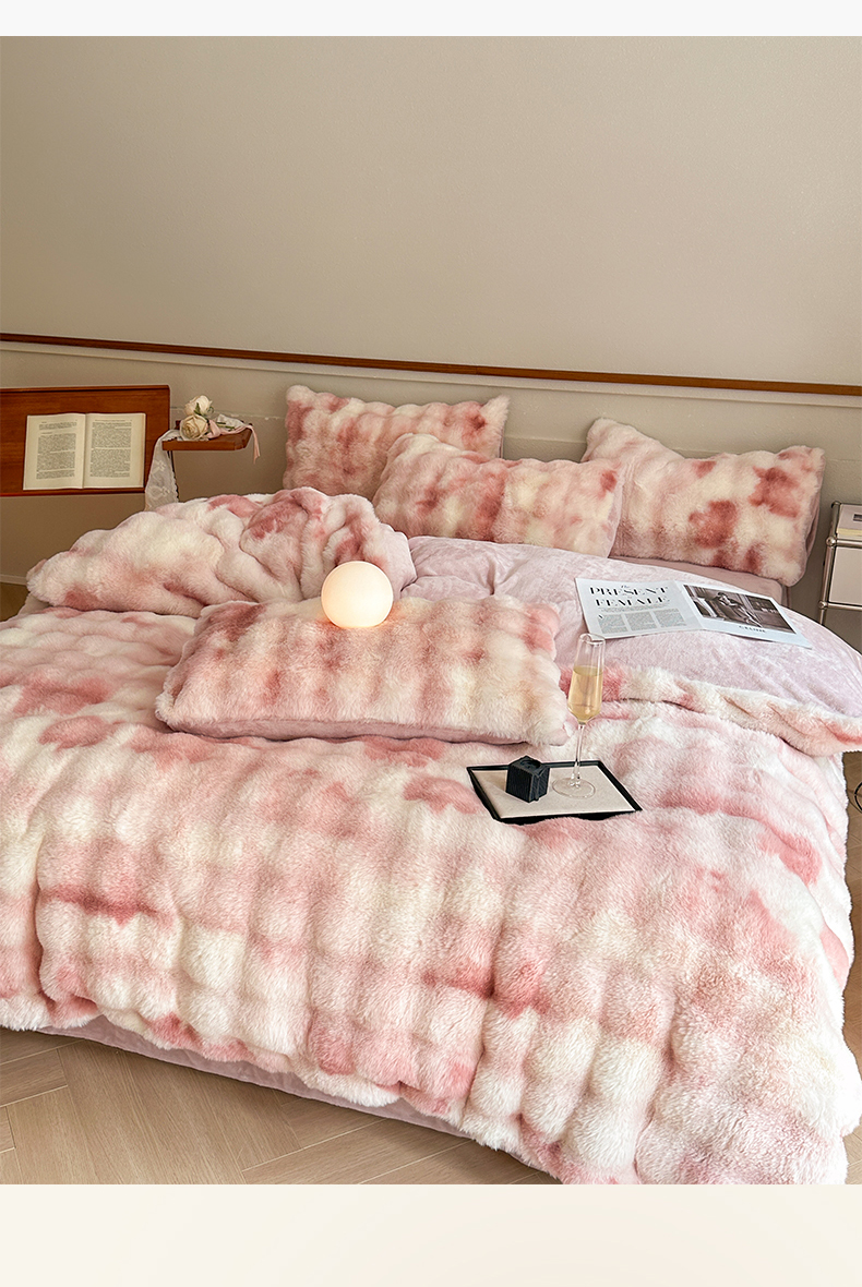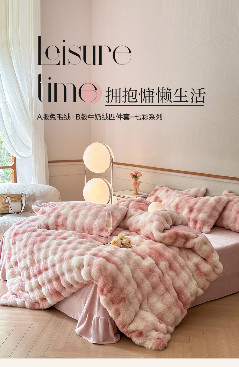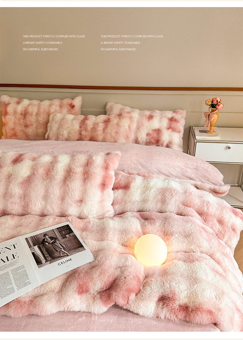 商品名称:畅畅家纺 2024新款AB版冬季纯色七彩兔兔绒兔毛绒牛奶绒四件套 七彩-粉