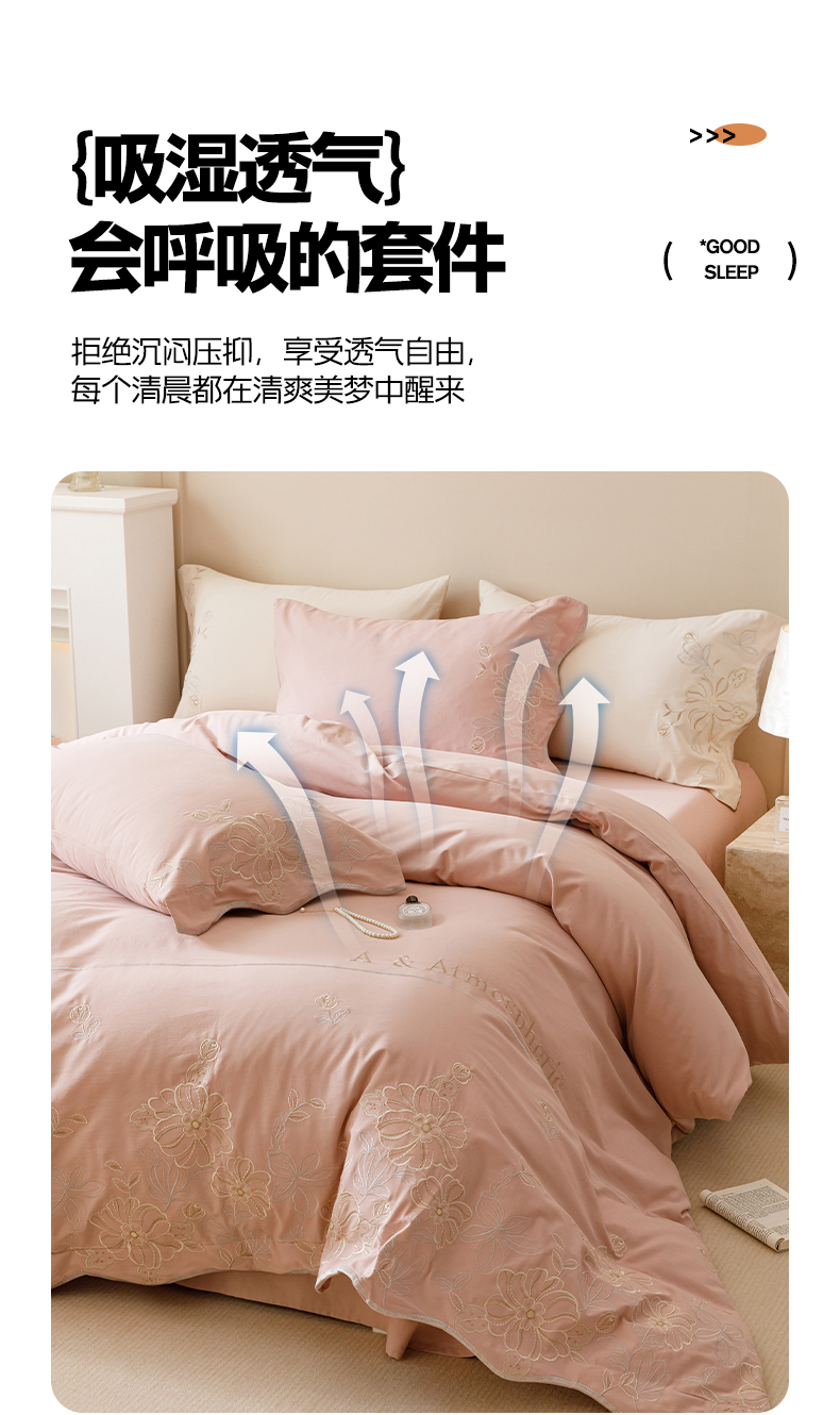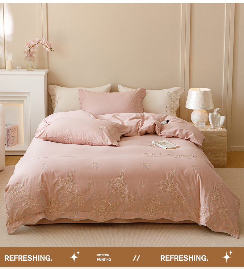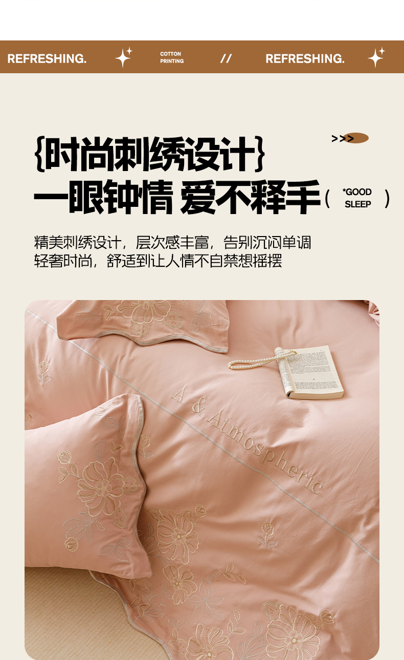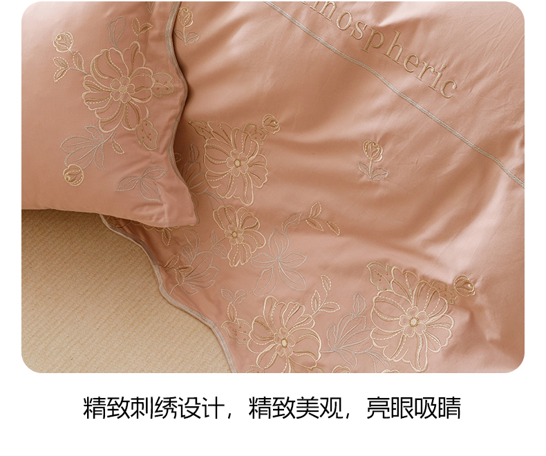 (总)艾莱家纺 2025新款A类精梳纯棉刺绣花四件套-赫柏,赫柏-橙夕,赫柏-花田米,赫柏-浅粉,赫柏-夜绿