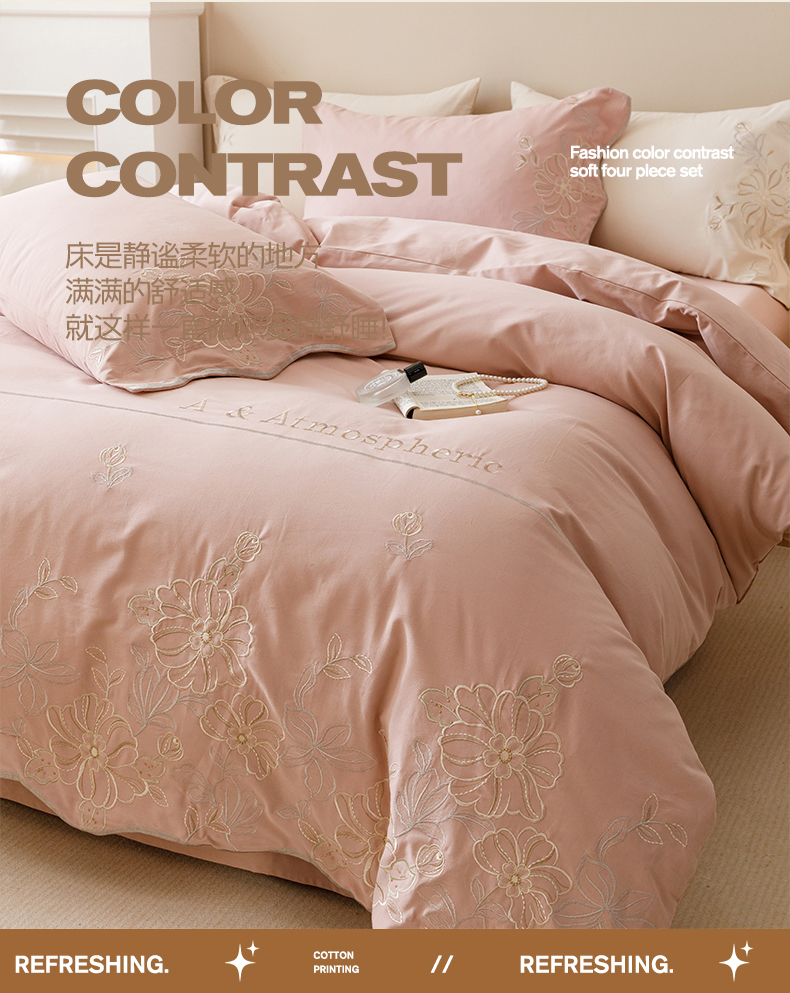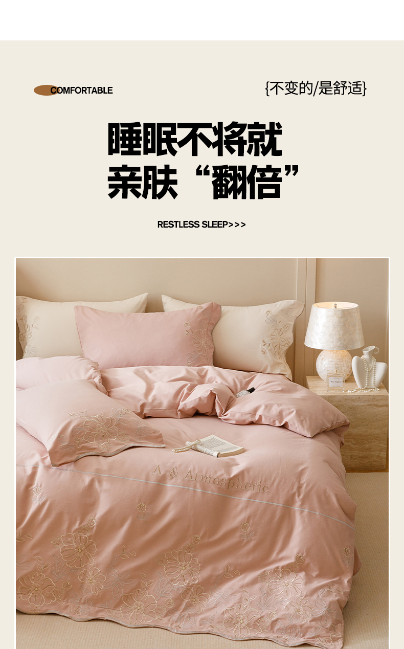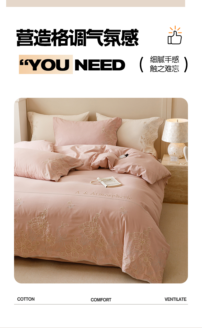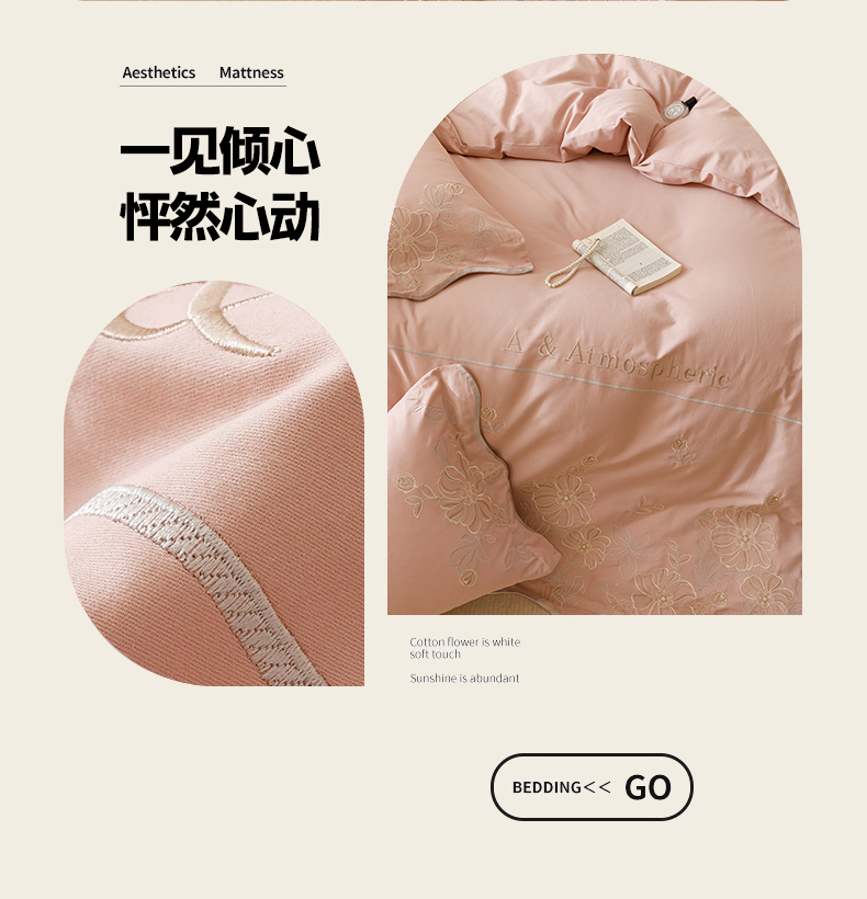 (总)艾莱家纺 2025新款A类精梳纯棉刺绣花四件套-赫柏,赫柏-橙夕,赫柏-花田米,赫柏-浅粉,赫柏-夜绿