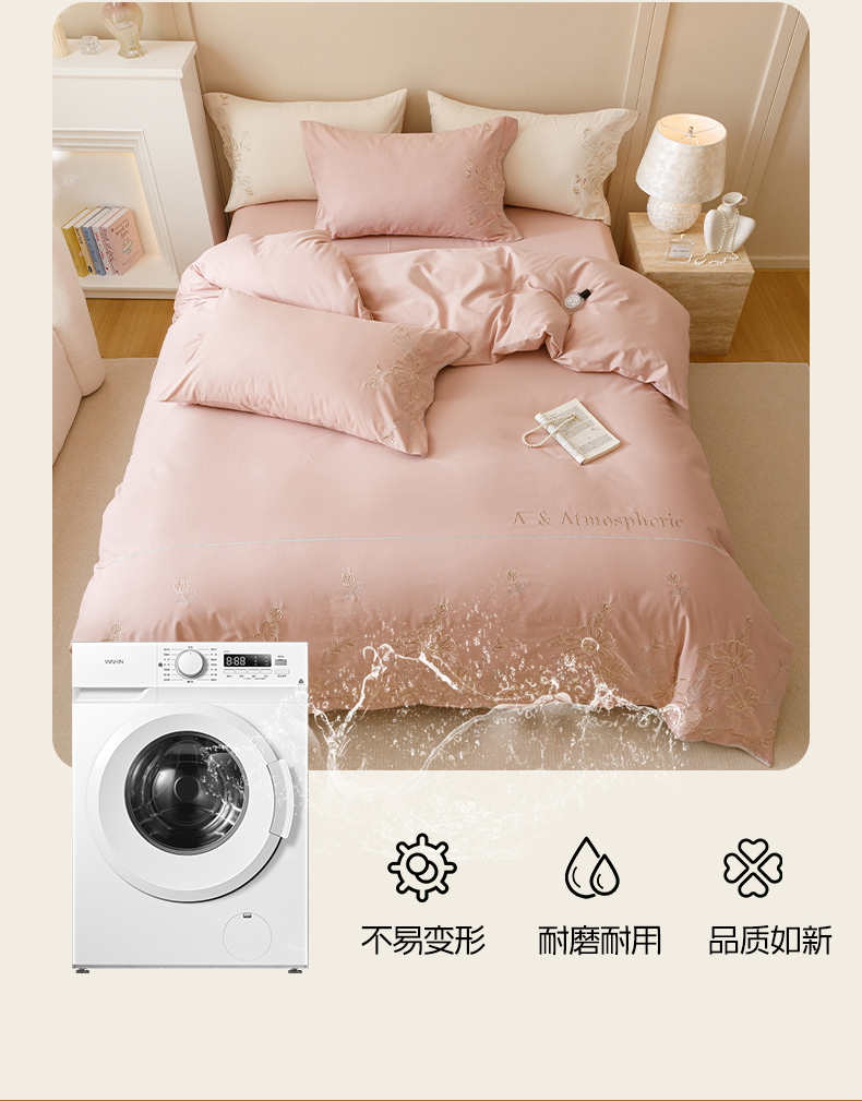 (总)艾莱家纺 2025新款A类水洗棉加厚绣花四件套-栀夏,栀夏-草莓奶粉,栀夏-格林棕,栀夏-暮光绿,栀夏-青叶紫,栀夏-银蓝