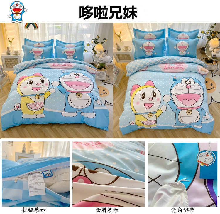 当前位置: 91家纺网 > 商品网购 > 床品套件 > 四件套 > 普通磨毛四件套 > 宝薇 2024新款卡通款加厚斜纹磨毛大版四件套 (新花型不断更新中)哆啦兄妹