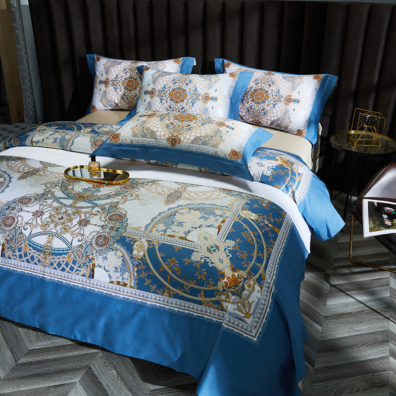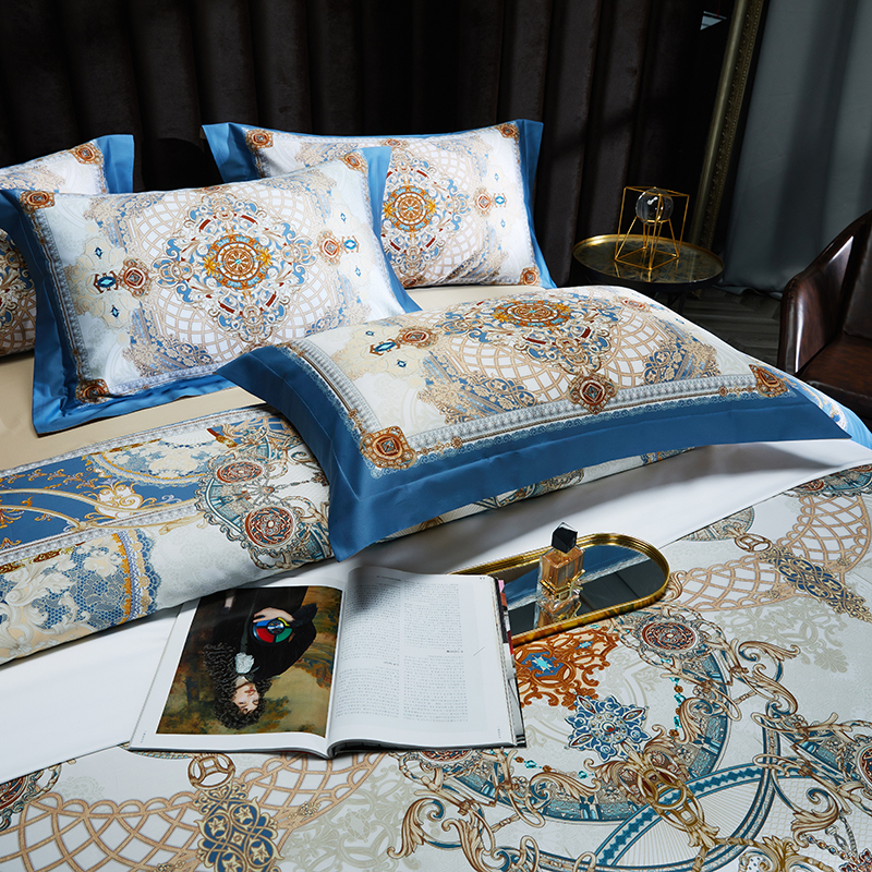 商品名称:2024新款100s长绒棉数码印花大版定位四件套 塞纳花园