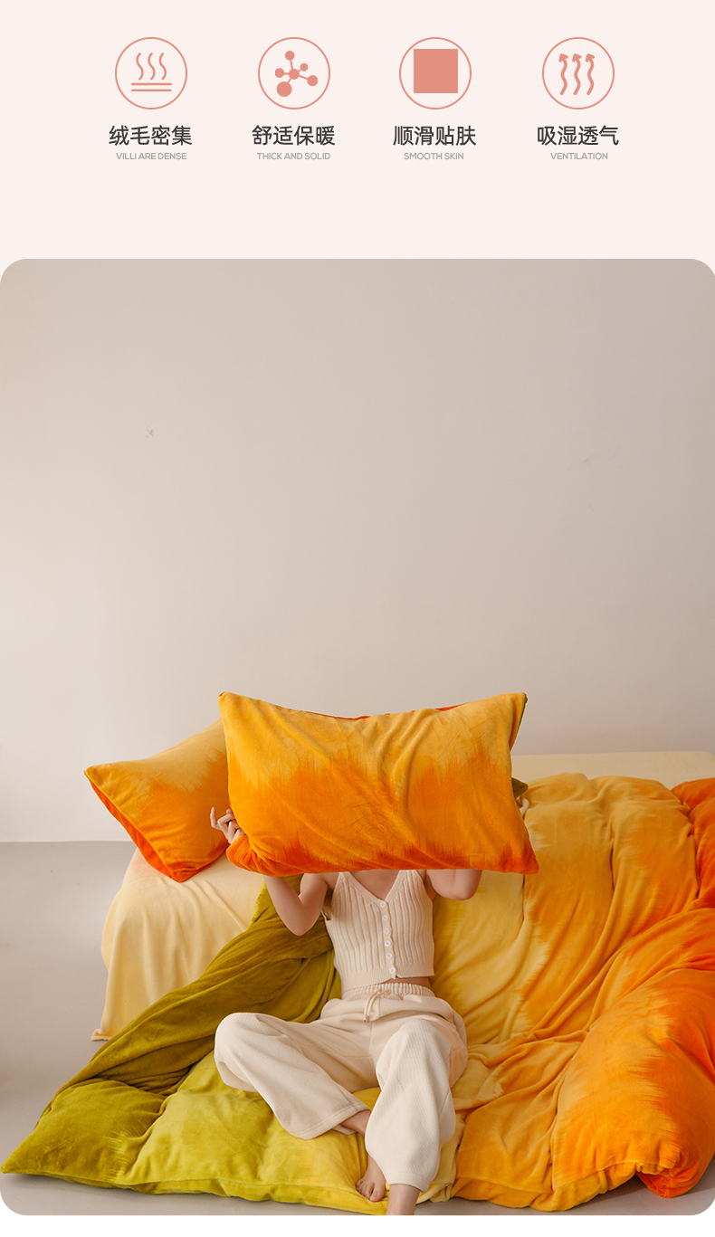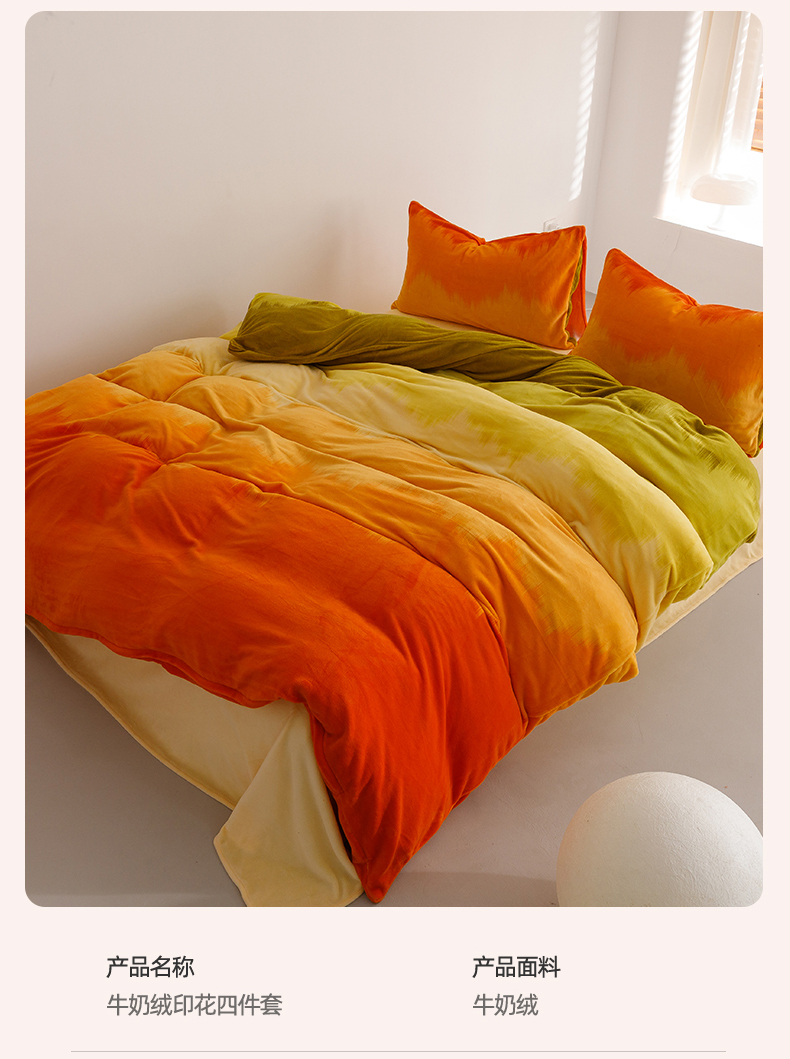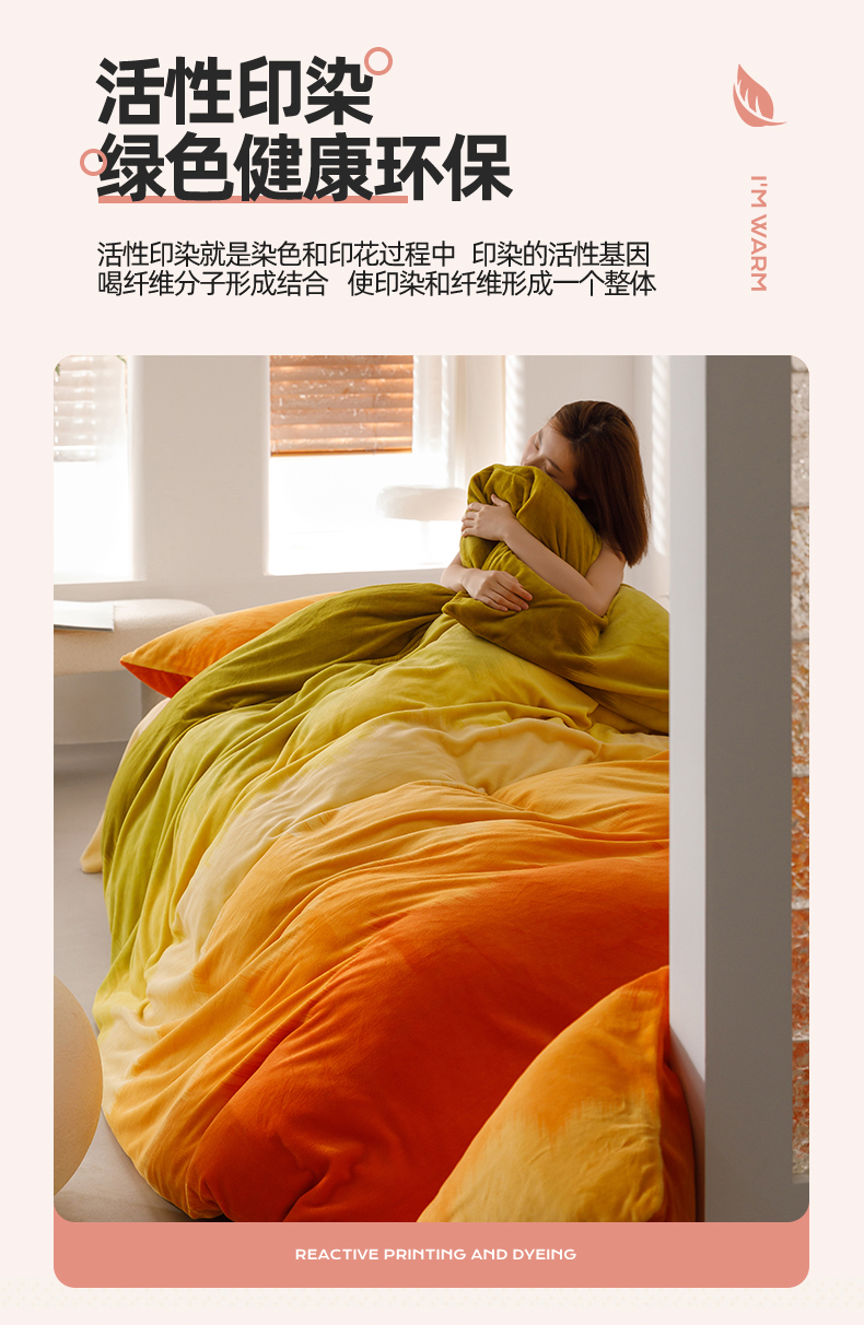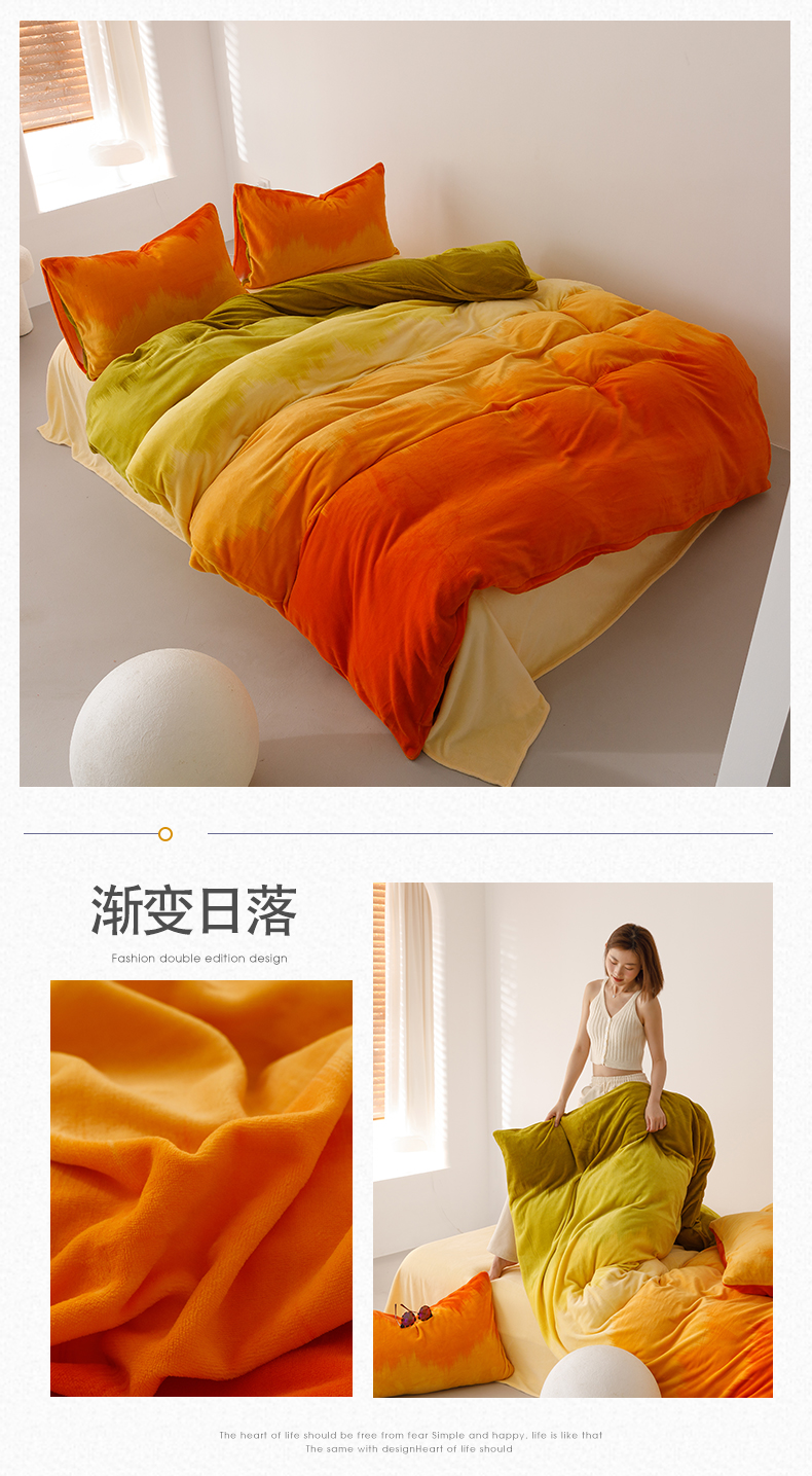 商品名称:红粉佳人 2025新款小清新双面牛奶绒四件套渐变日落