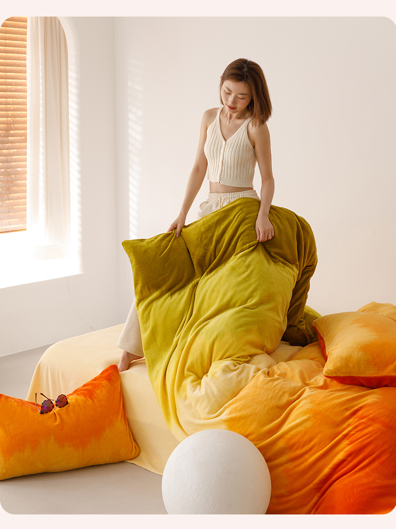 红粉佳人 2025新款小清新双面牛奶绒四件套渐变日落