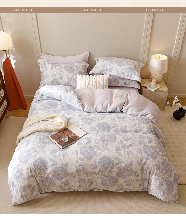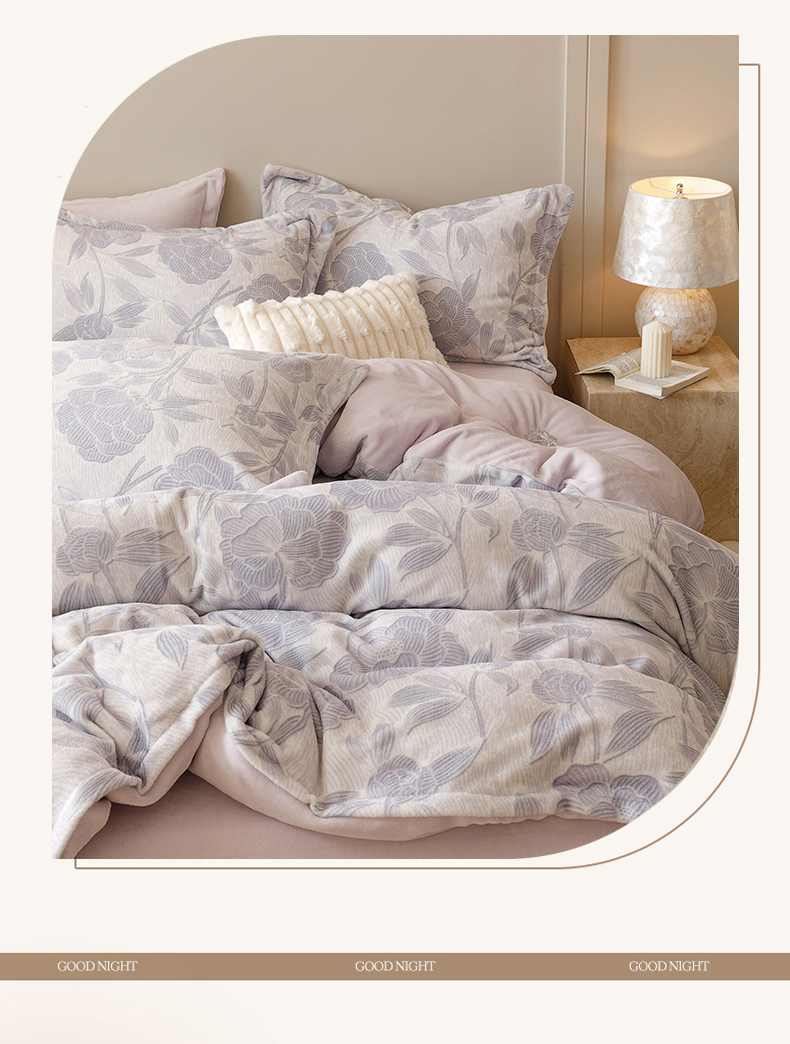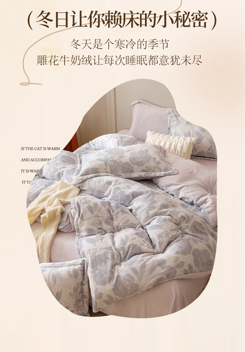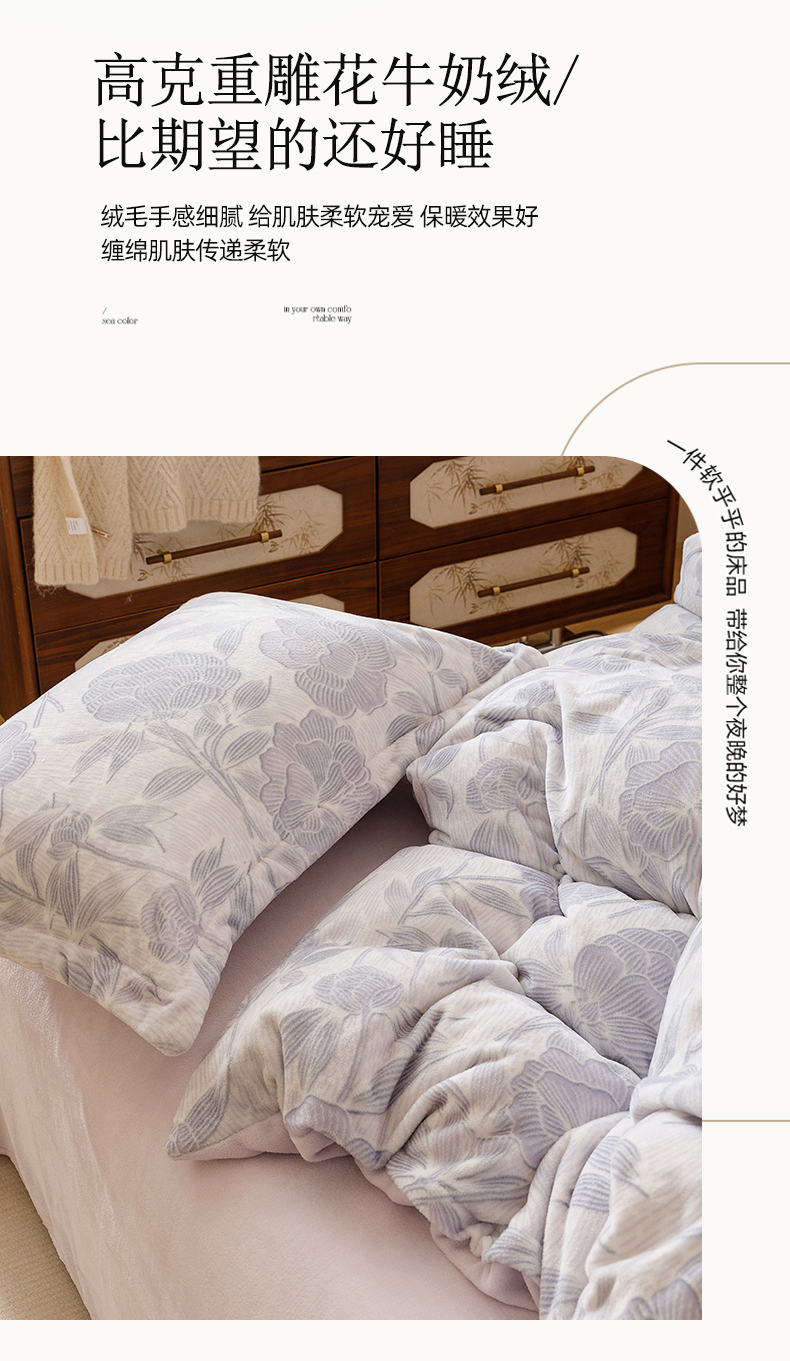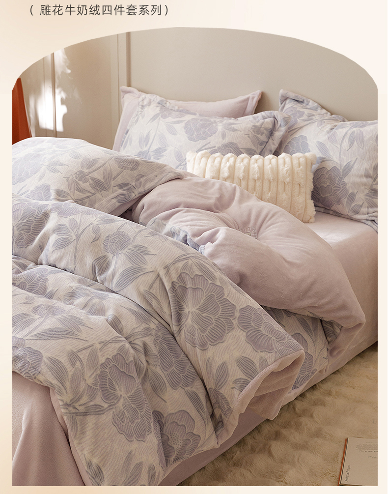 卡派 2024新款轻奢肌理纹雕花工艺款230克加厚牛奶绒四件套(提供买家秀 ) 荷塘月色-紫