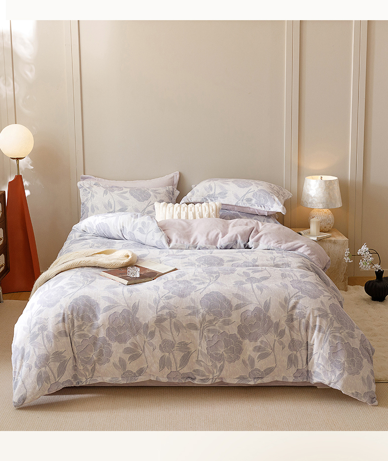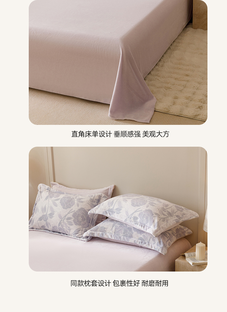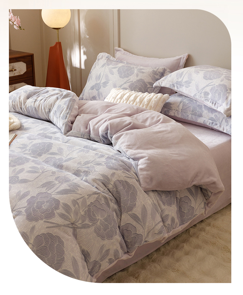 商品名称:卡派 2024新款轻奢肌理纹雕花工艺款230克加厚牛奶绒四件套(提供买家秀 ) 荷塘月色-紫