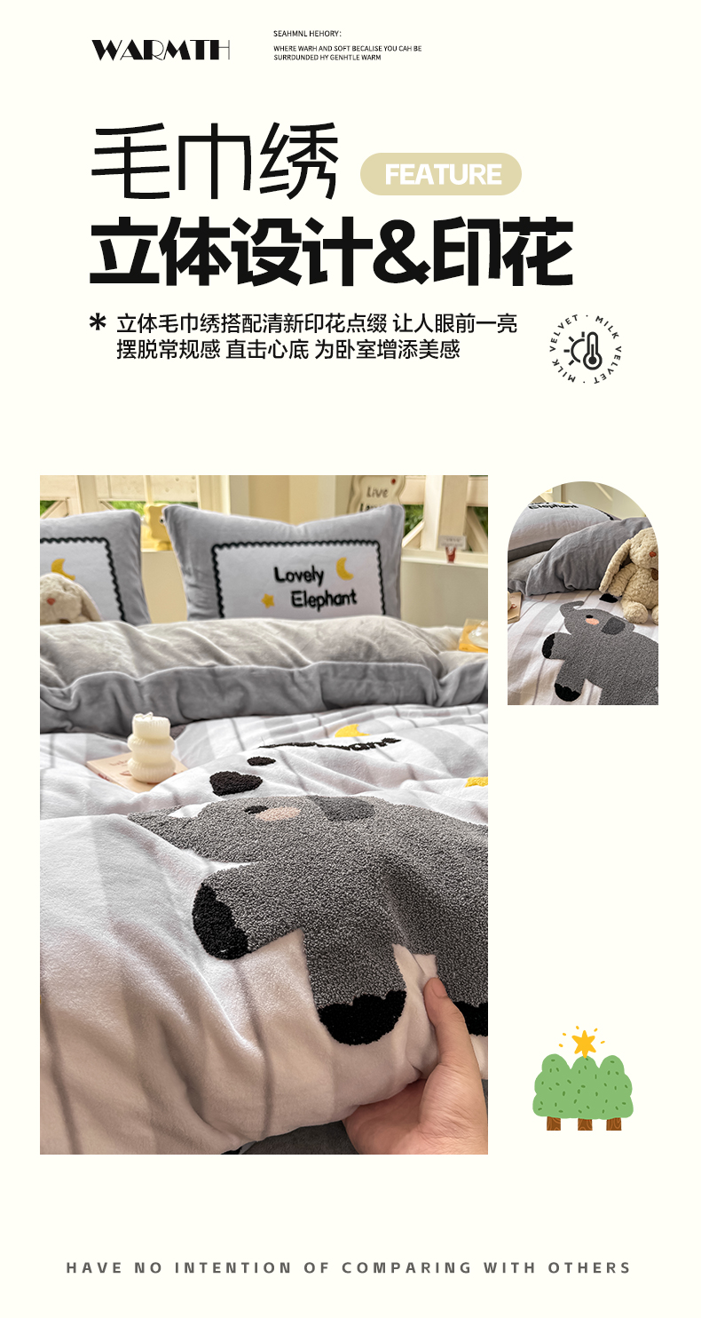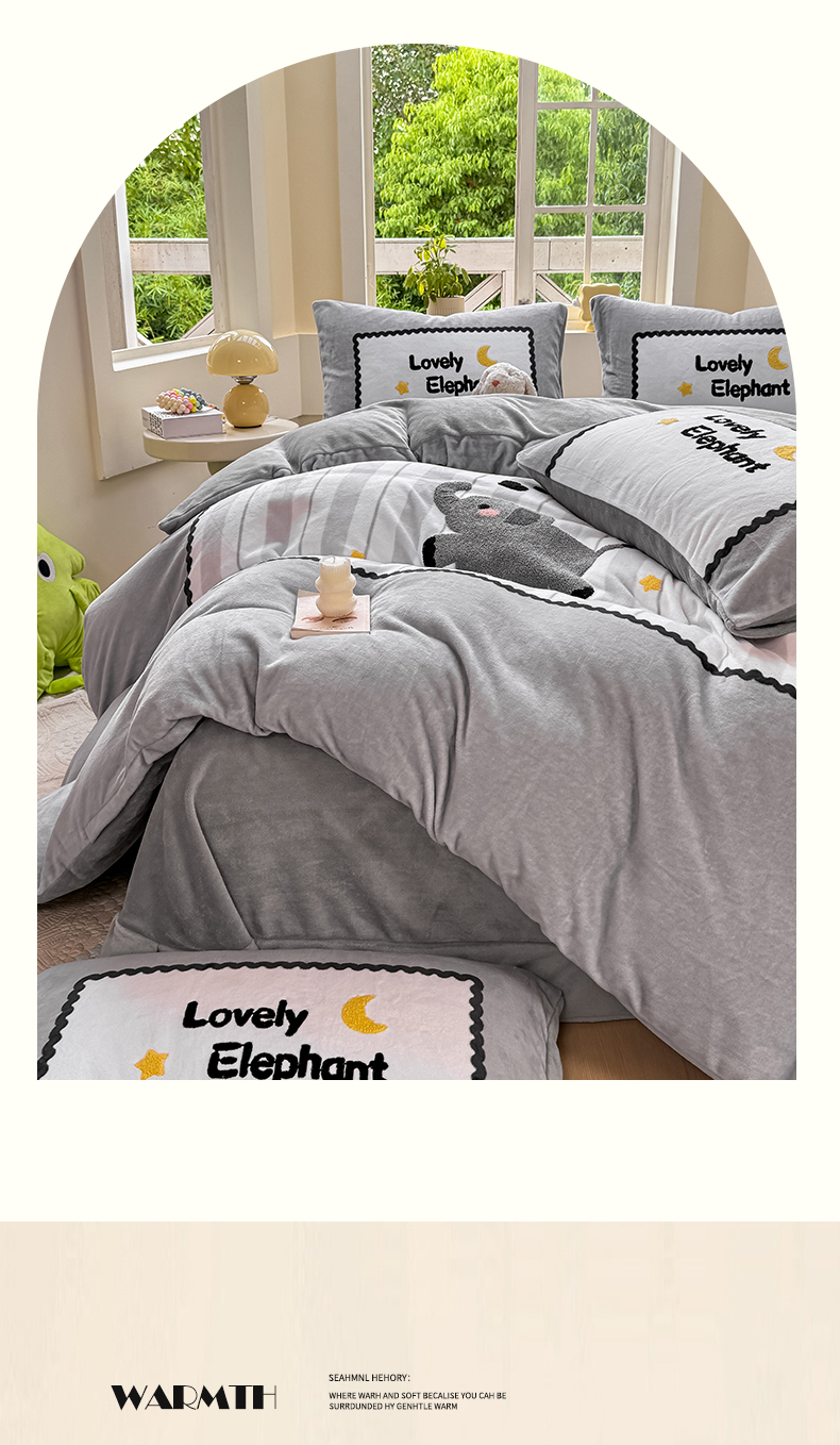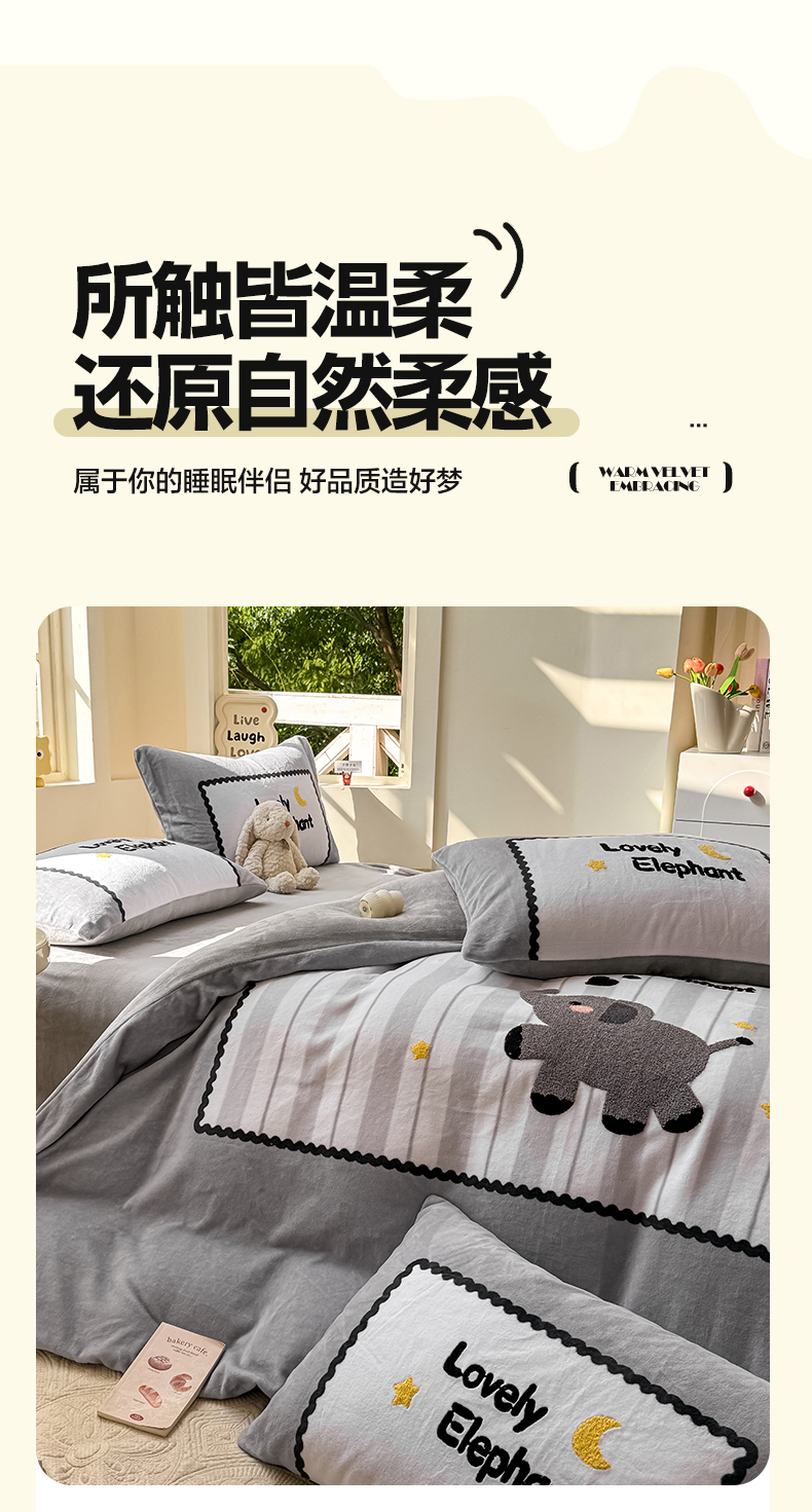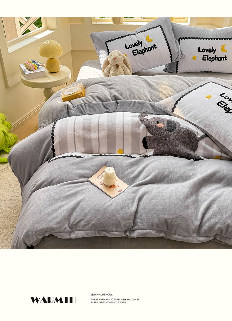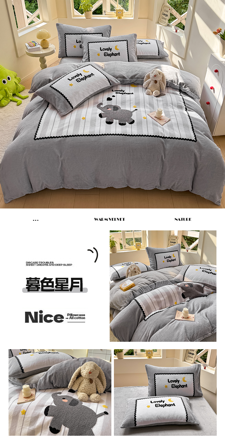 (总)帅露家纺 2025新款A类高克重加厚保暖牛奶绒毛巾绣卡通四件套,背包熊,波点兔,果乐团子,快乐企鹅,懒懒熊,雷欧,猫咪日记,萌宠鸭,梦龙,蘑菇林,暮色星月,南瓜精灵,柠乐乐,桃乐乐