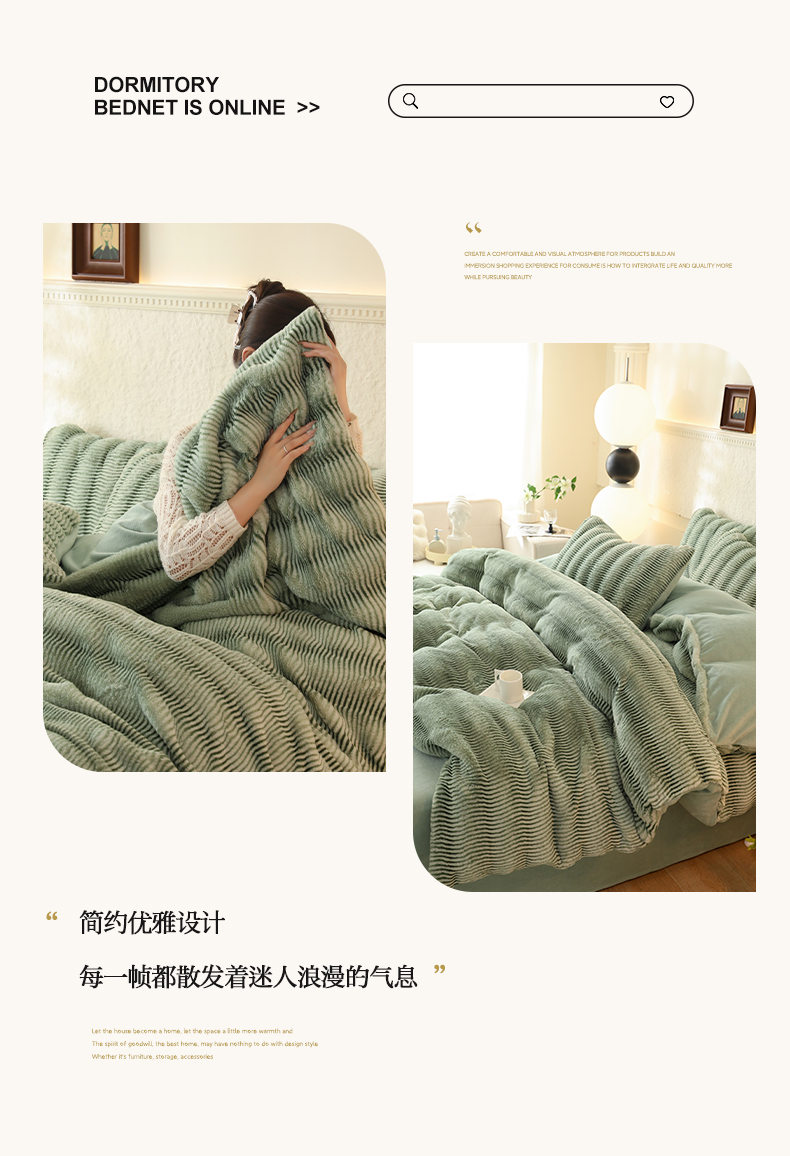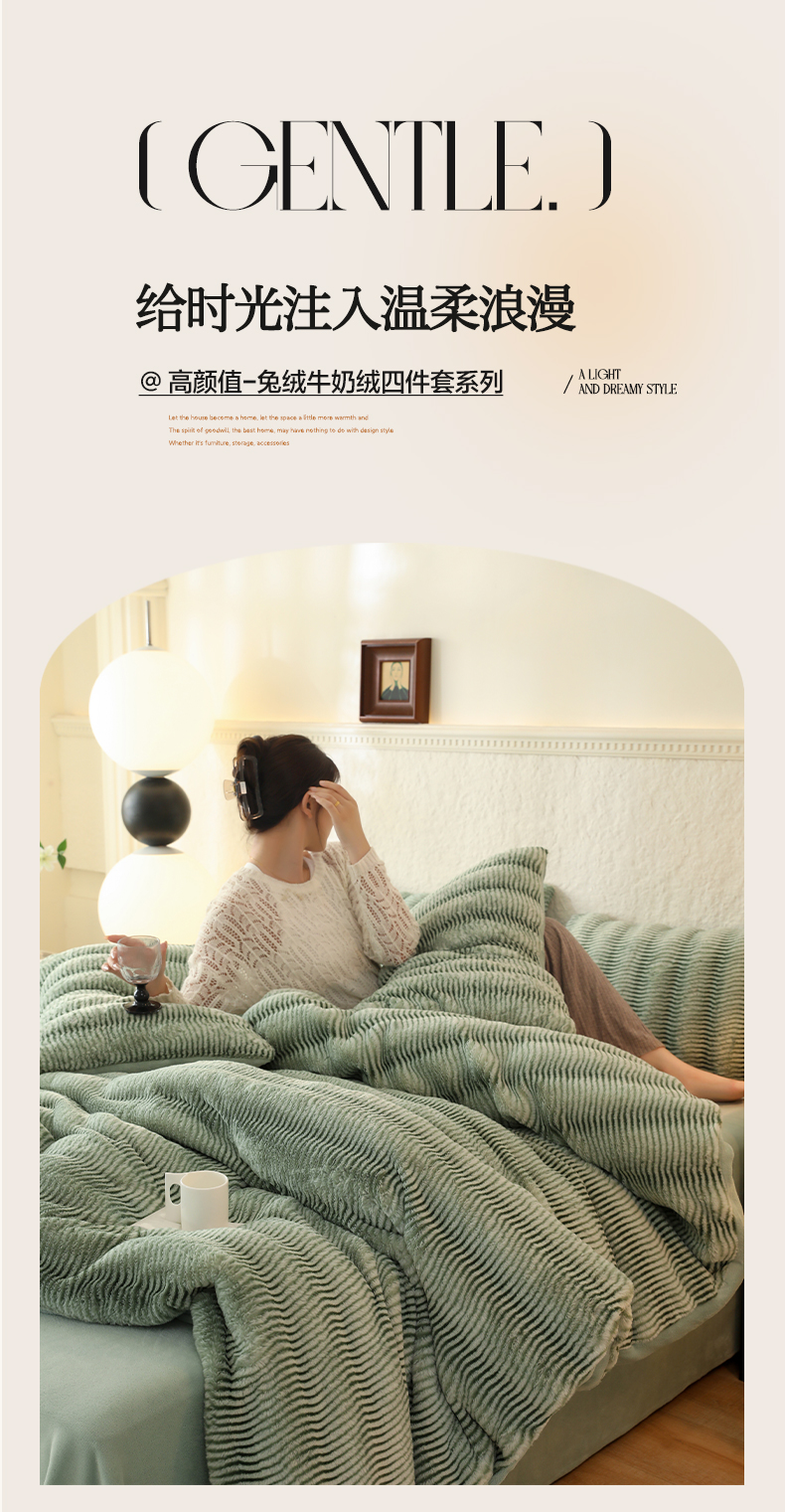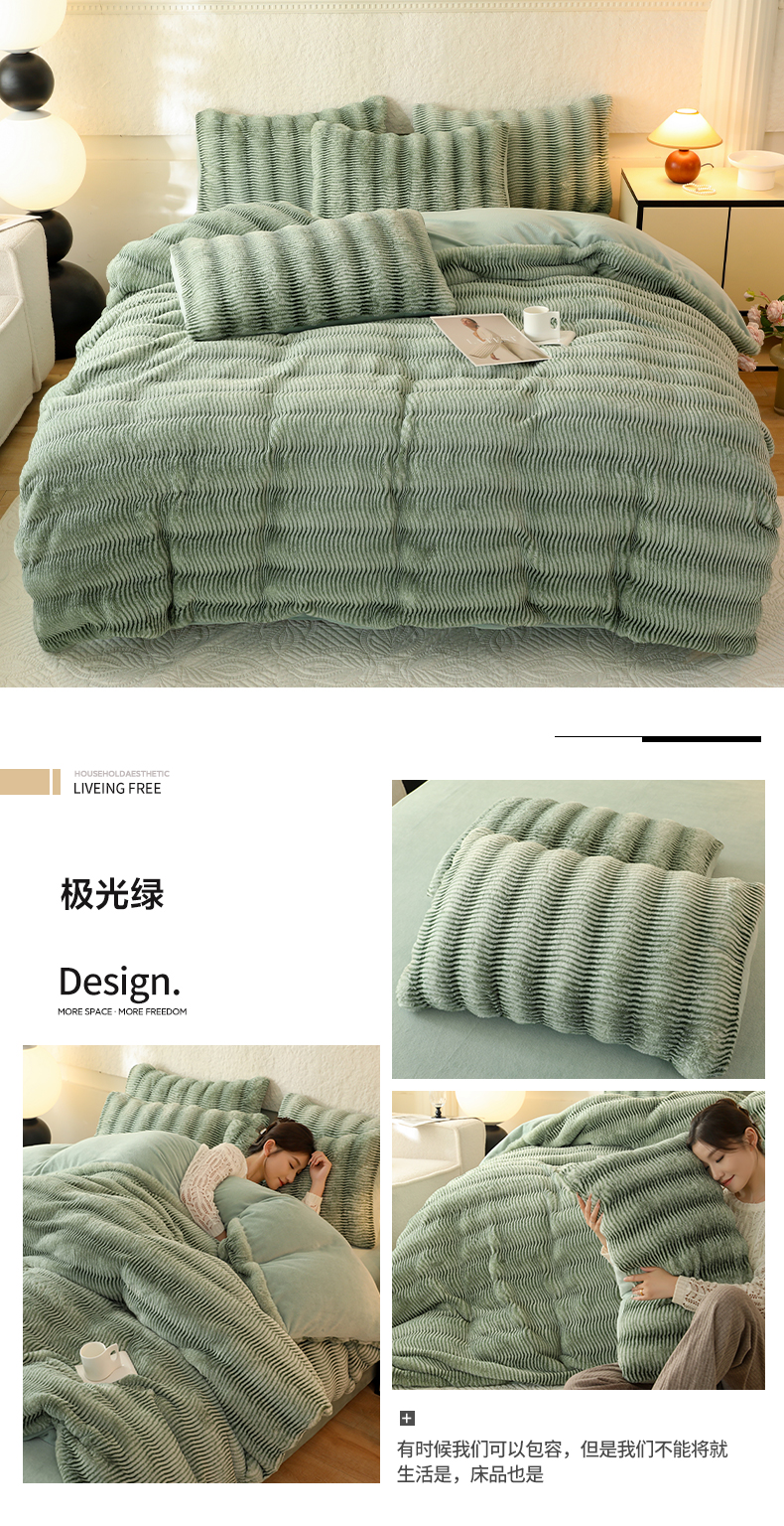 当前位置: 91家纺网 > 商品网购 > 床品套件 > 四件套 > 兔毛绒四件套 > 逸尚阁 2024新款极奢兔绒牛奶绒四件套 极光绿
