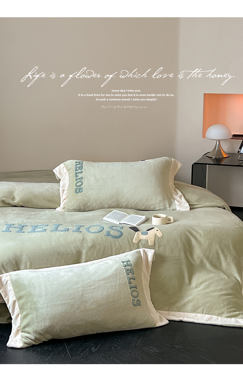 商品名称:名品优仓 2024新款高克重牛奶绒毛巾绣四件套-莫安迪 莫安迪-绿矾