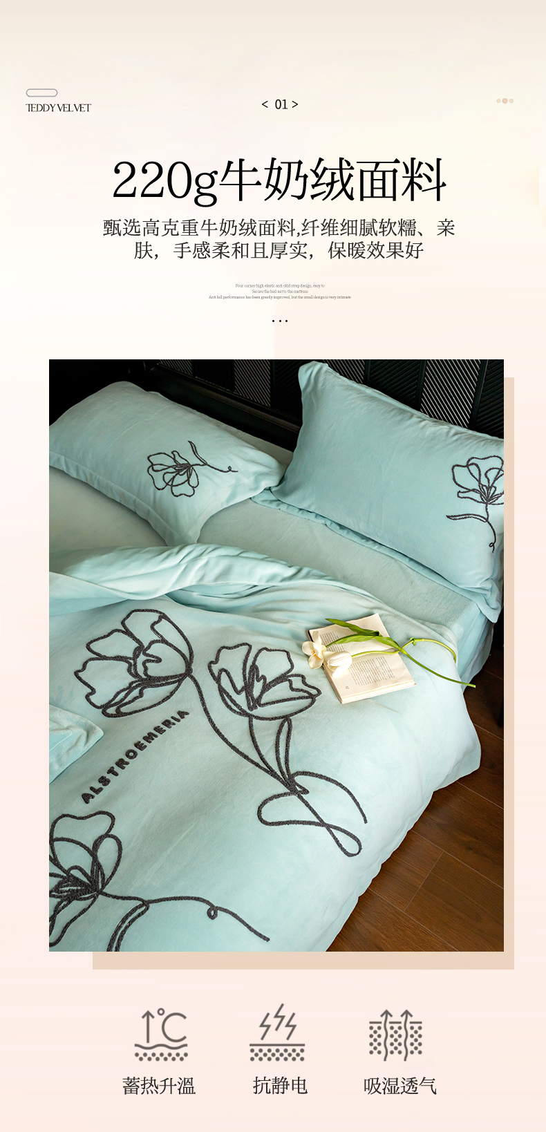 (总)名品优仓 2025新款220克牛奶绒绣花四件套-珊瑚,珊瑚-宝石蓝,珊瑚-粉色,珊瑚-姜黄,珊瑚-米杏,珊瑚-沫粉,珊瑚-杏粉