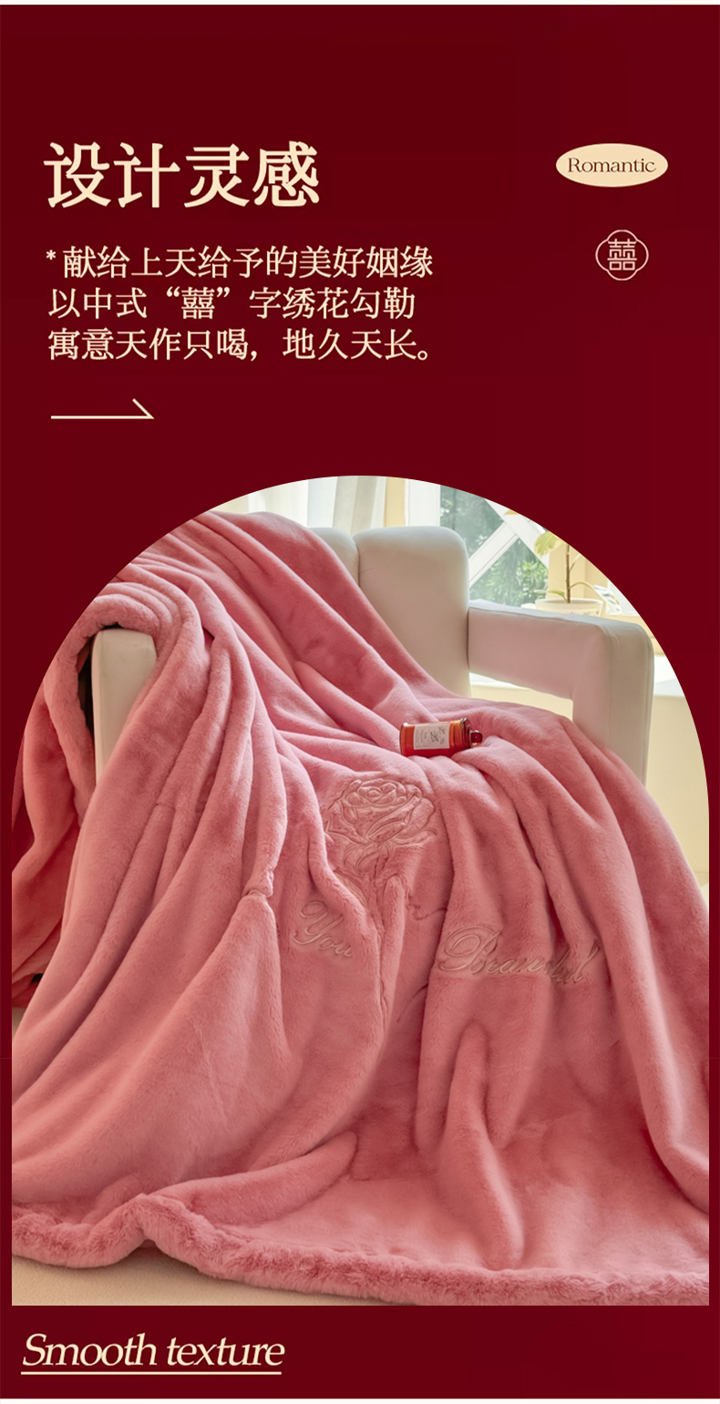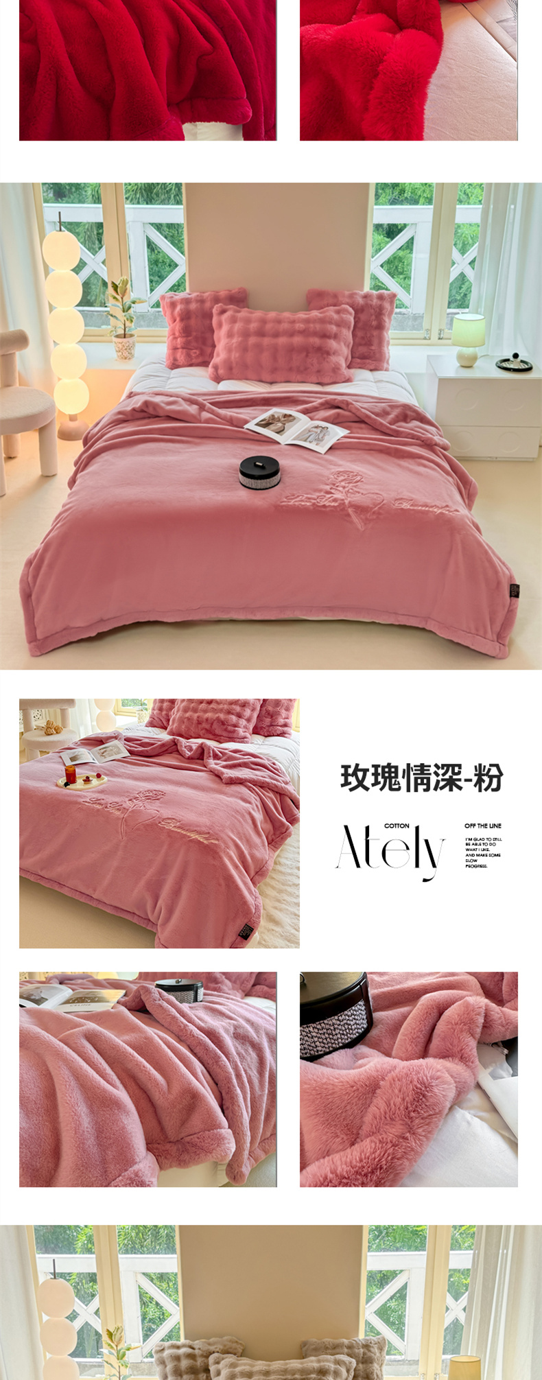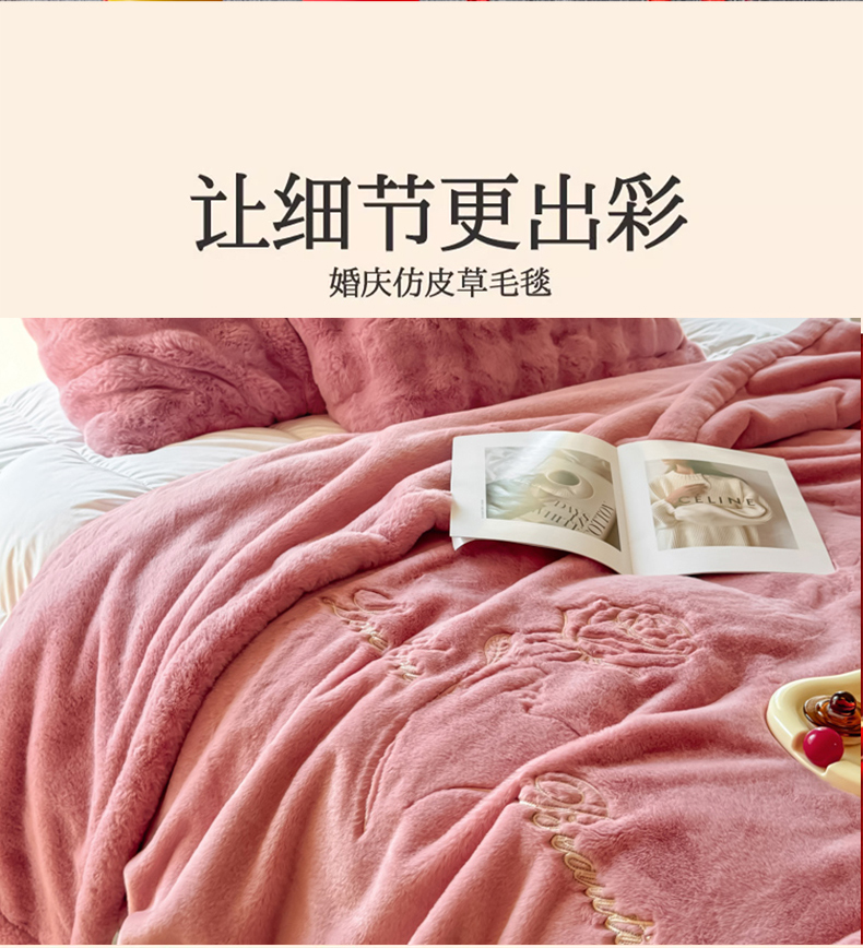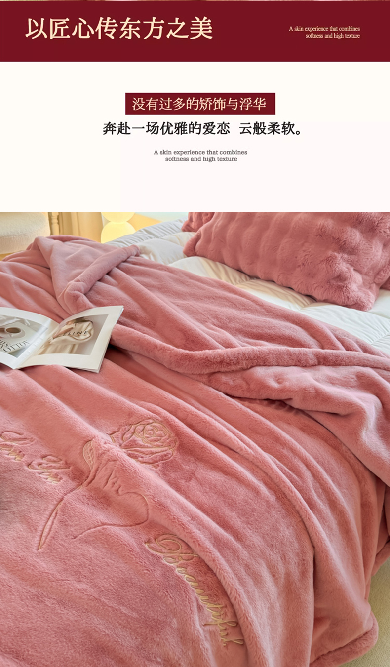 商品名称:悦织湾家纺 2025新款轻奢仿兔毛绒仿裘皮仿皮草绣花毛毯 玫瑰情深-粉