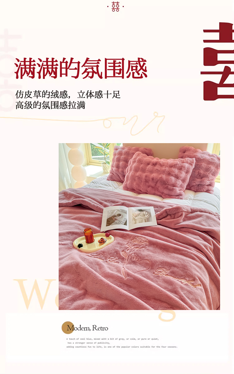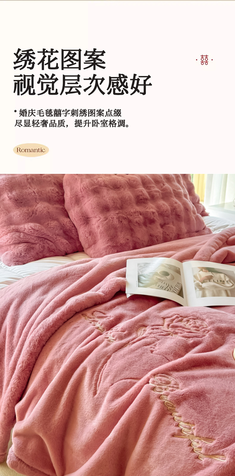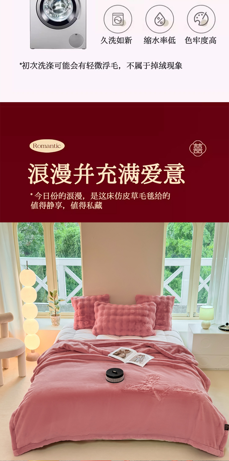 商品名称:悦织湾家纺 2025新款轻奢仿兔毛绒仿裘皮仿皮草绣花毛毯 玫瑰情深-粉