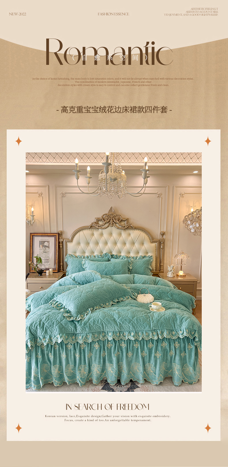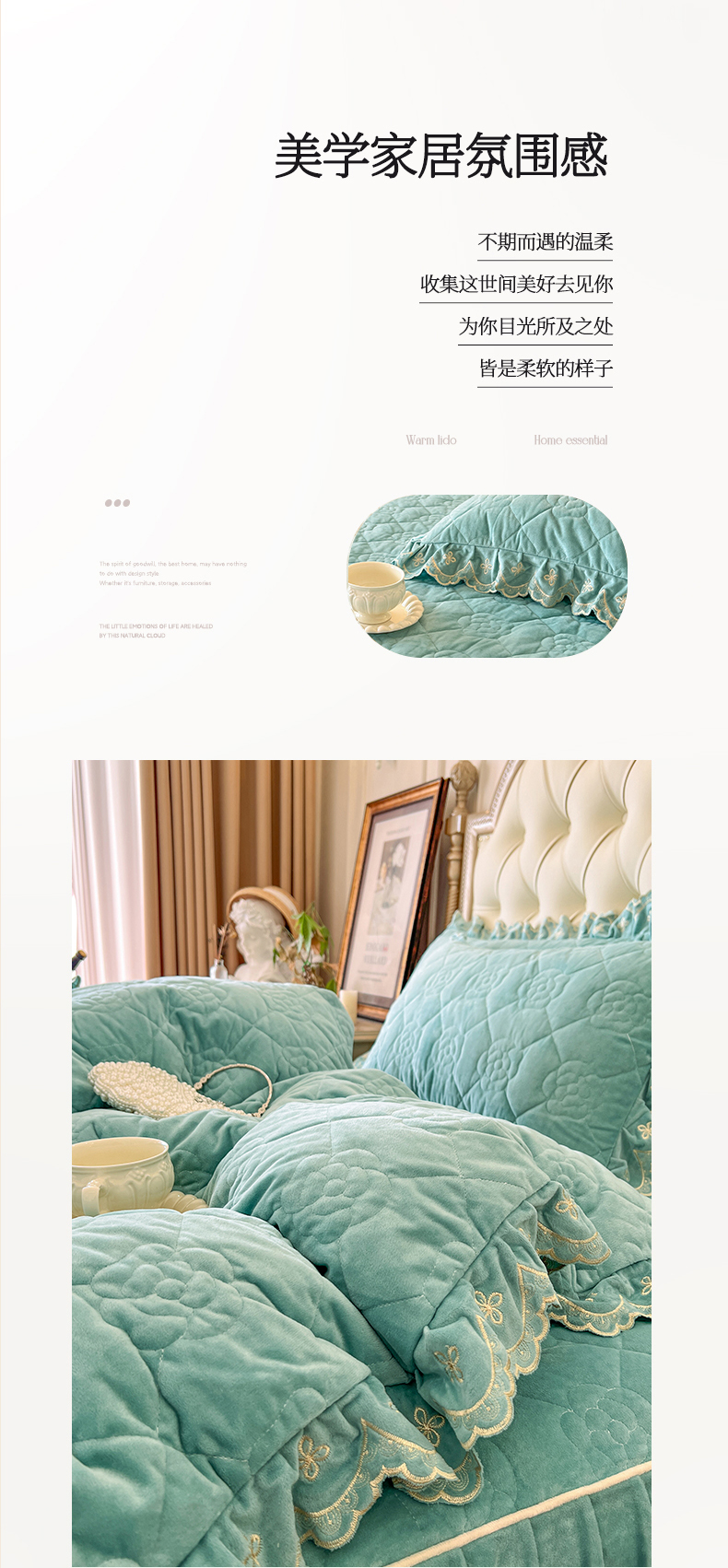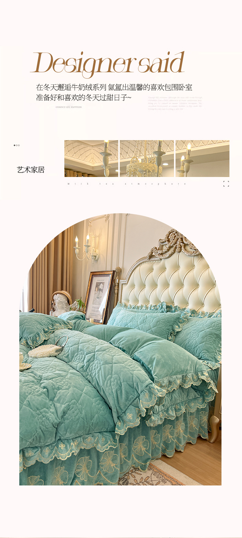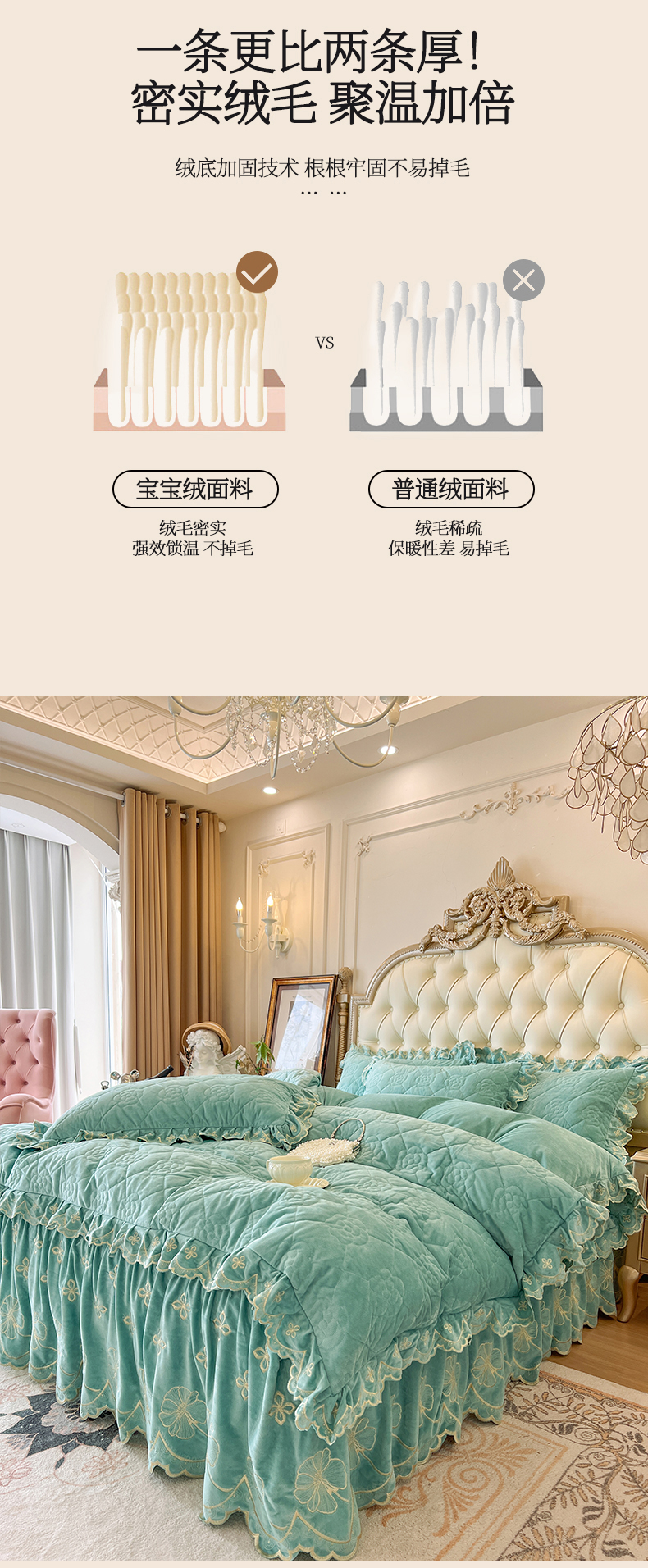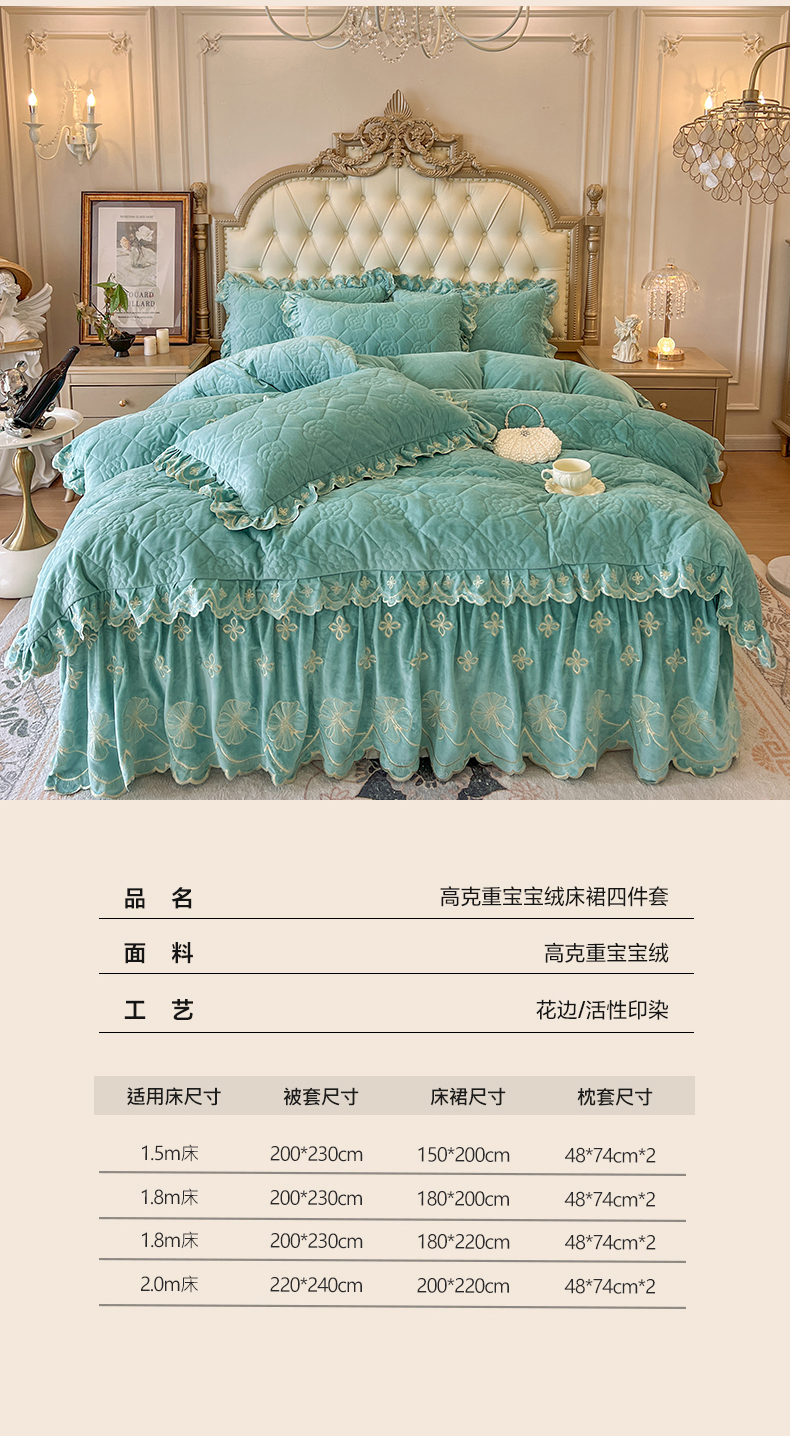 当前位置: 91家纺网 > 商品网购 > 床品套件 > 四件套 > 其它四件套 > 网红馆(ck家纺) 2025新款高克重宝宝绒床裙四件套 琥珀绿