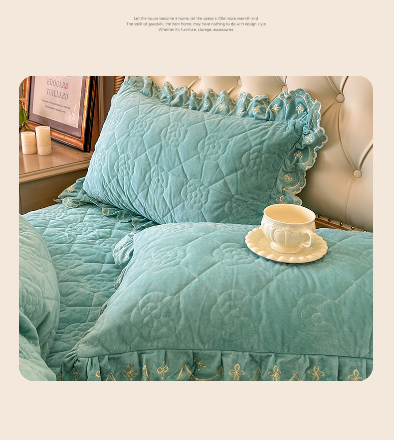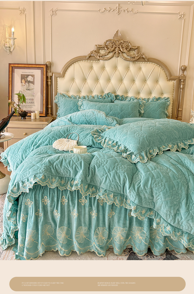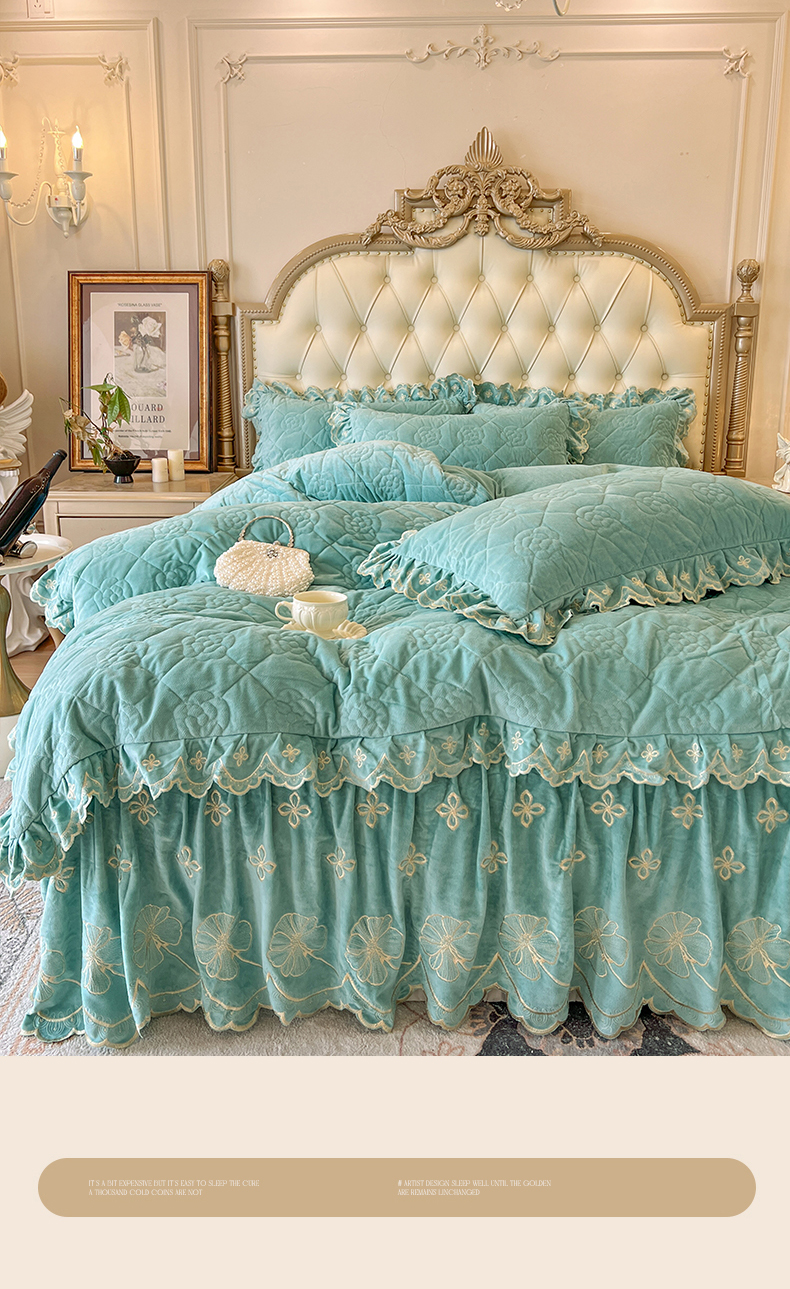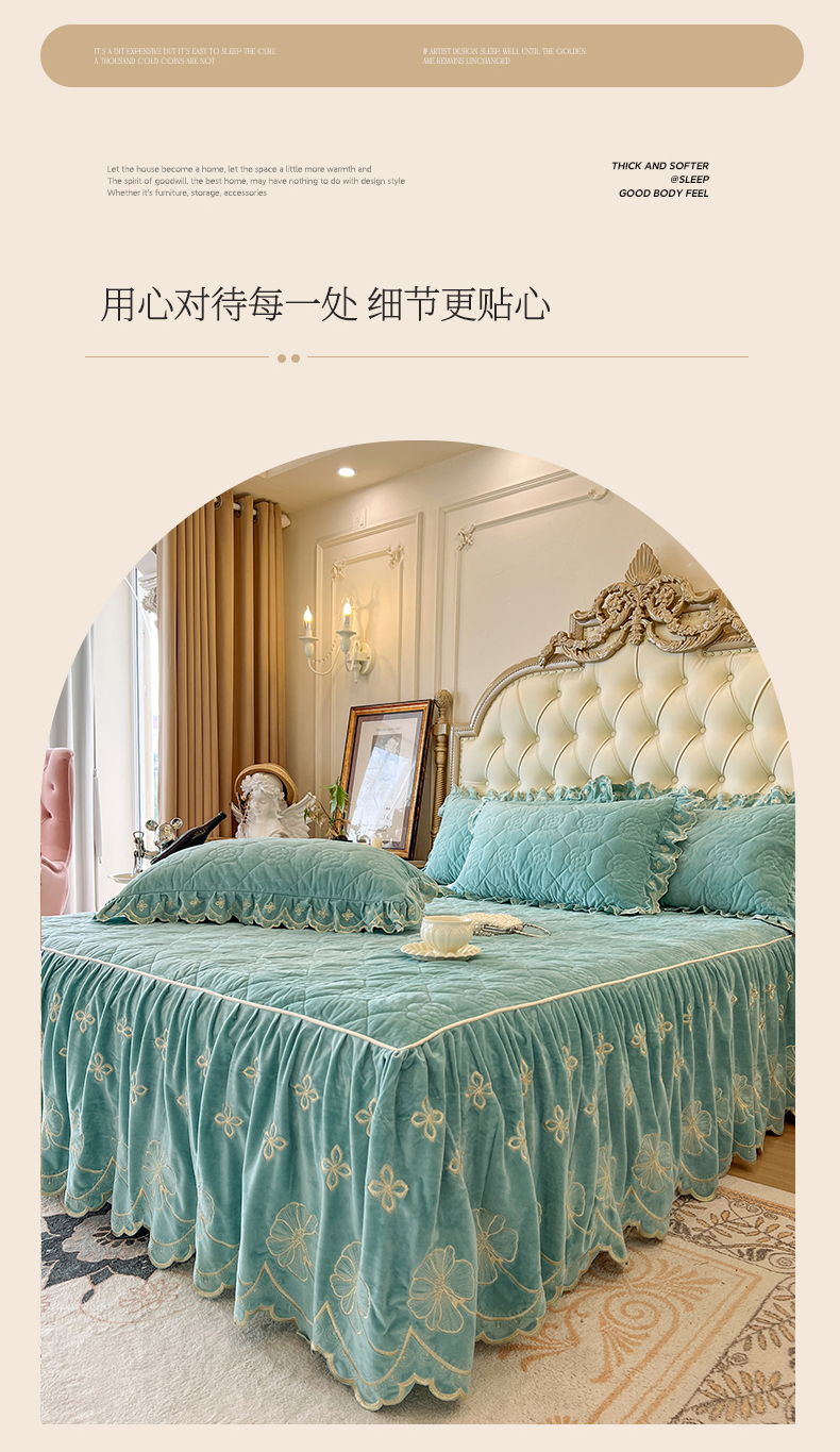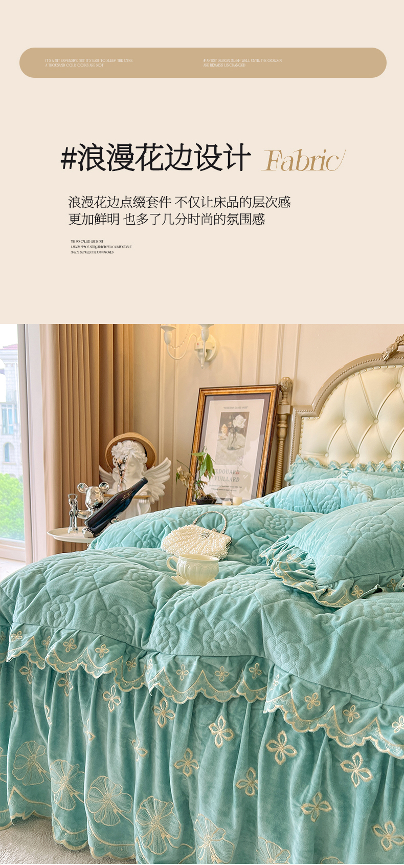 当前位置: 91家纺网 > 商品网购 > 床品套件 > 四件套 > 其它四件套 > 网红馆(ck家纺) 2025新款高克重宝宝绒床裙四件套 琥珀绿