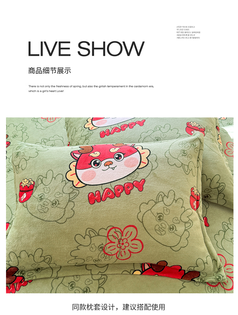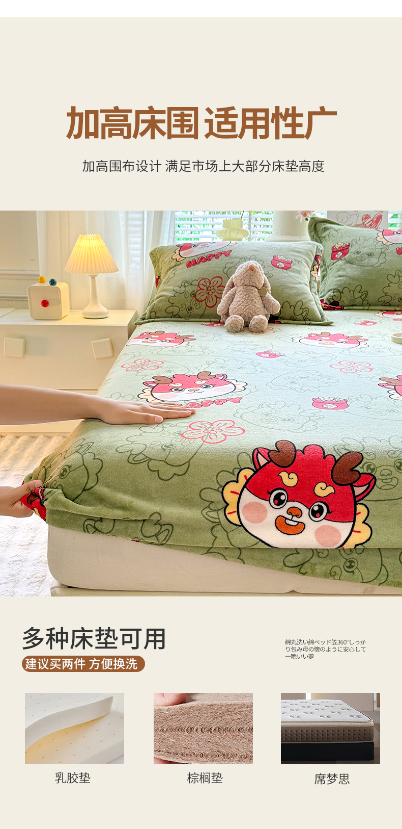 商品名称:妖妖家纺 2024新款200克牛奶绒单床笠 开心龙龙