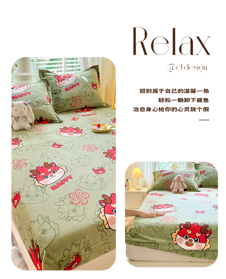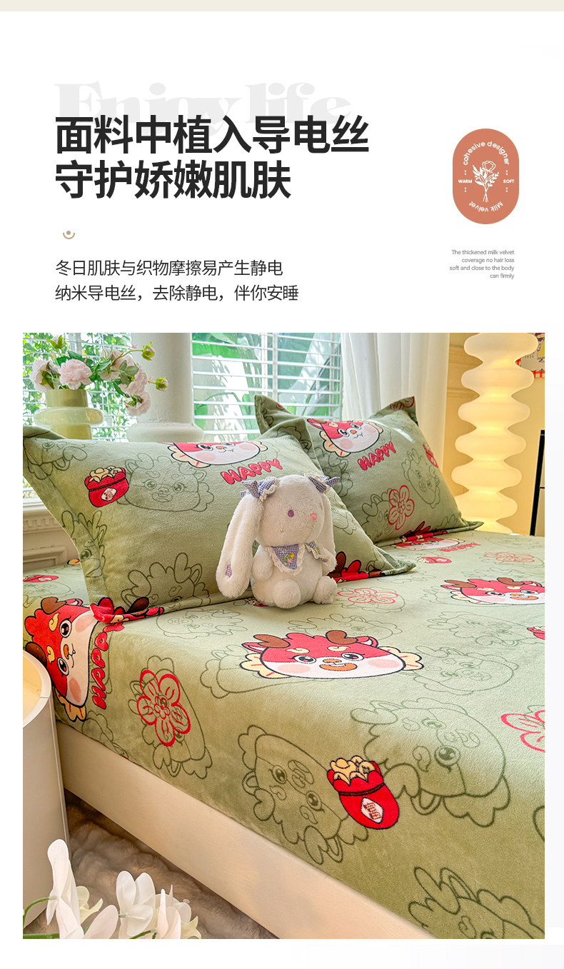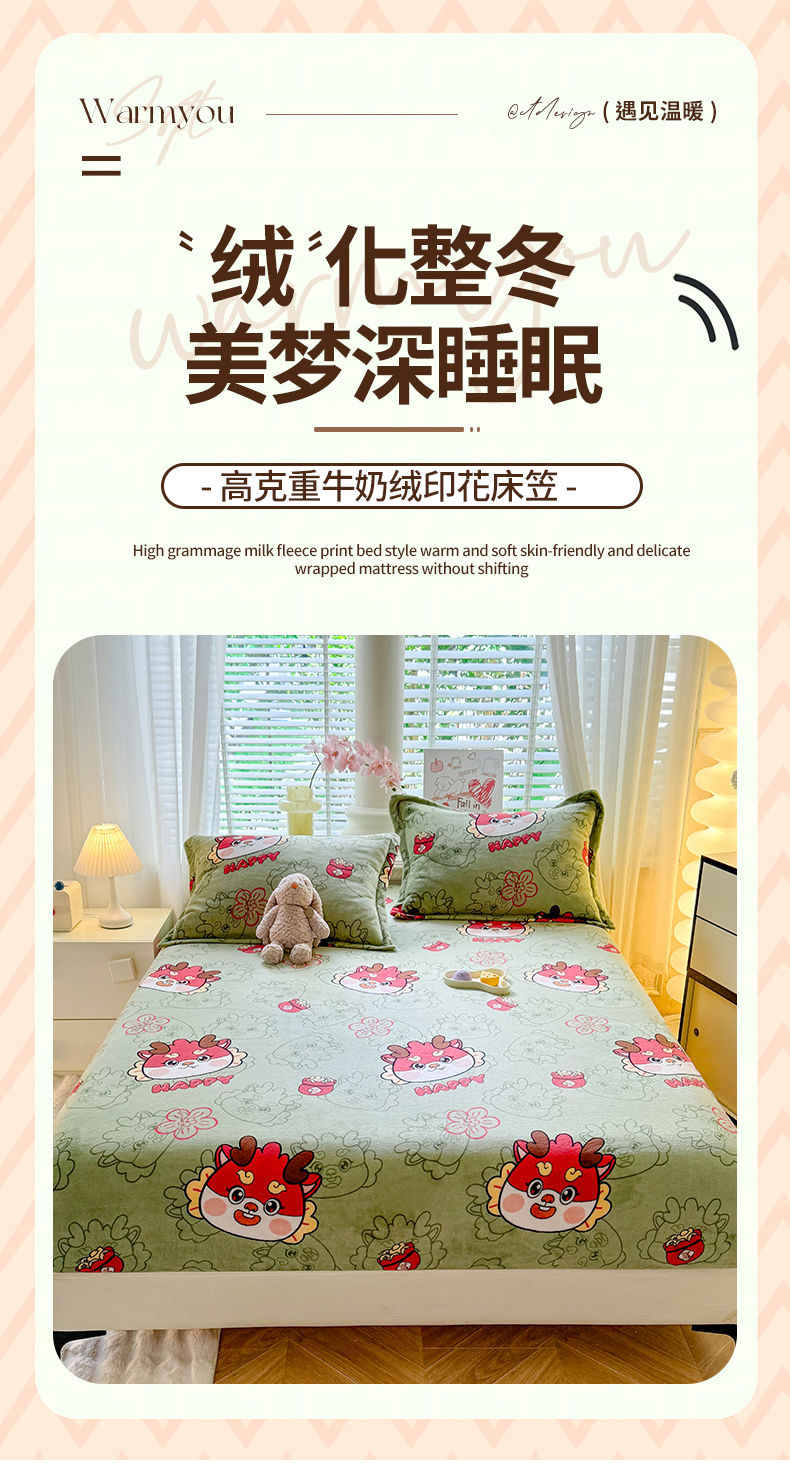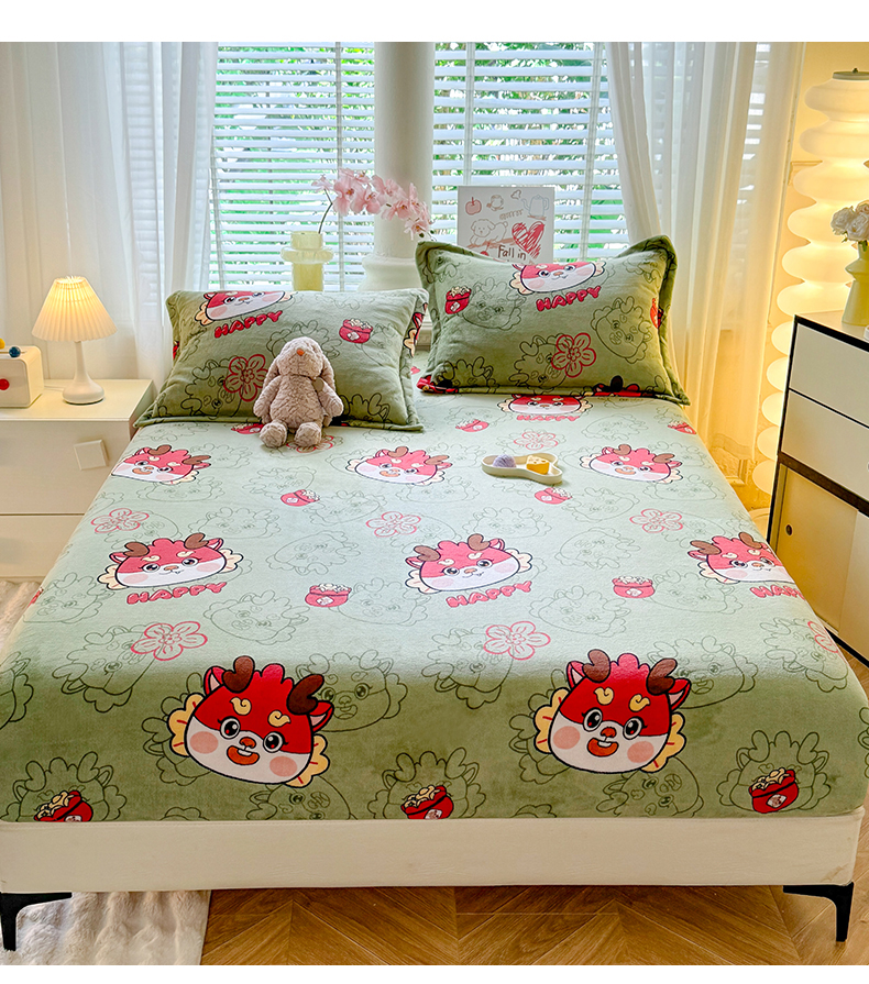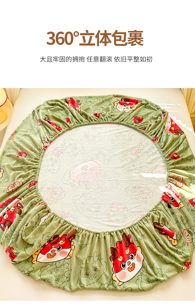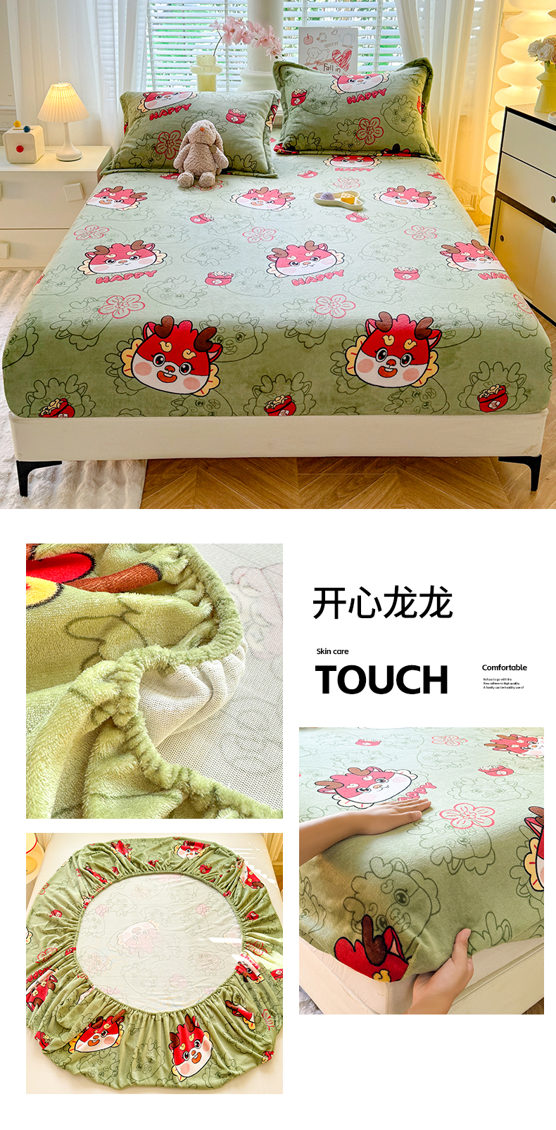妖妖家纺 2024新款200克牛奶绒单床笠 开心龙龙
