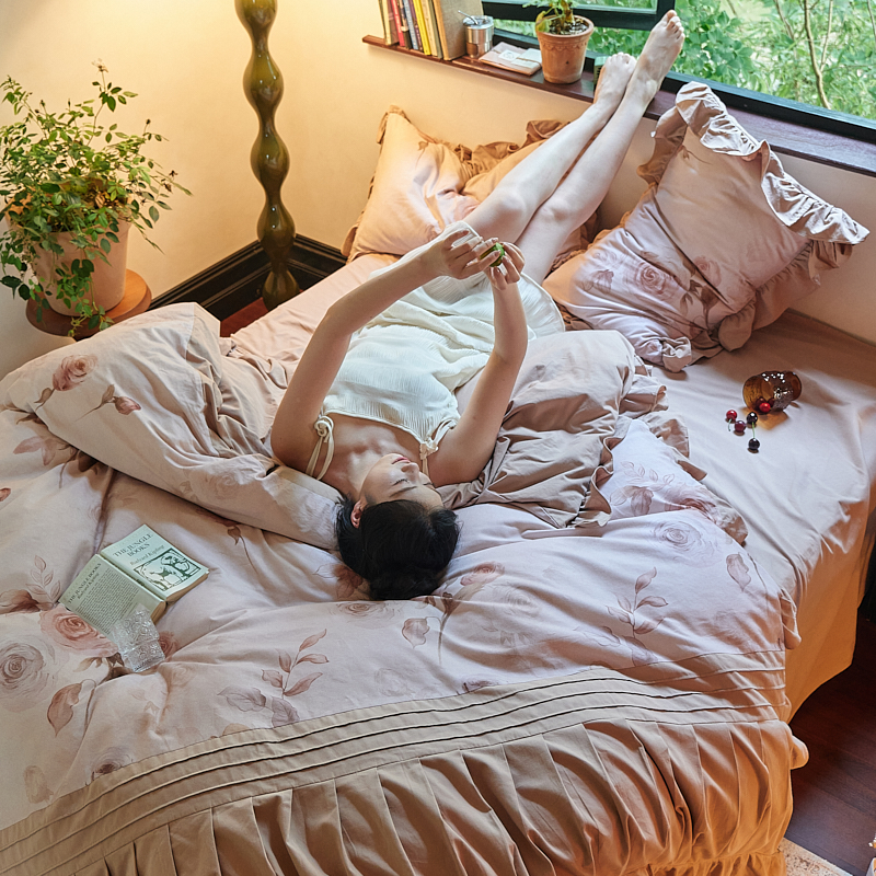 曼布缇 2025秋冬新品100s全棉加厚磨毛工艺款四件套-南法庄园 南法庄园-丝绒拿铁
