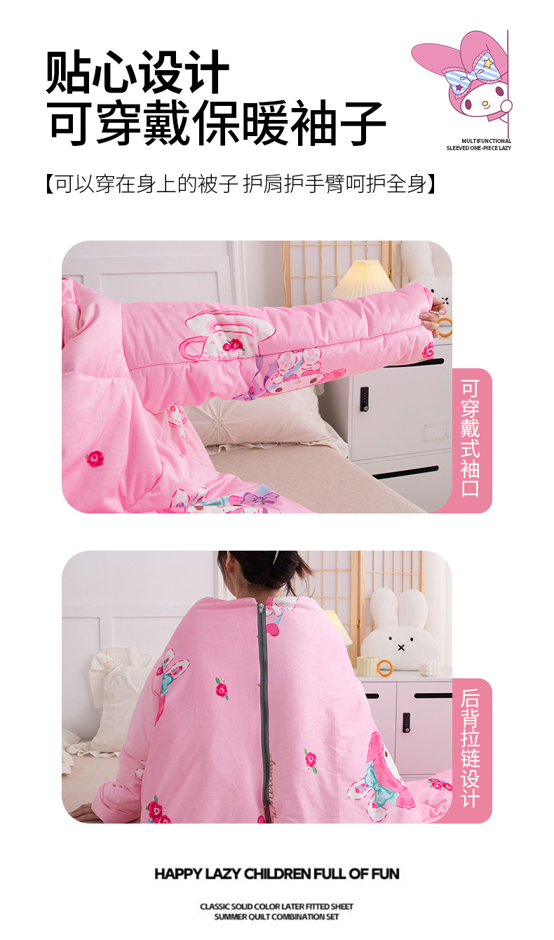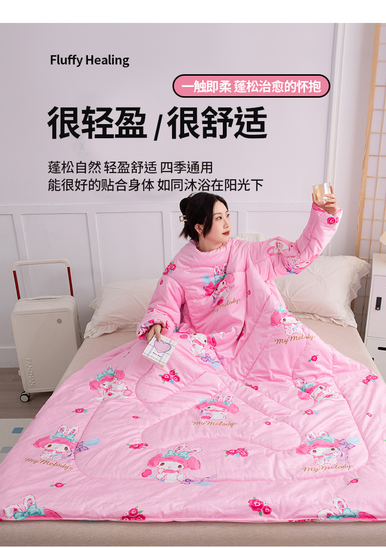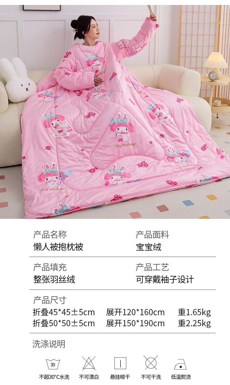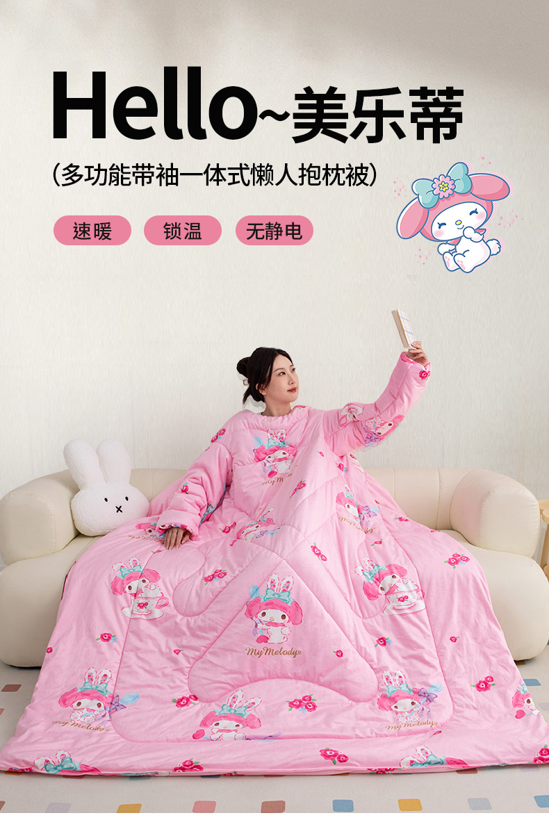 商品名称:照世家纺 2024新款卡通三丽鸥水晶绒多功能带袖一体式懒人被 美乐蒂