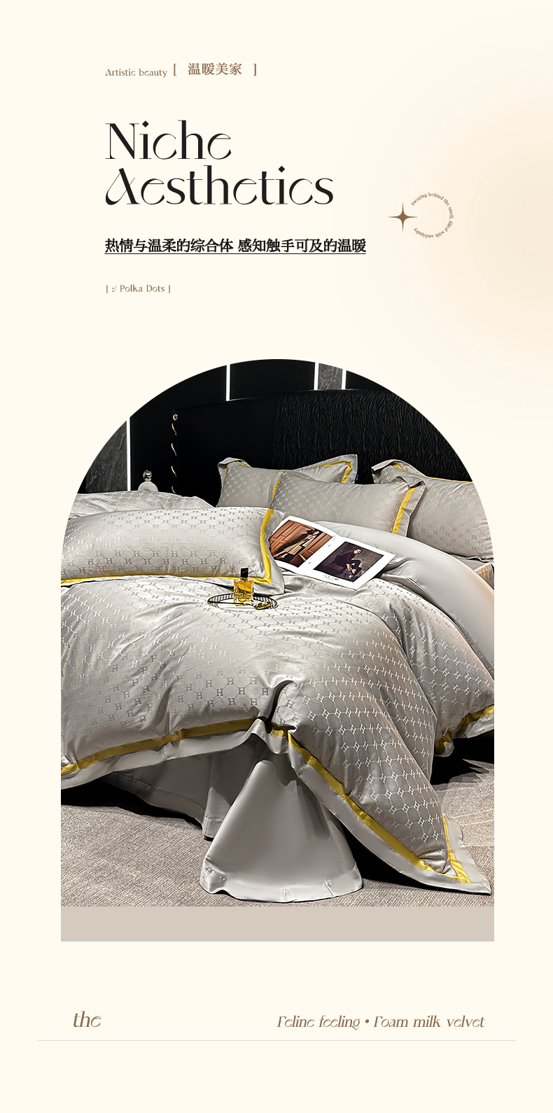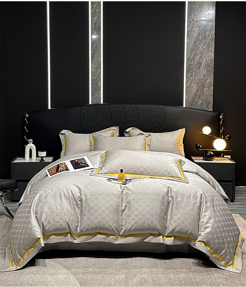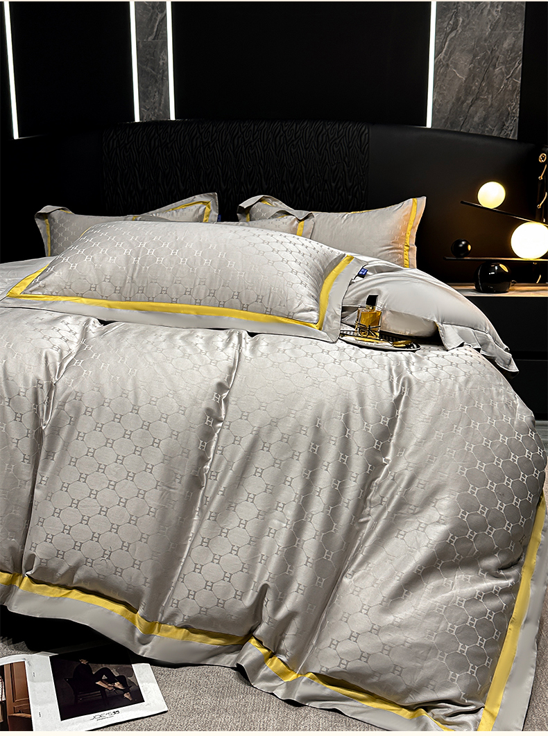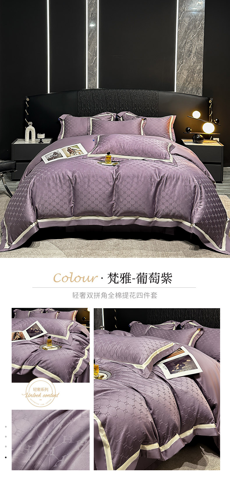 雲归梦 2024新款轻奢双拼角全棉提花四件套 梵雅-雅士灰