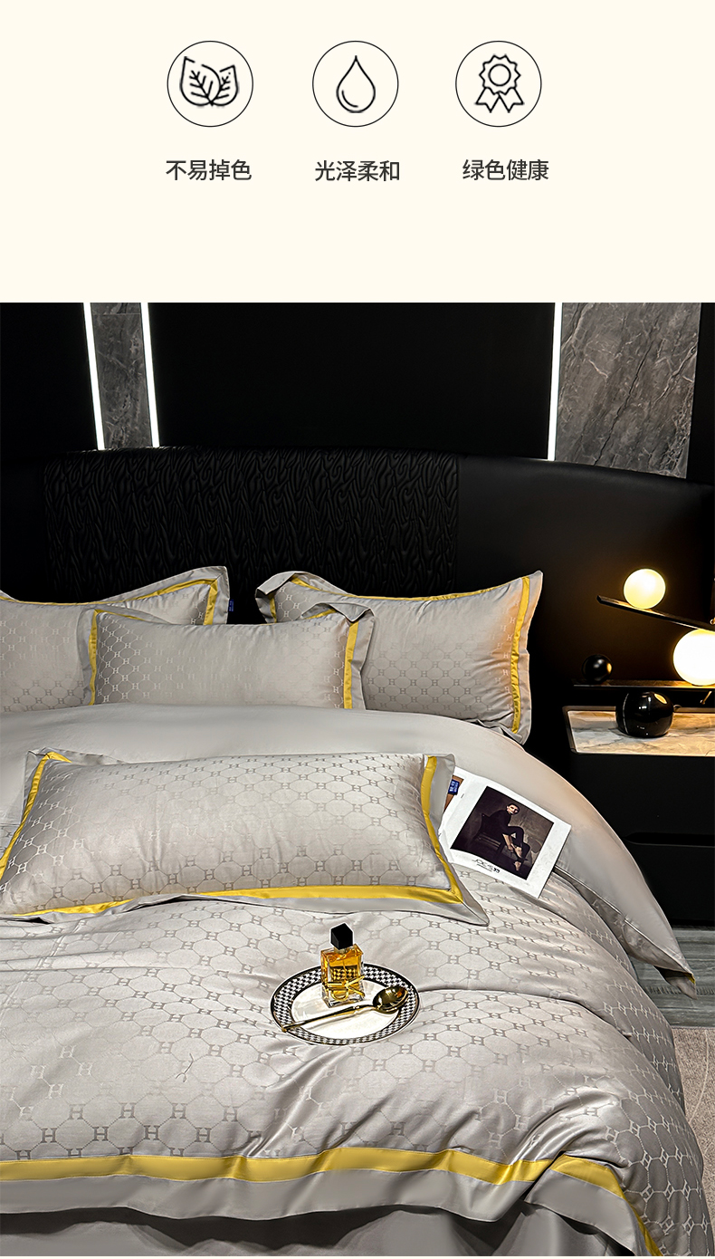 商品名称:雲归梦 2024新款轻奢双拼角全棉提花四件套 梵雅-雅士灰