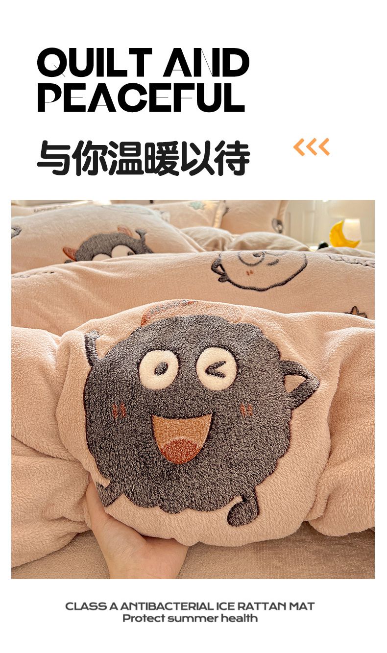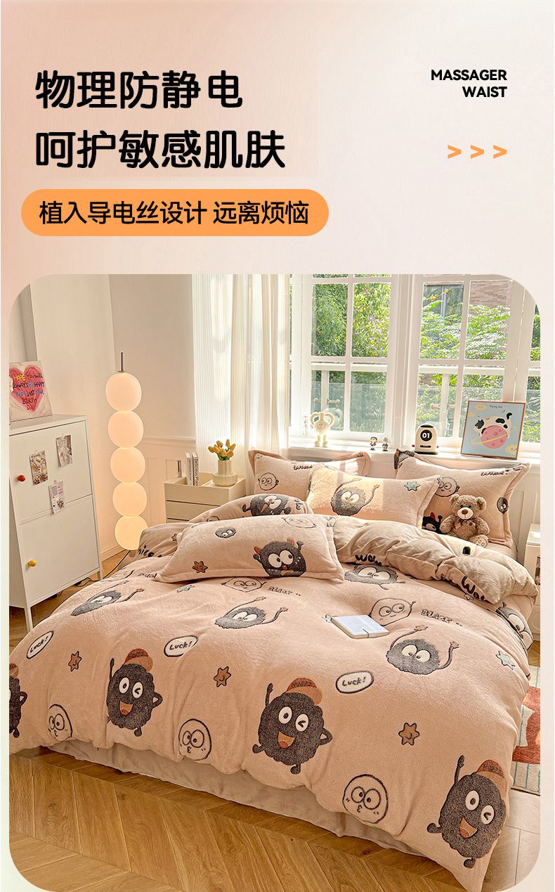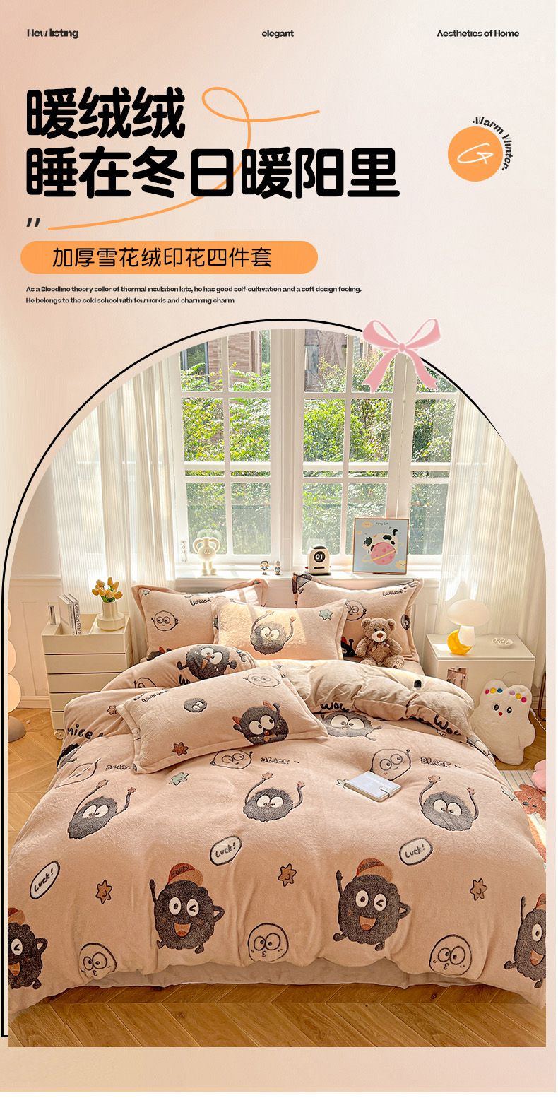 当前位置: 91家纺网 > 商品网购 > 床品套件 > 四件套 > 牛奶绒四件套 > 韩巢家纺 2024新款加厚雪花绒牛奶绒珊瑚绒四件套-新品(提供卖家秀) 小煤球