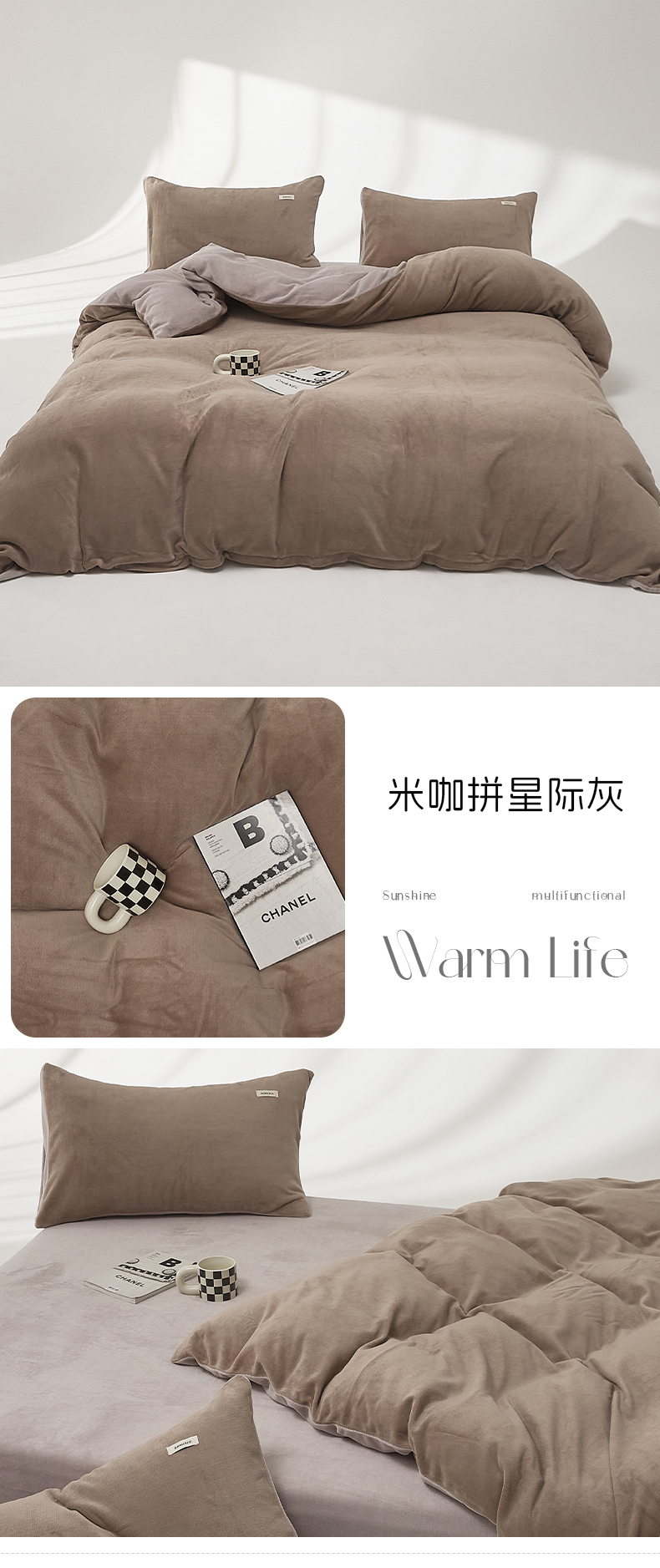当前位置: 91家纺网 > 商品网购 > 床品套件 > 四件套 > 牛奶绒四件套 > 时光里 2024新款牛奶绒纯色双拼四件套 米咖拼星际灰