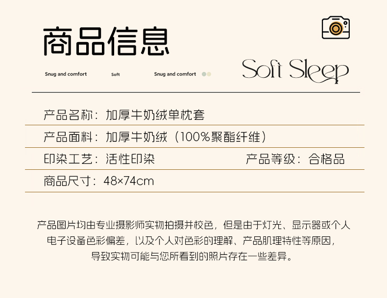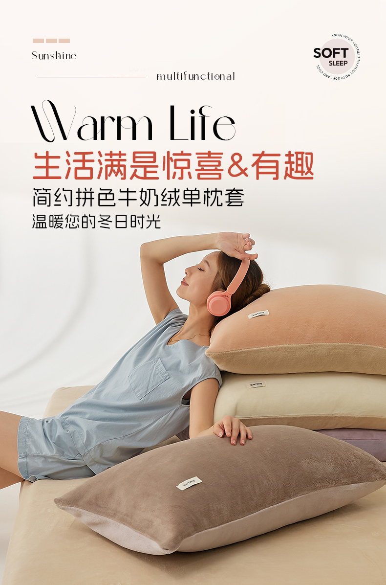 商品名称:(总)时光里 2024新款牛奶绒纯色双拼单枕套