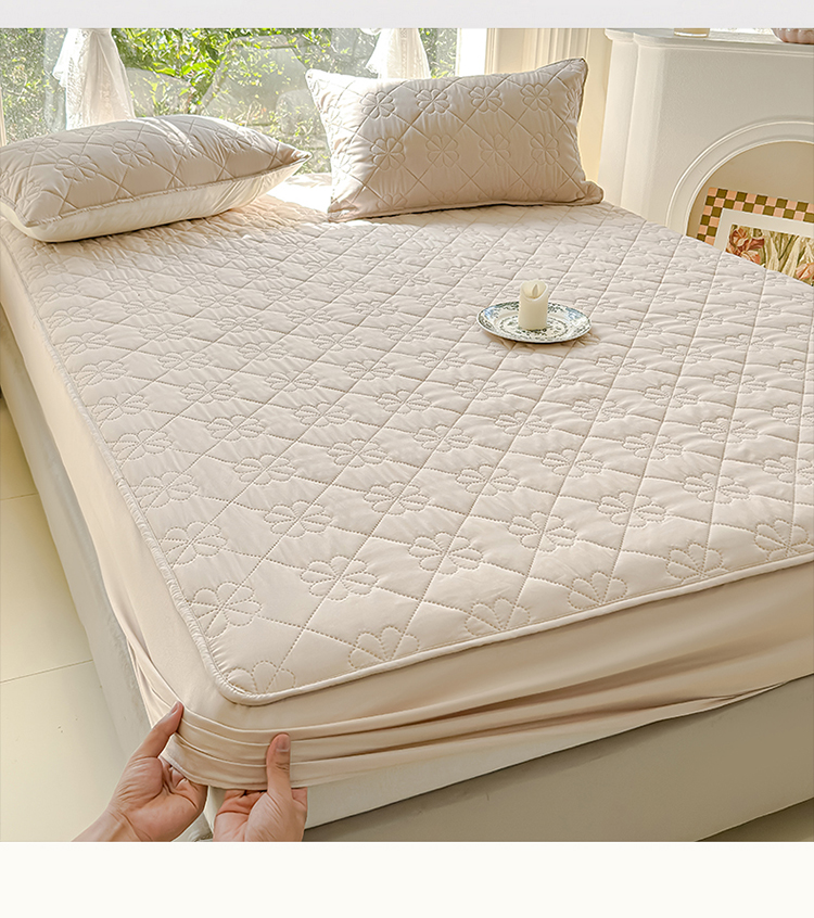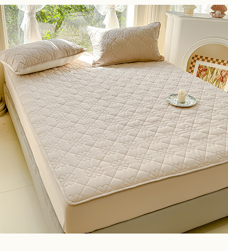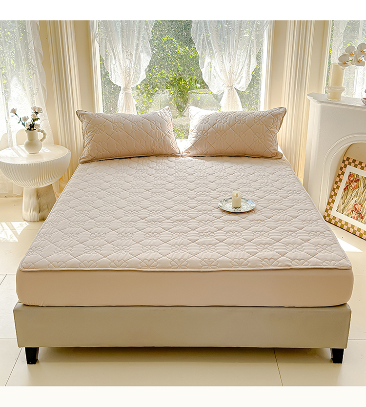 慕克斯 2024新款高克重水洗棉磨毛夹棉床笠 米卡色