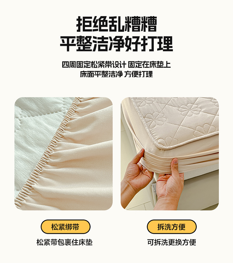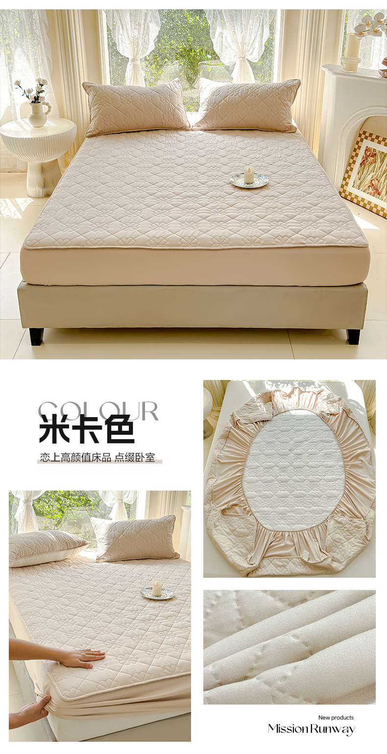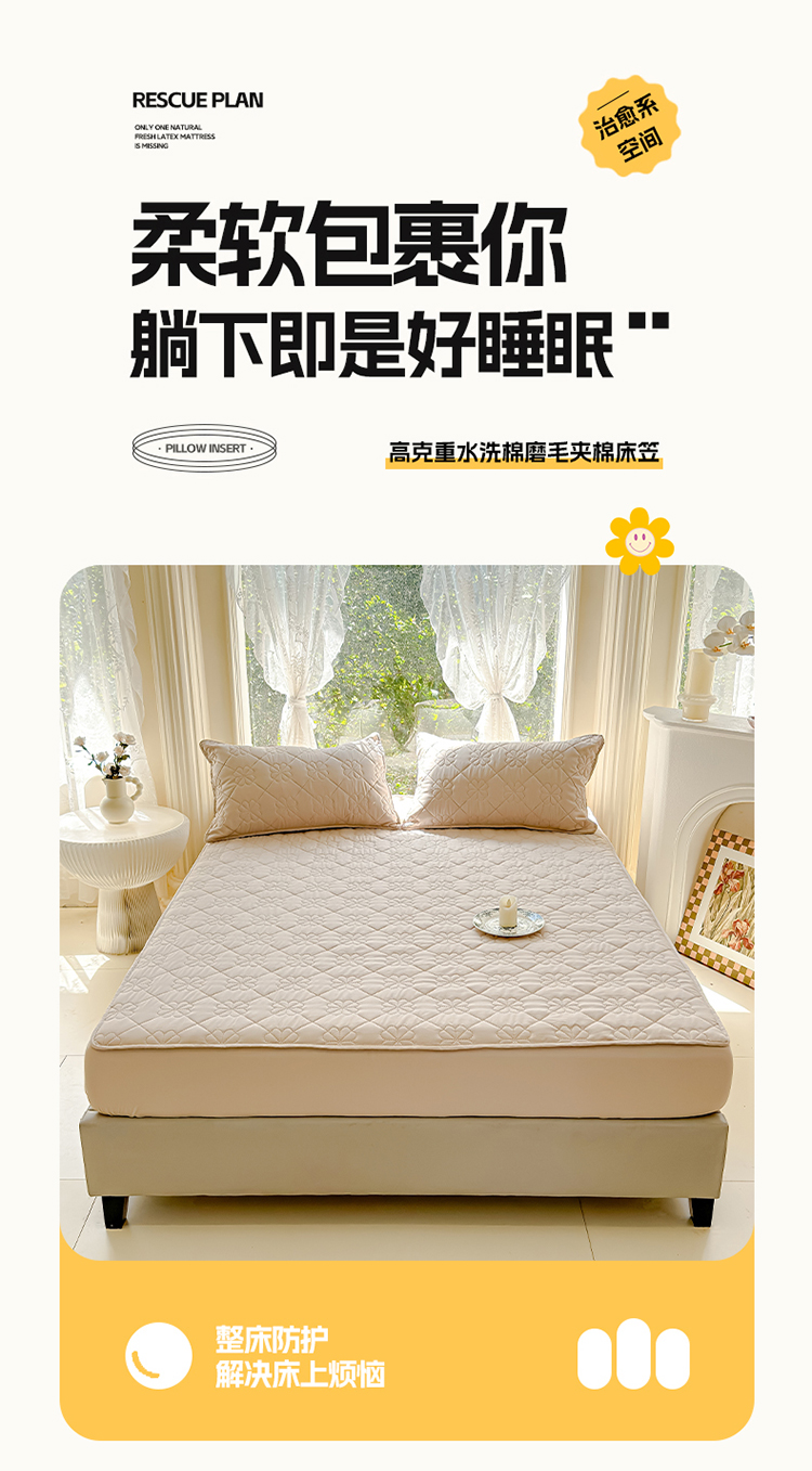 • 91家纺网 家纺一手货源 找家纺 慕克斯 2024新款高克重水洗棉磨毛夹棉床笠 米卡色