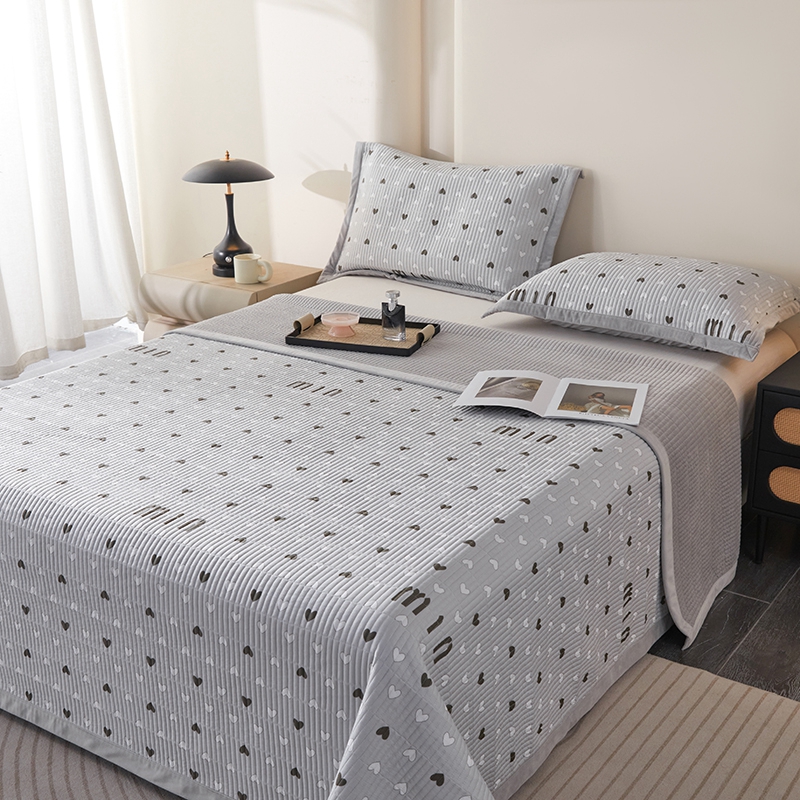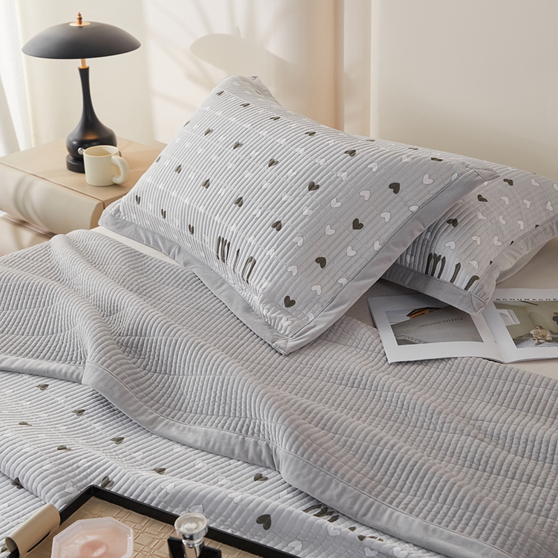 莎果家纺 2025秋冬一面天丝一面绒高温砂洗床盖三件套 怦然心动-灰