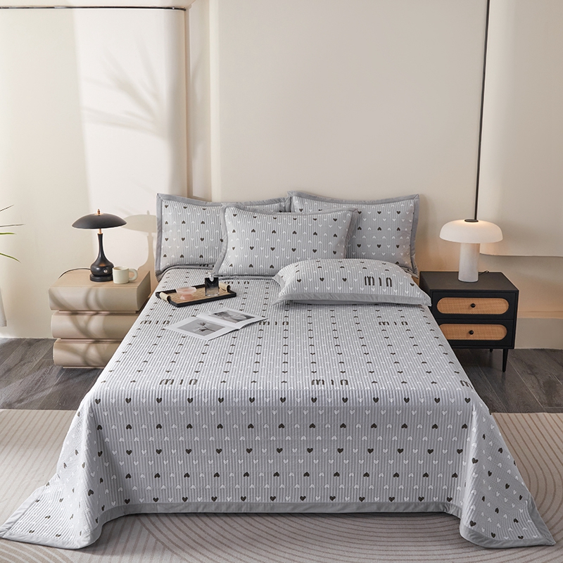 商品名称:莎果家纺 2025秋冬一面天丝一面绒高温砂洗床盖三件套 怦然心动-灰