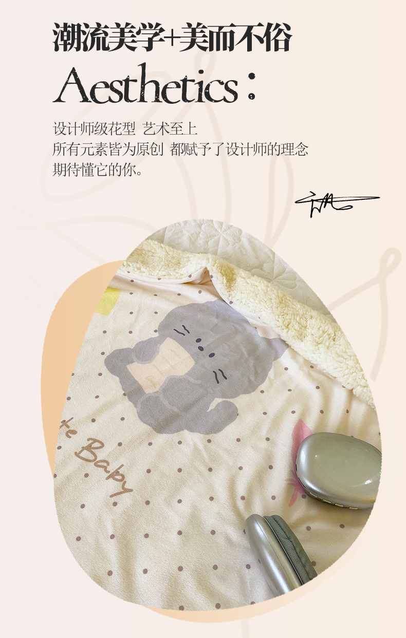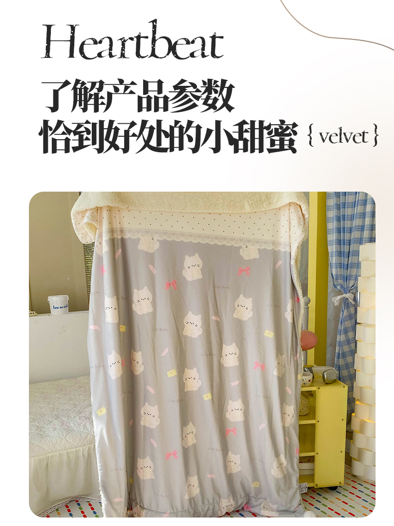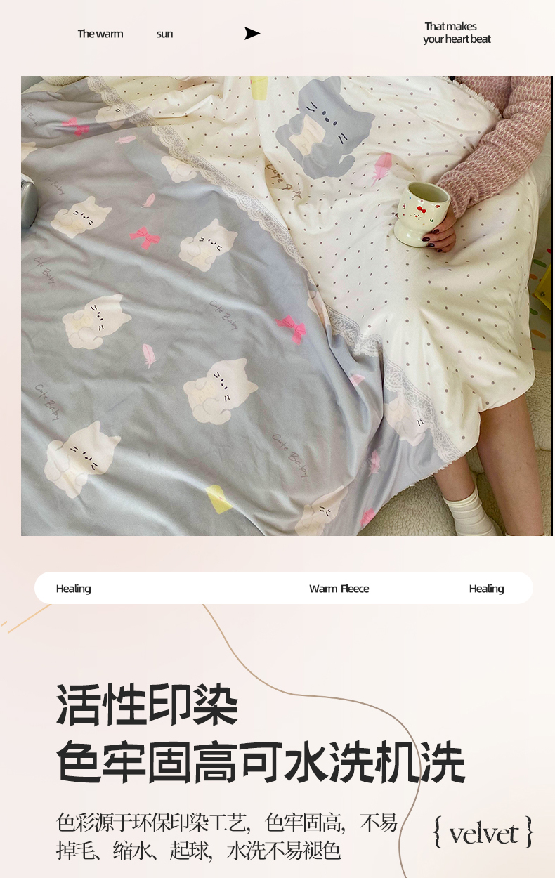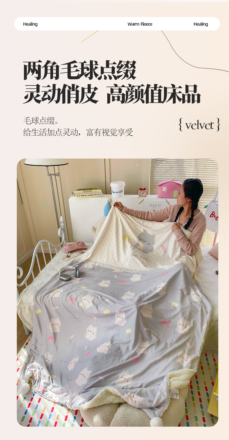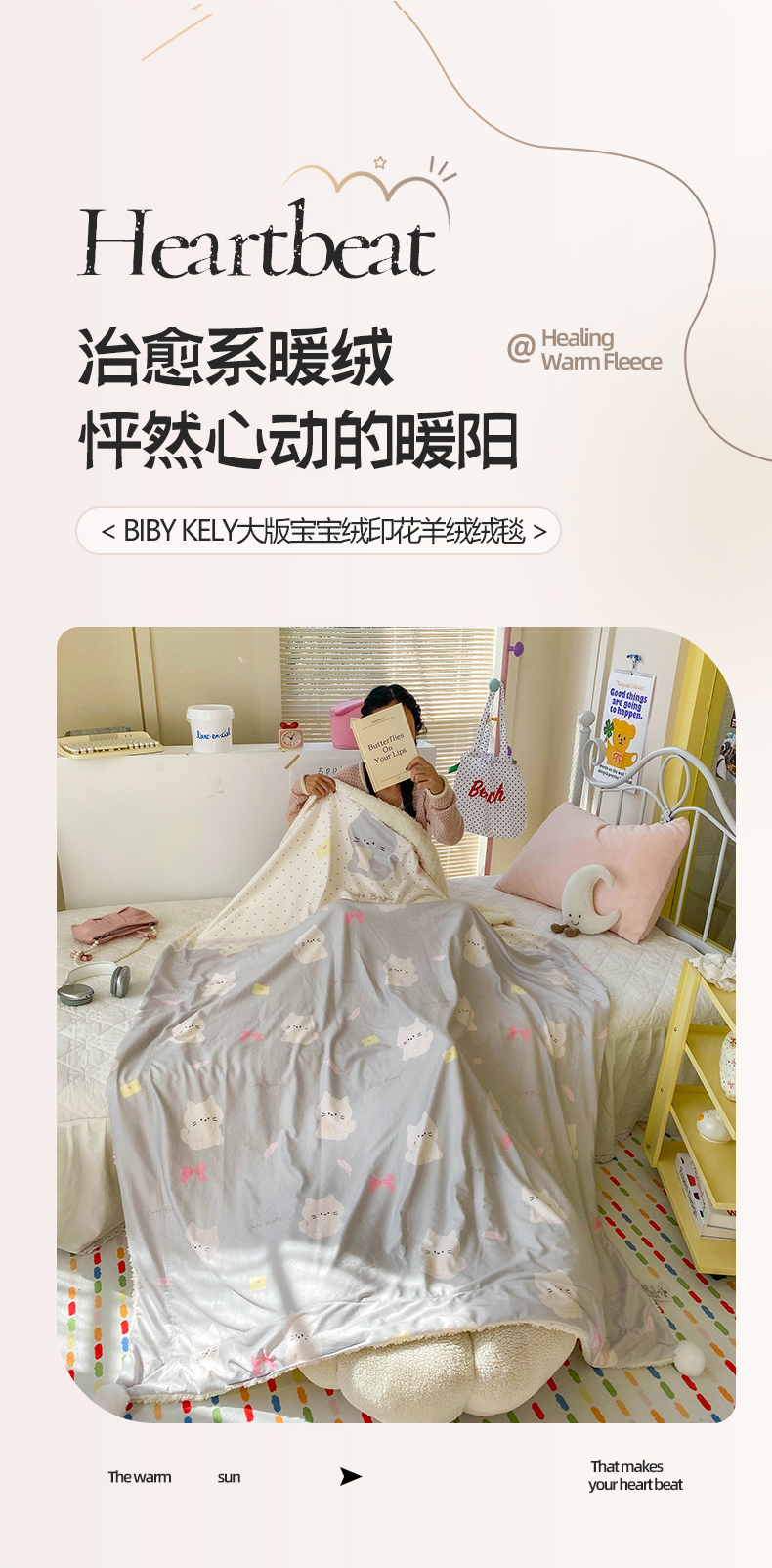 潮邦创意家居 2025新款印花大版羊羔绒球-BIBY KELY系列羊绒绒毯 写信的小猫